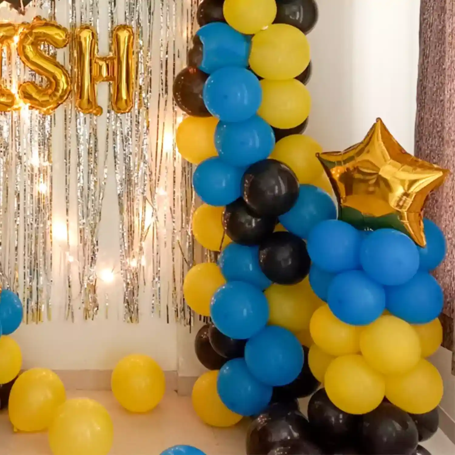 A beautiful balloon decoration idea for birthday celebrations at home.