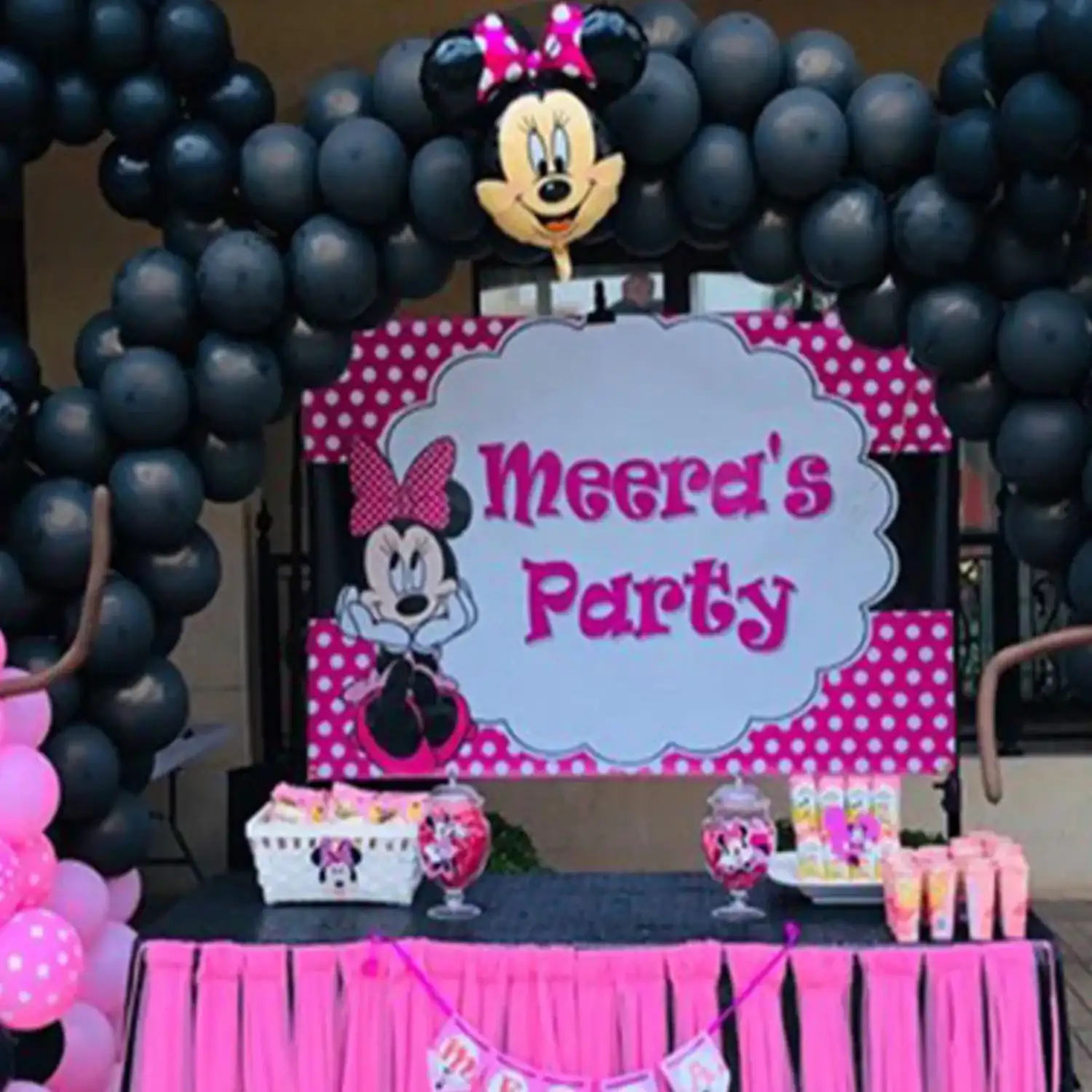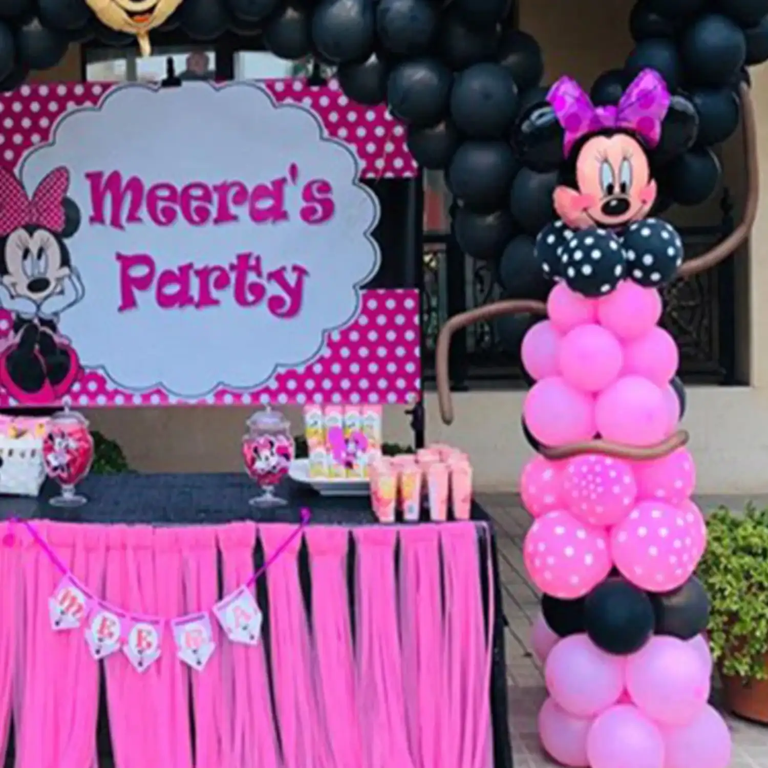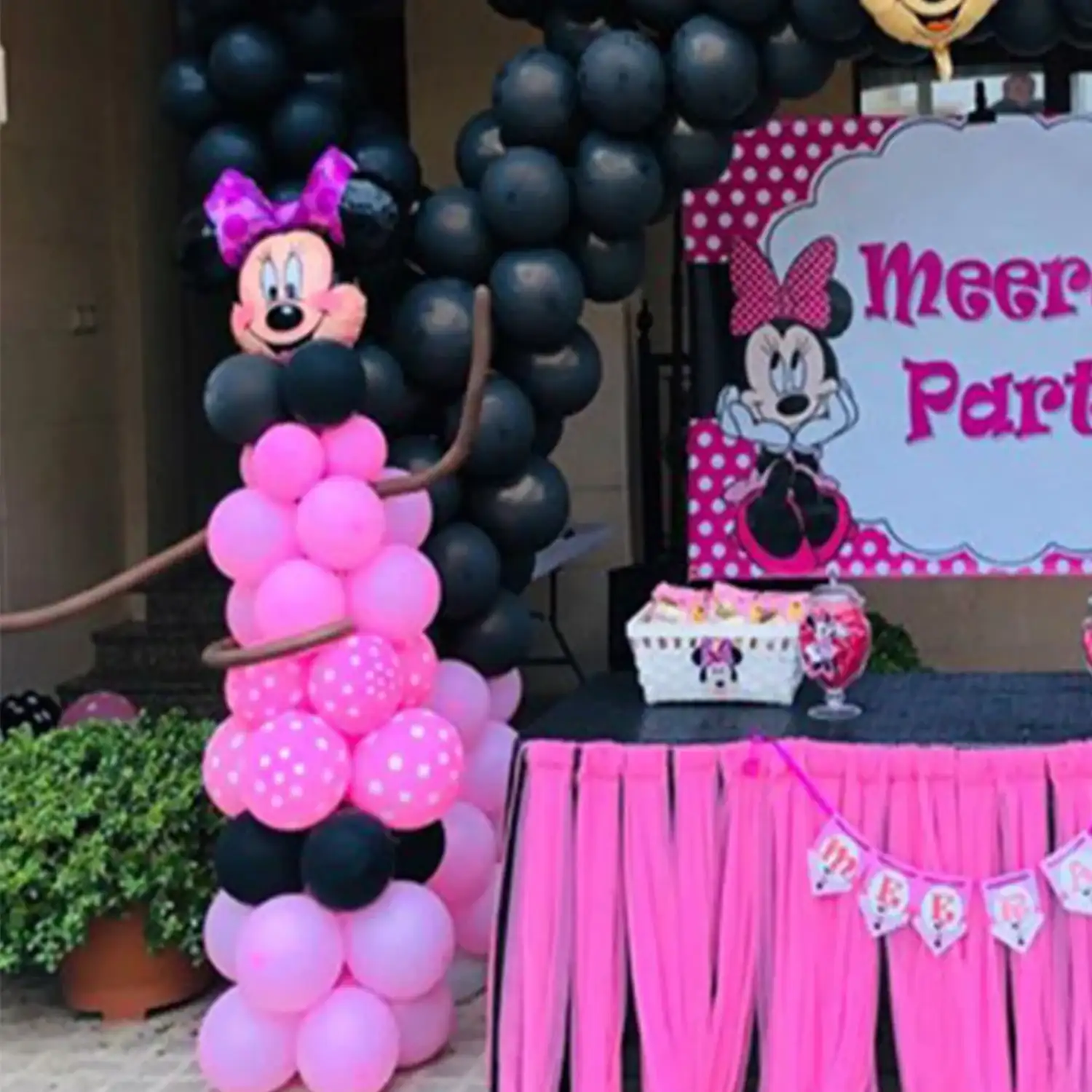 Celebrate your kid’s birthday with this Minnie Mouse balloon decoration.