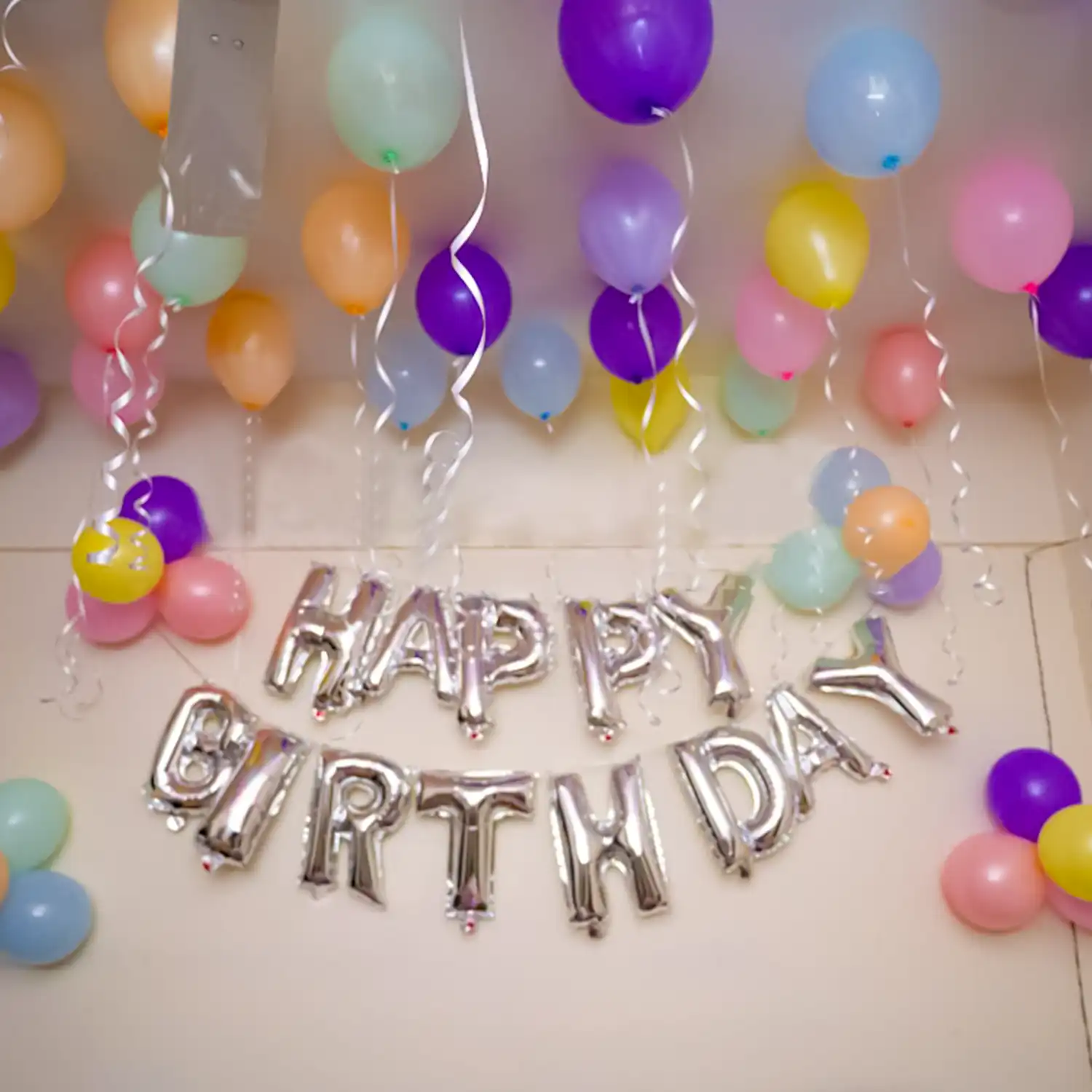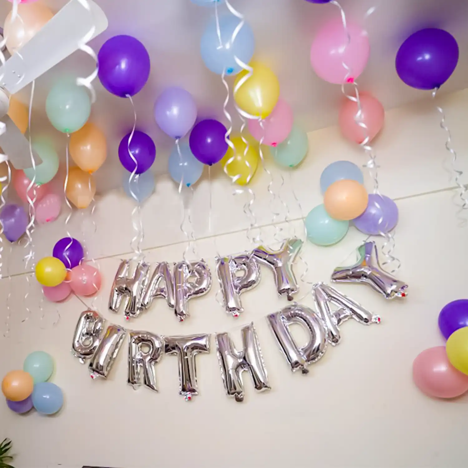 A beautiful balloon decoration idea for birthday celebrations at home.