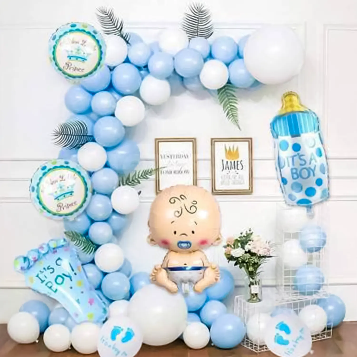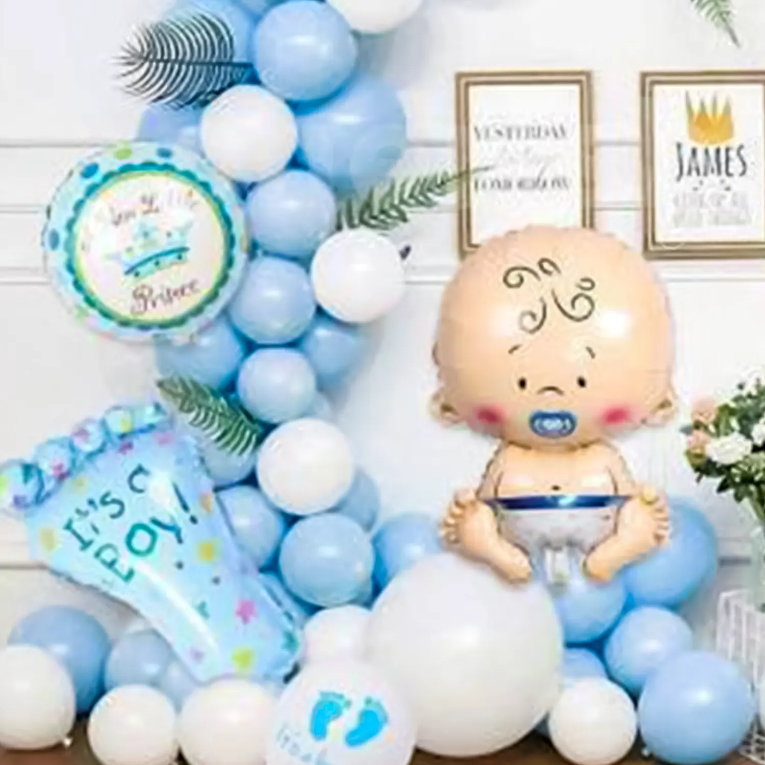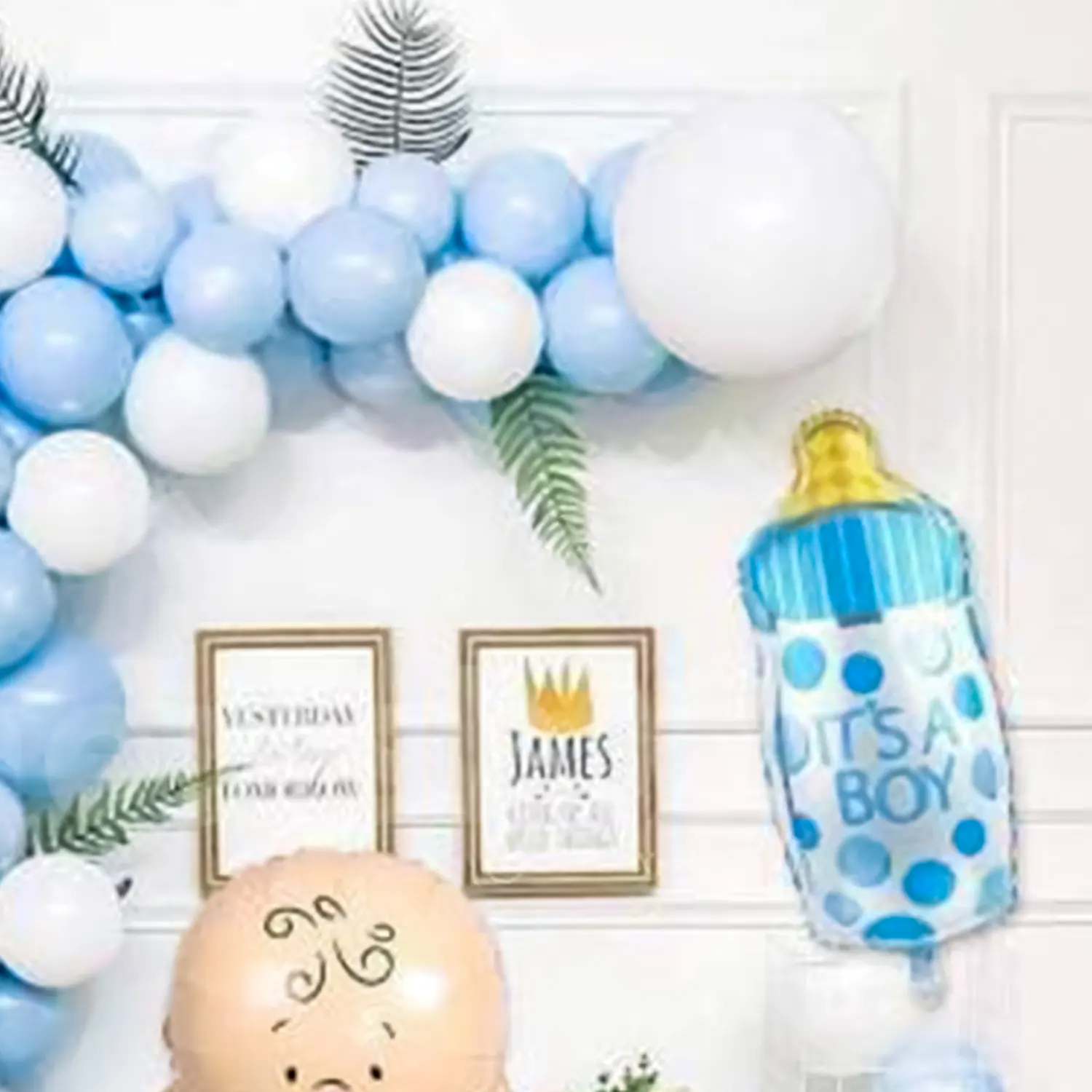 Welcome the little prince with this pastel blue balloon decoration!