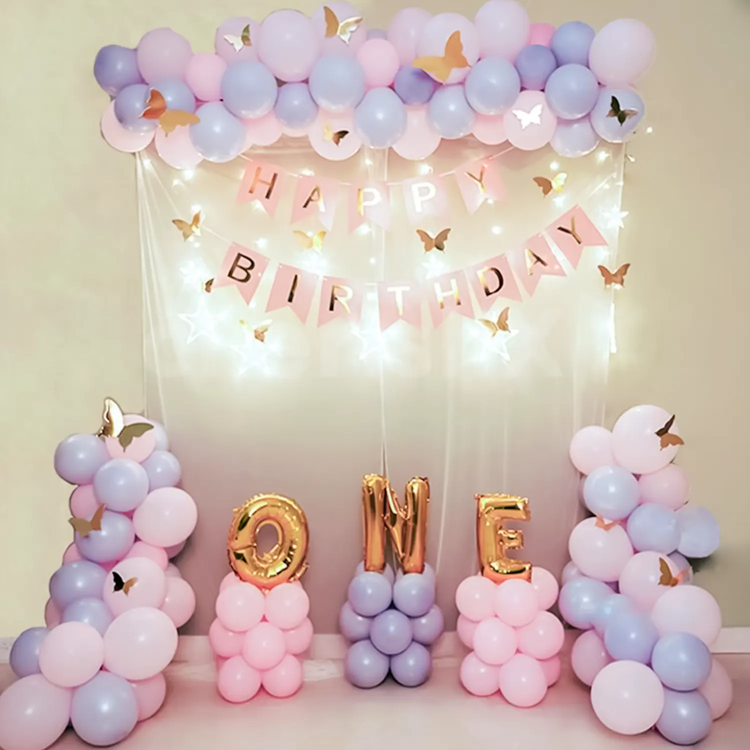 A beautiful balloon decoration idea for birthday celebrations at home.