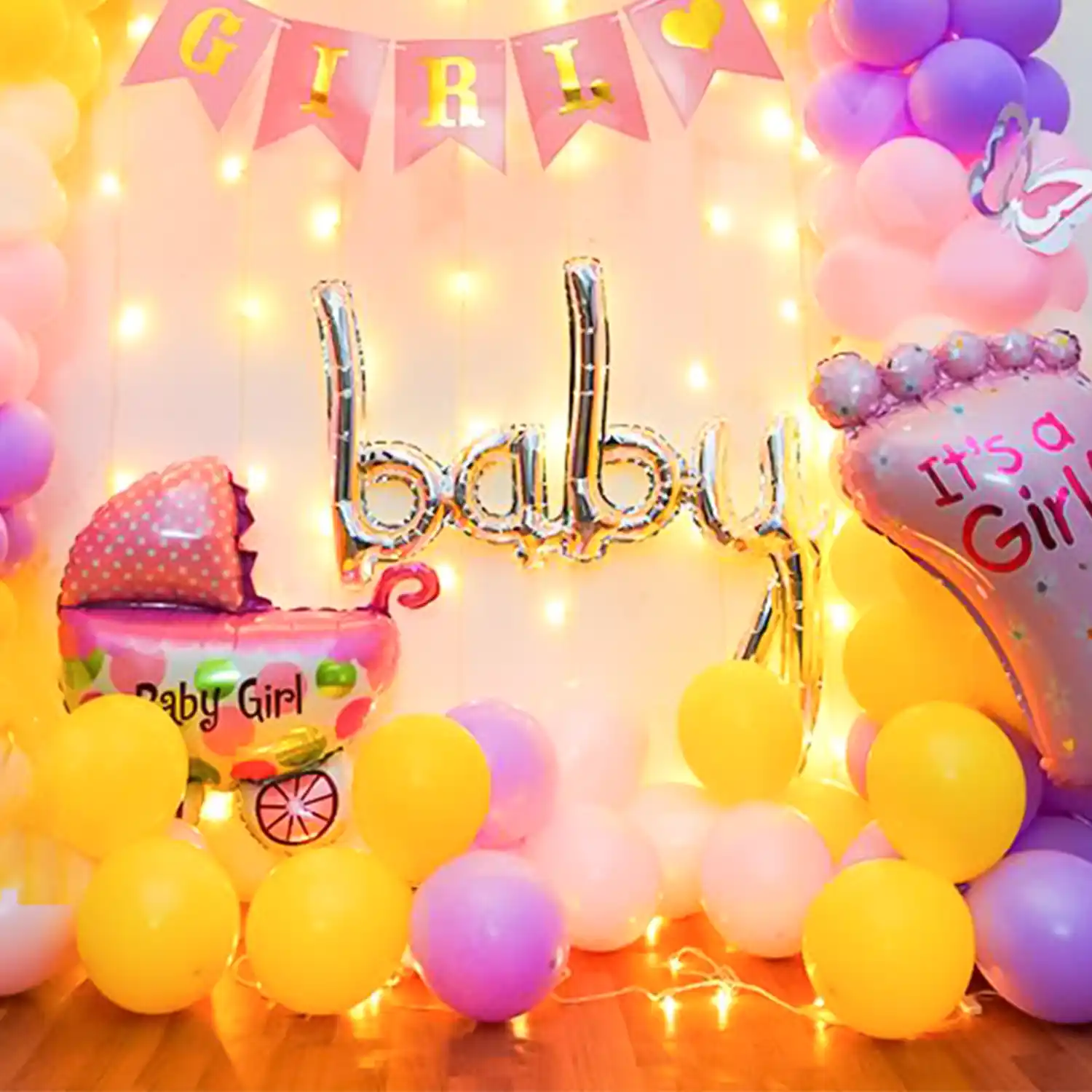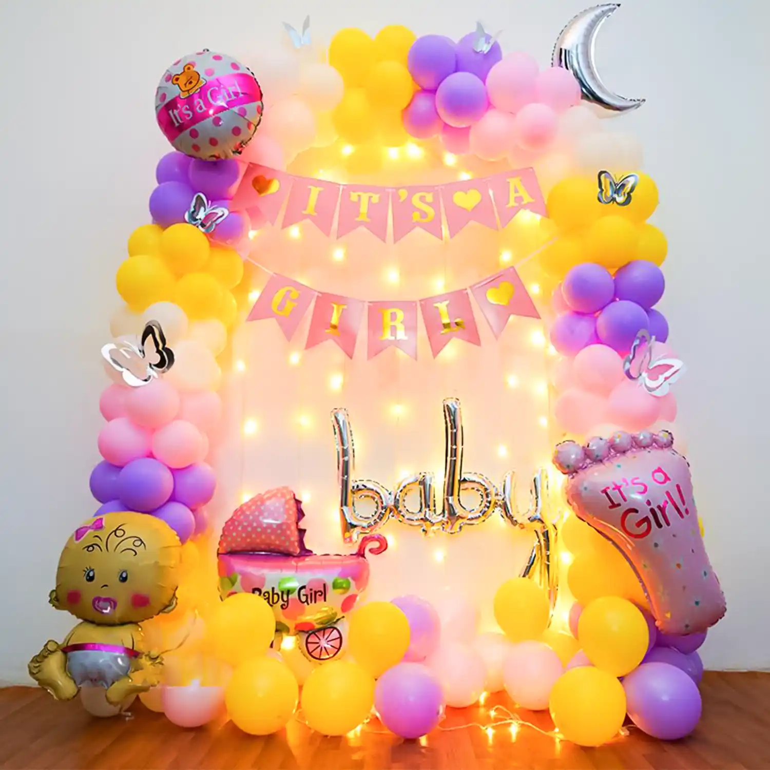 Welcome her with colours! This is a cute decoration idea for a baby girl.