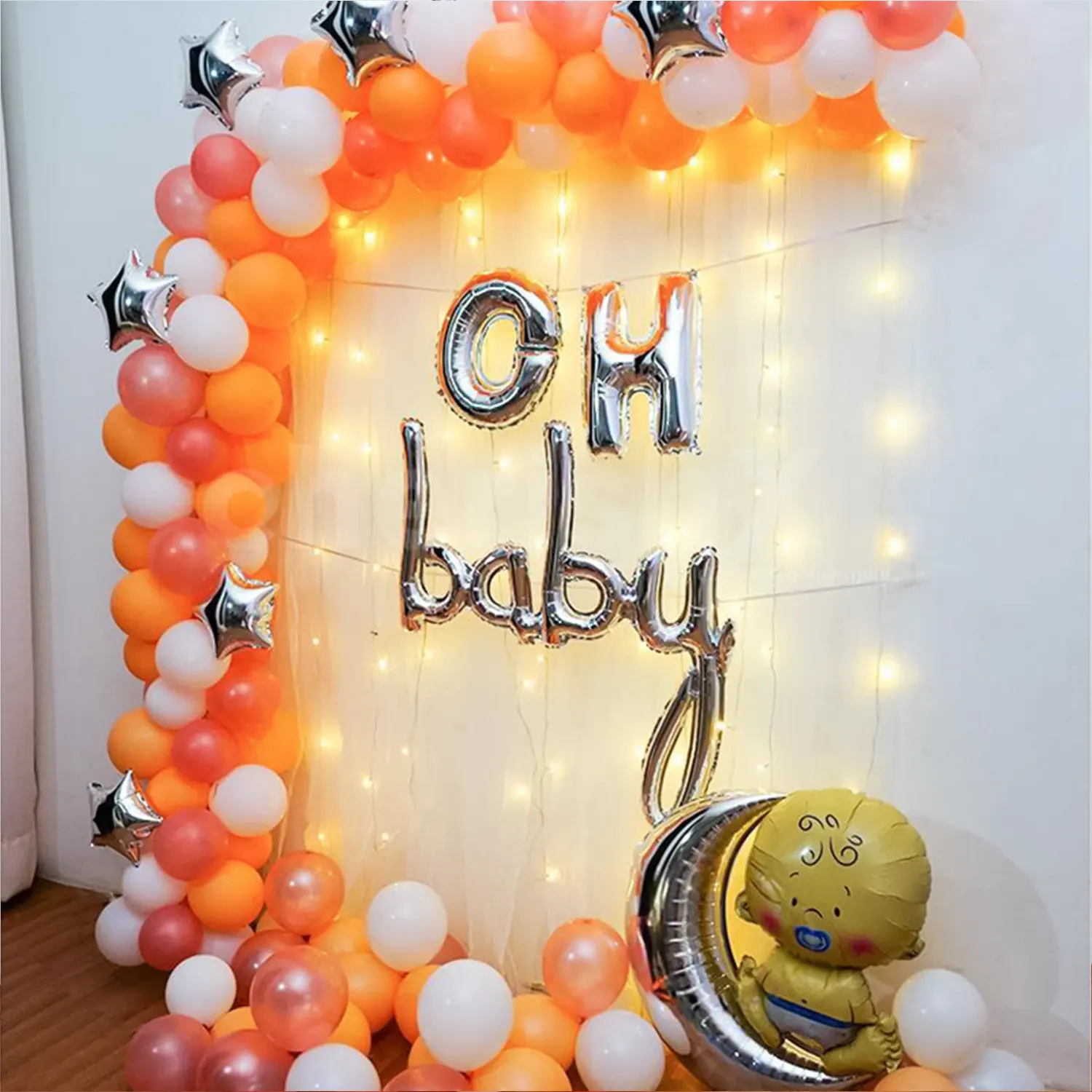 Create a warm ambience for baby shower parties with this peachy decor idea.
