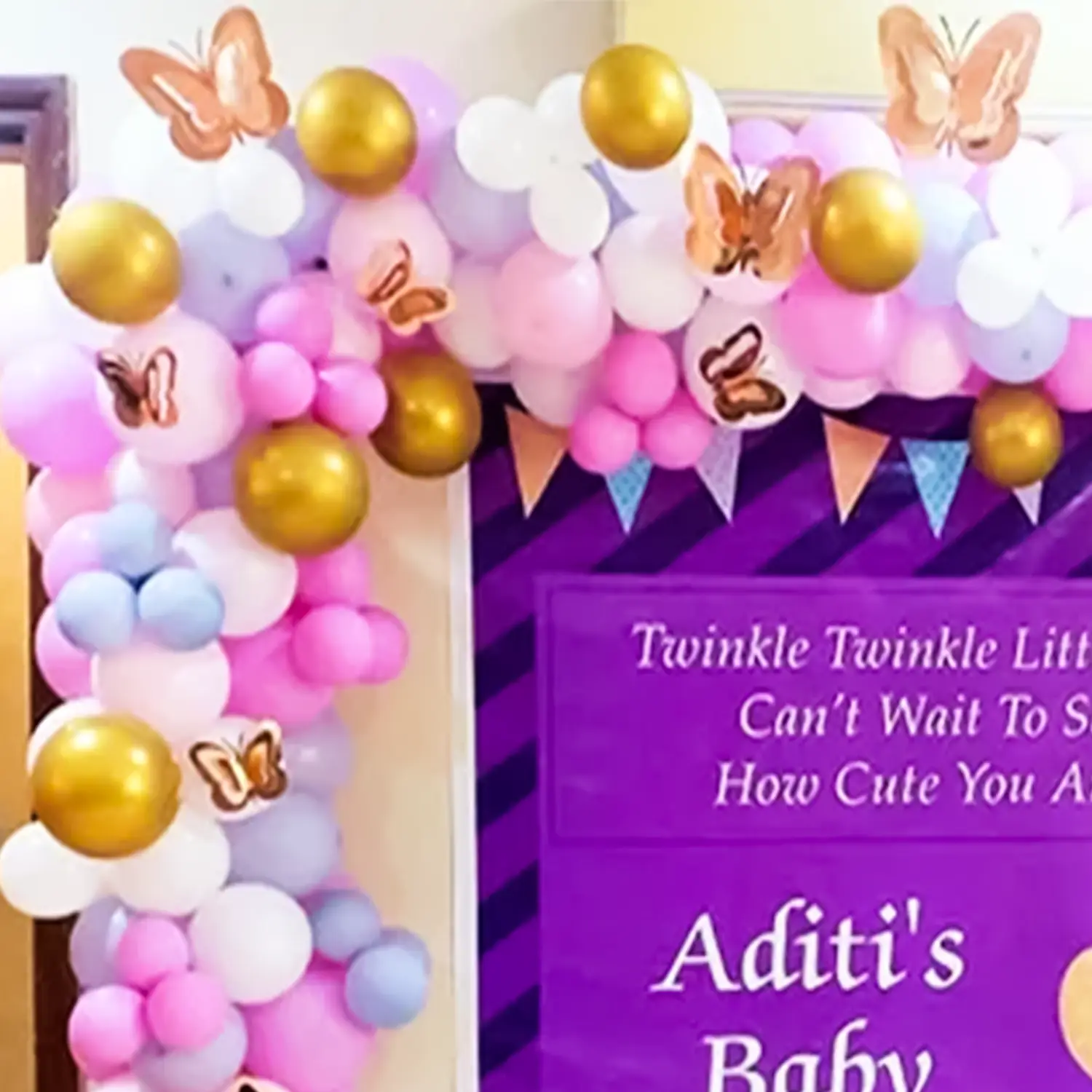 Let them fly in happiness by organizing a grand surprise on a special day. Here is a pink & green balloon arch decoration that everyone will like for sure.