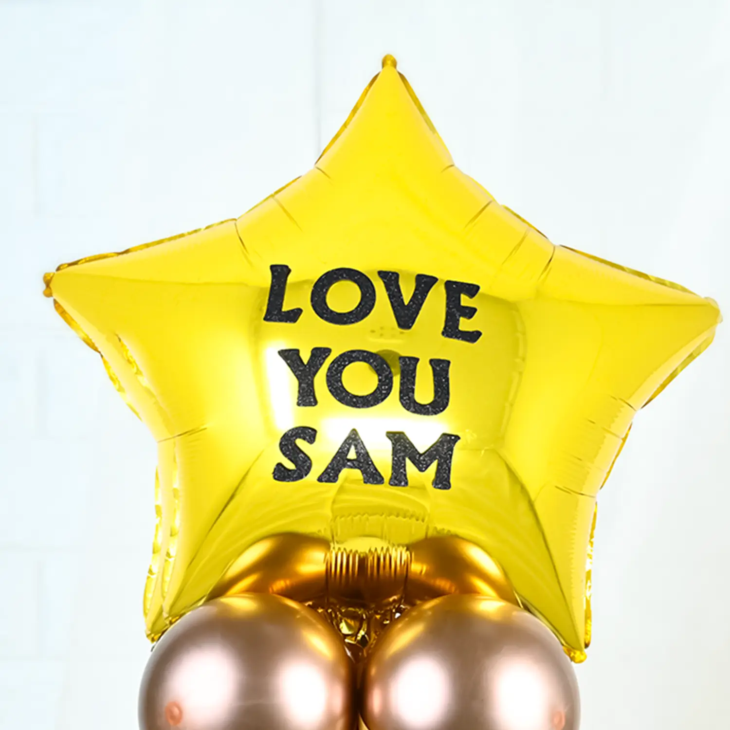 Pretty pink baby girl balloon bouquet with a customized name for decor.