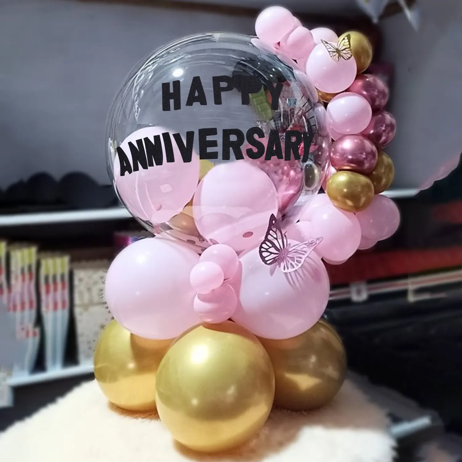 A beautiful balloon decoration idea for birthday celebrations at home.