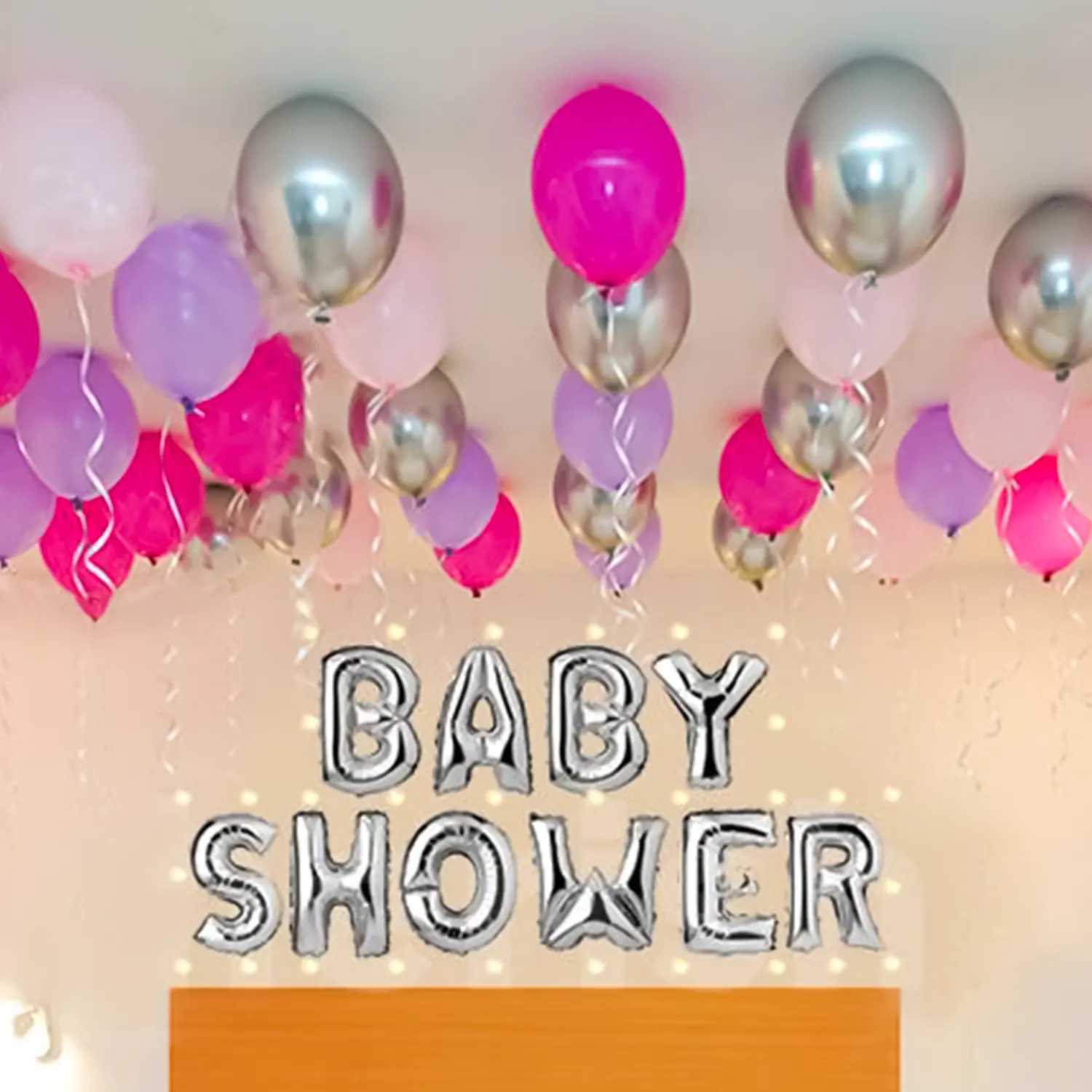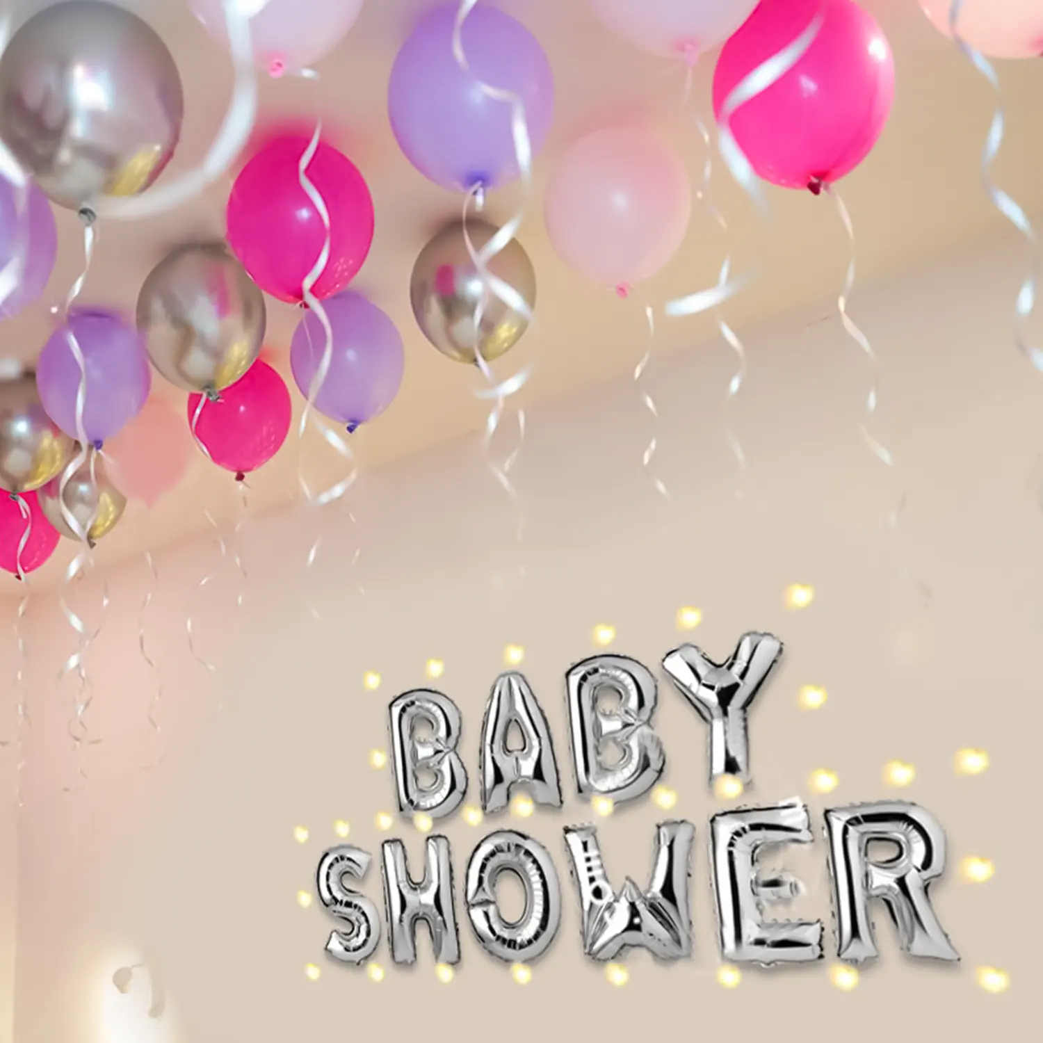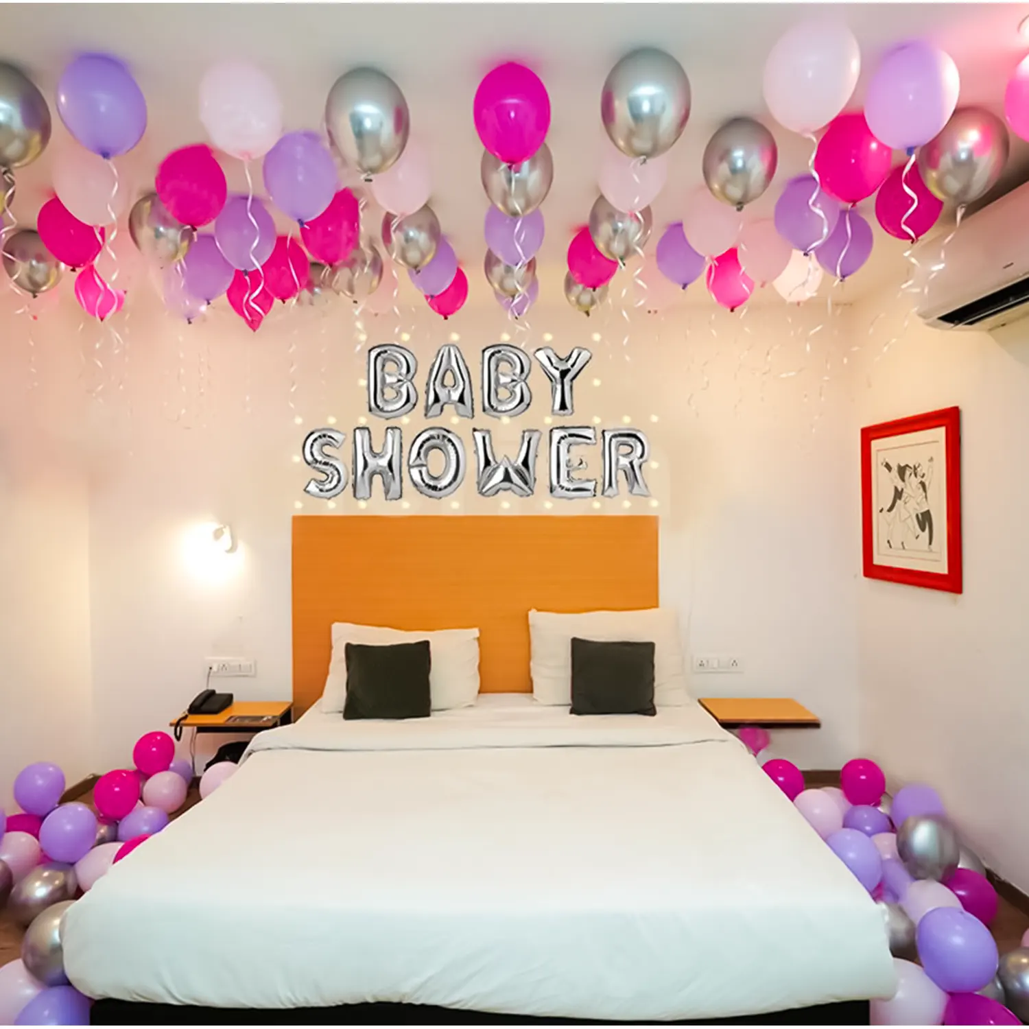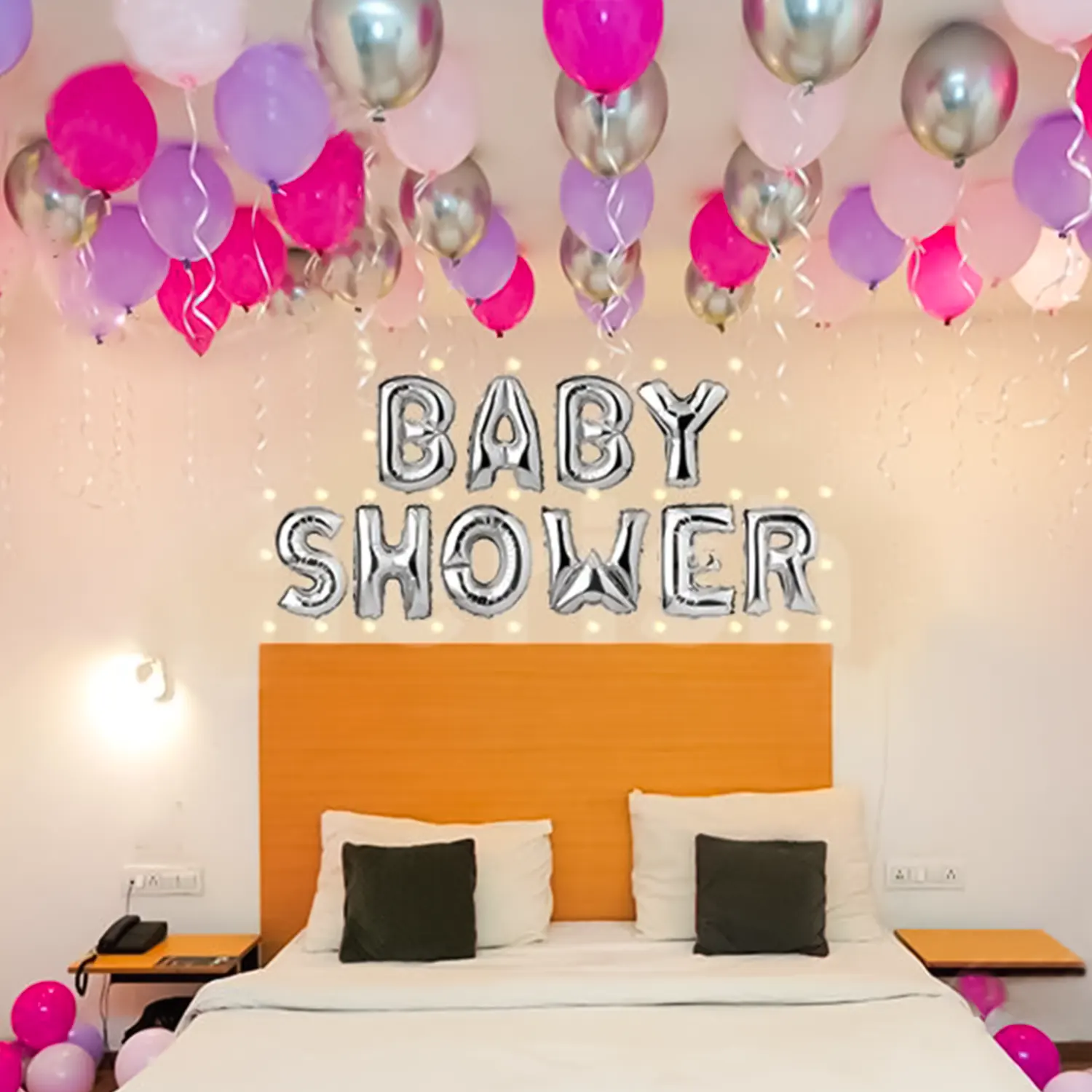 Plan a small and sweet baby shower surprise at home with this pink decoration.