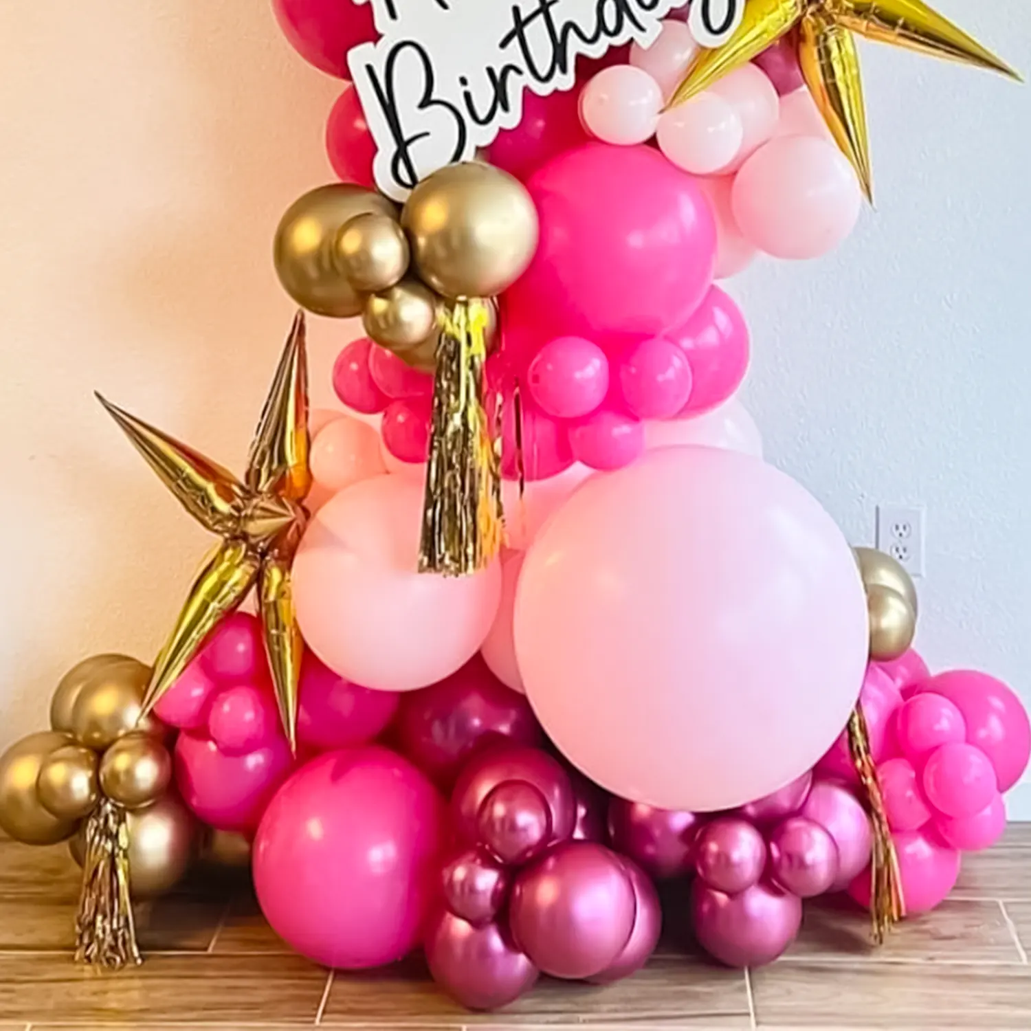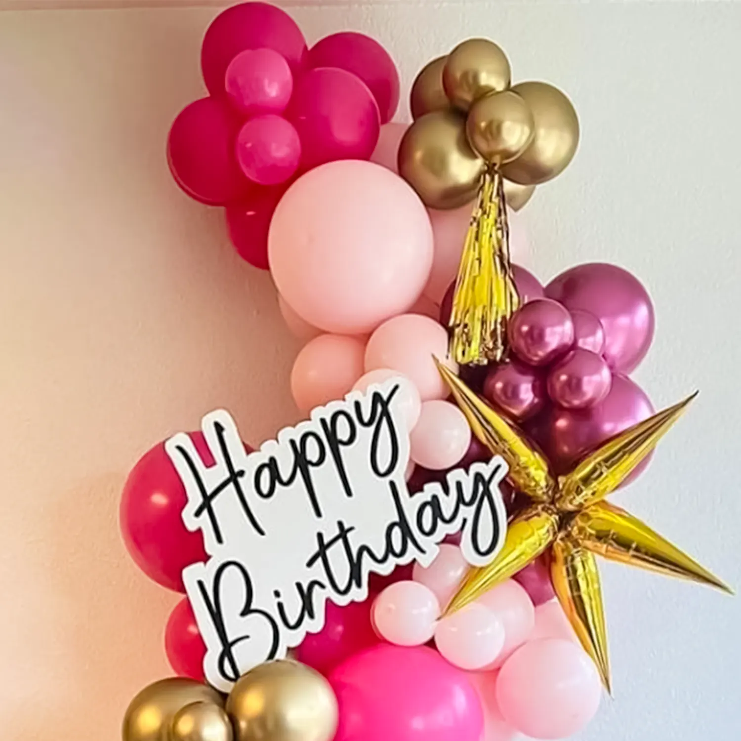 A beautiful balloon decoration idea for birthday celebrations at home.