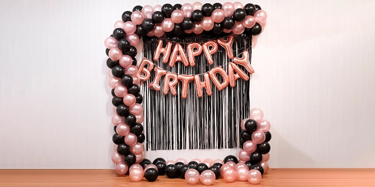 A beautiful balloon decoration idea for birthday celebrations at home.