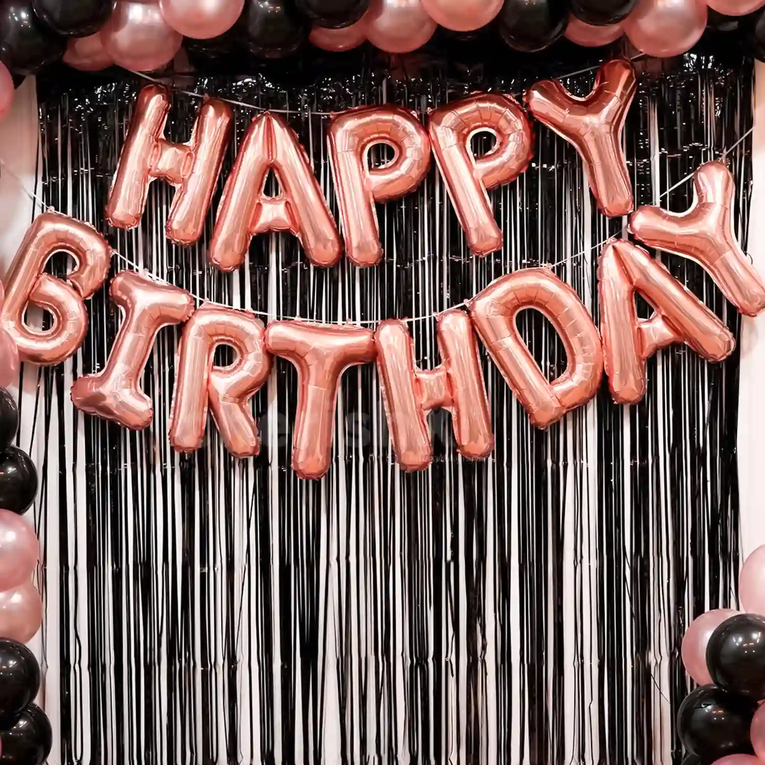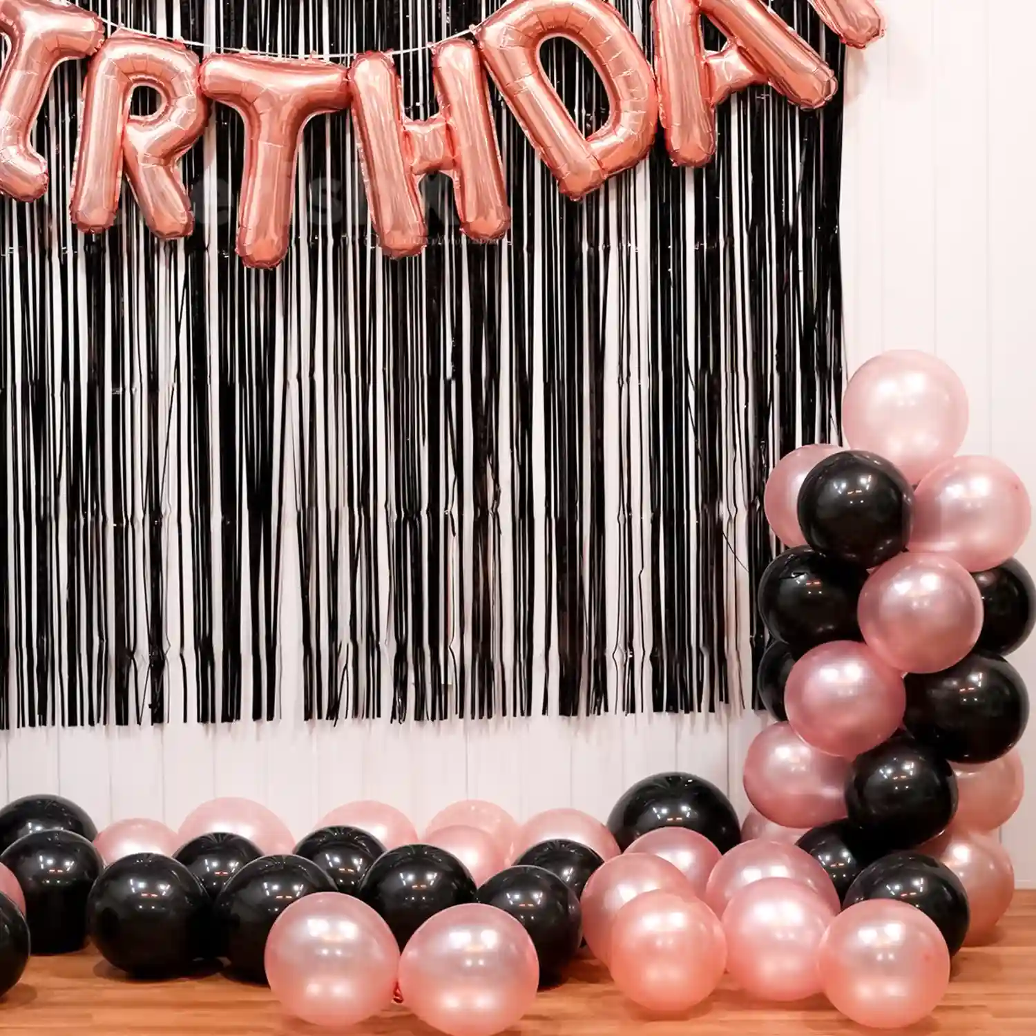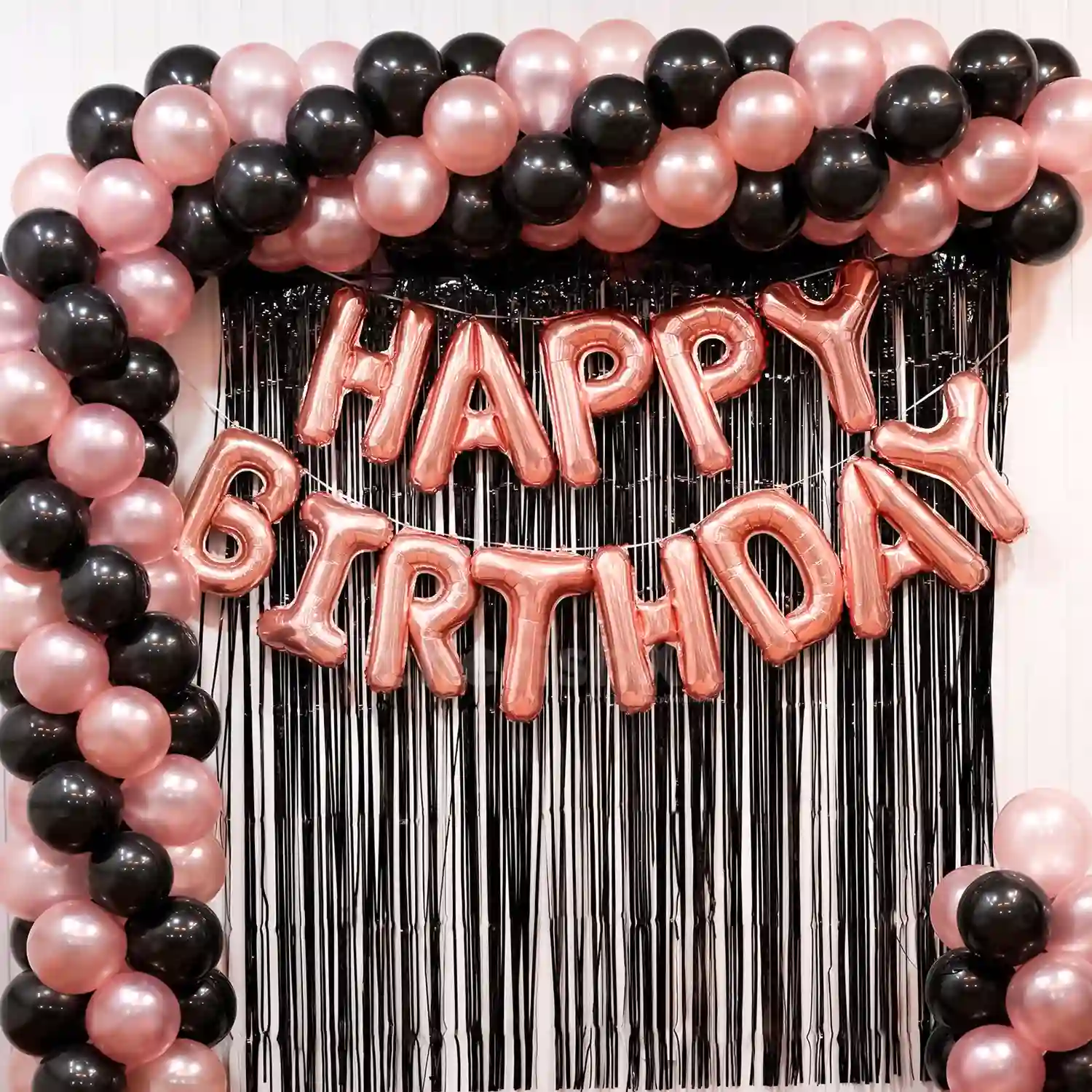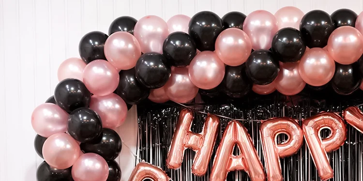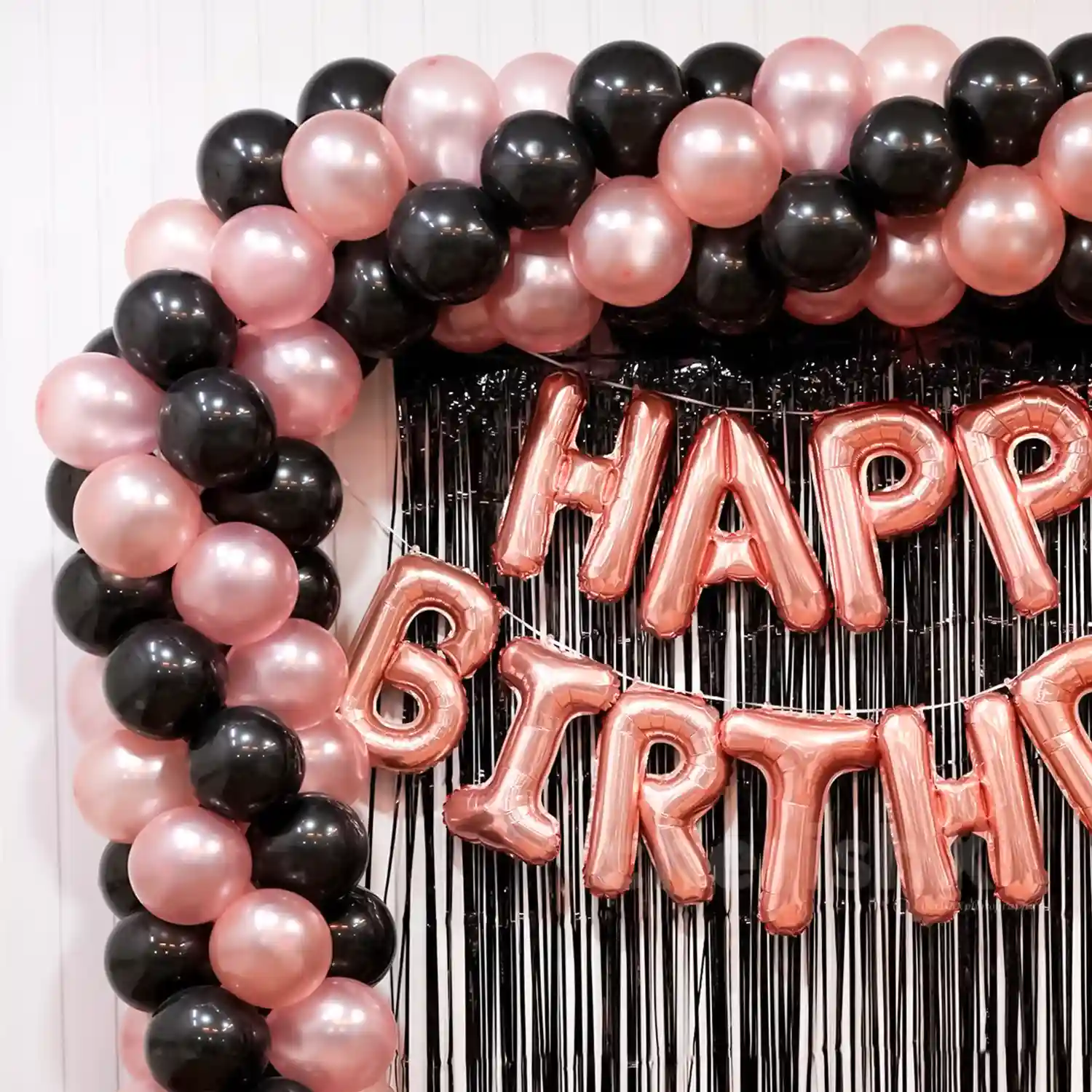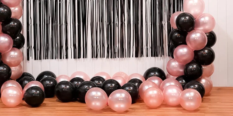 Combine the chicness of pink with the boldness of black with our Rose Gold and Black balloon arch celebration décor.