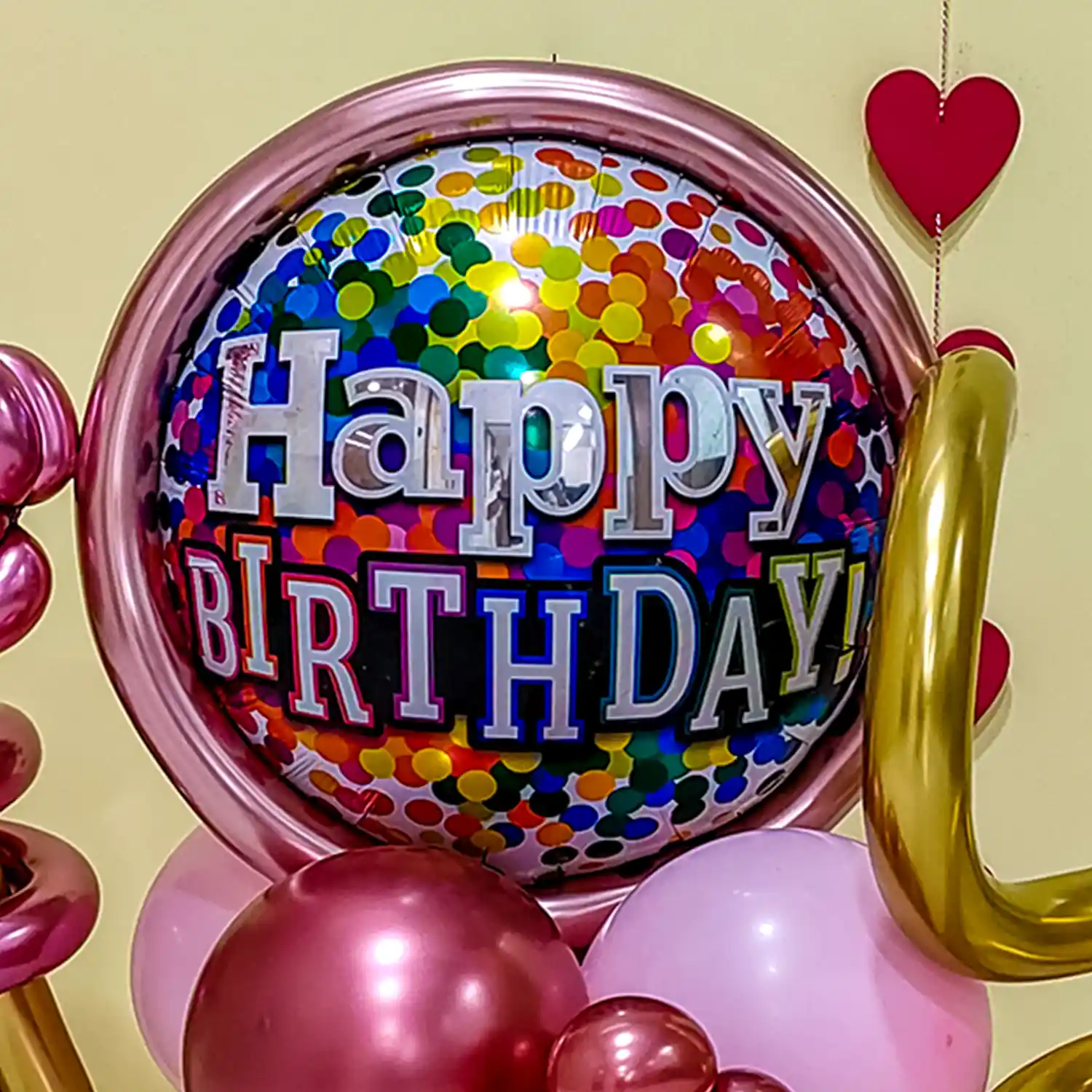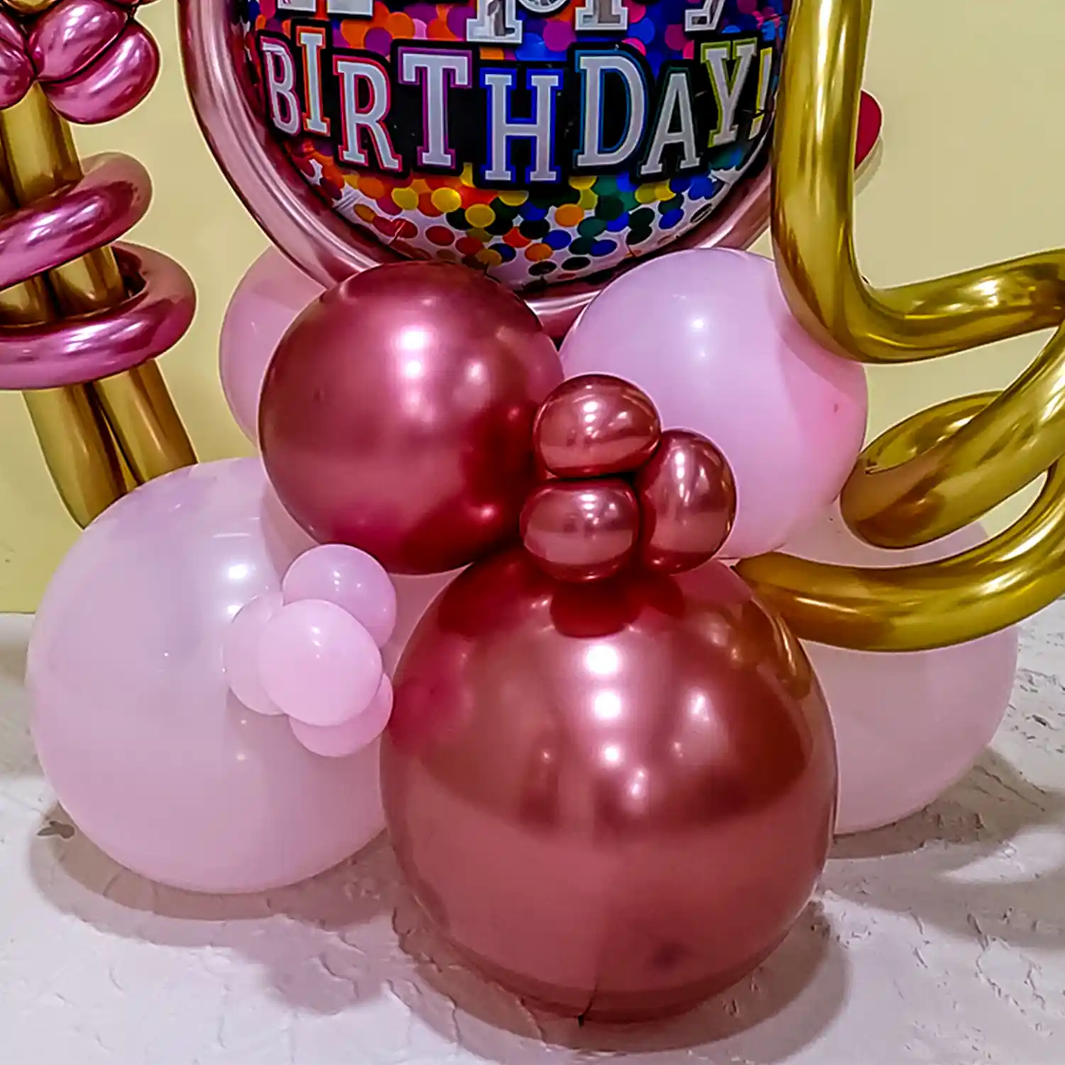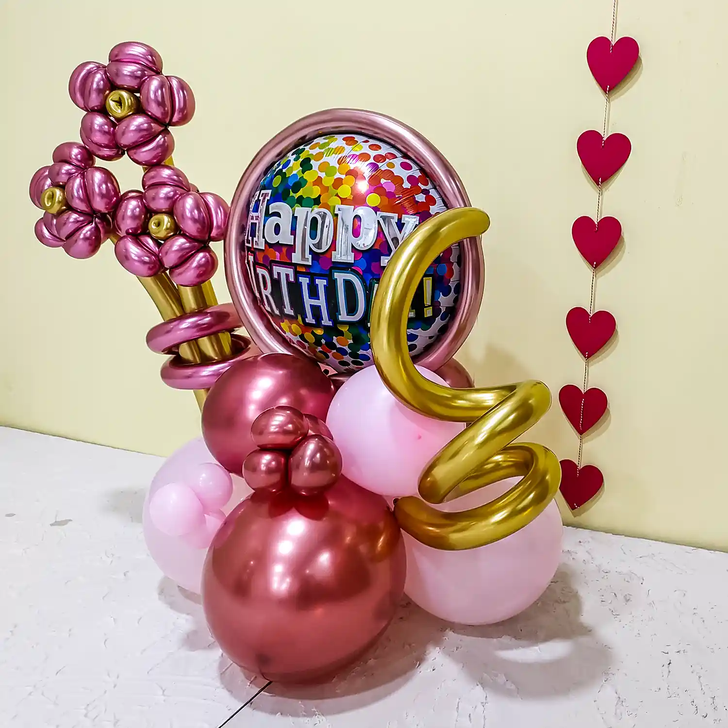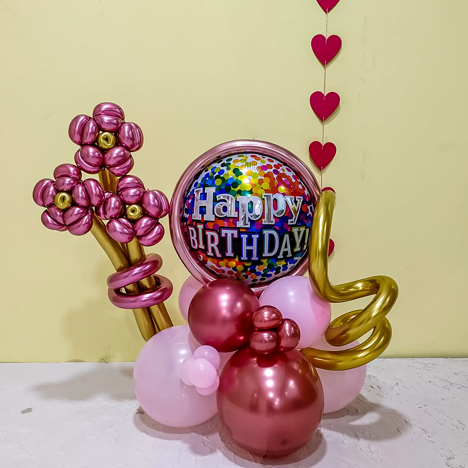 A beautiful balloon decoration idea for birthday celebrations at home.