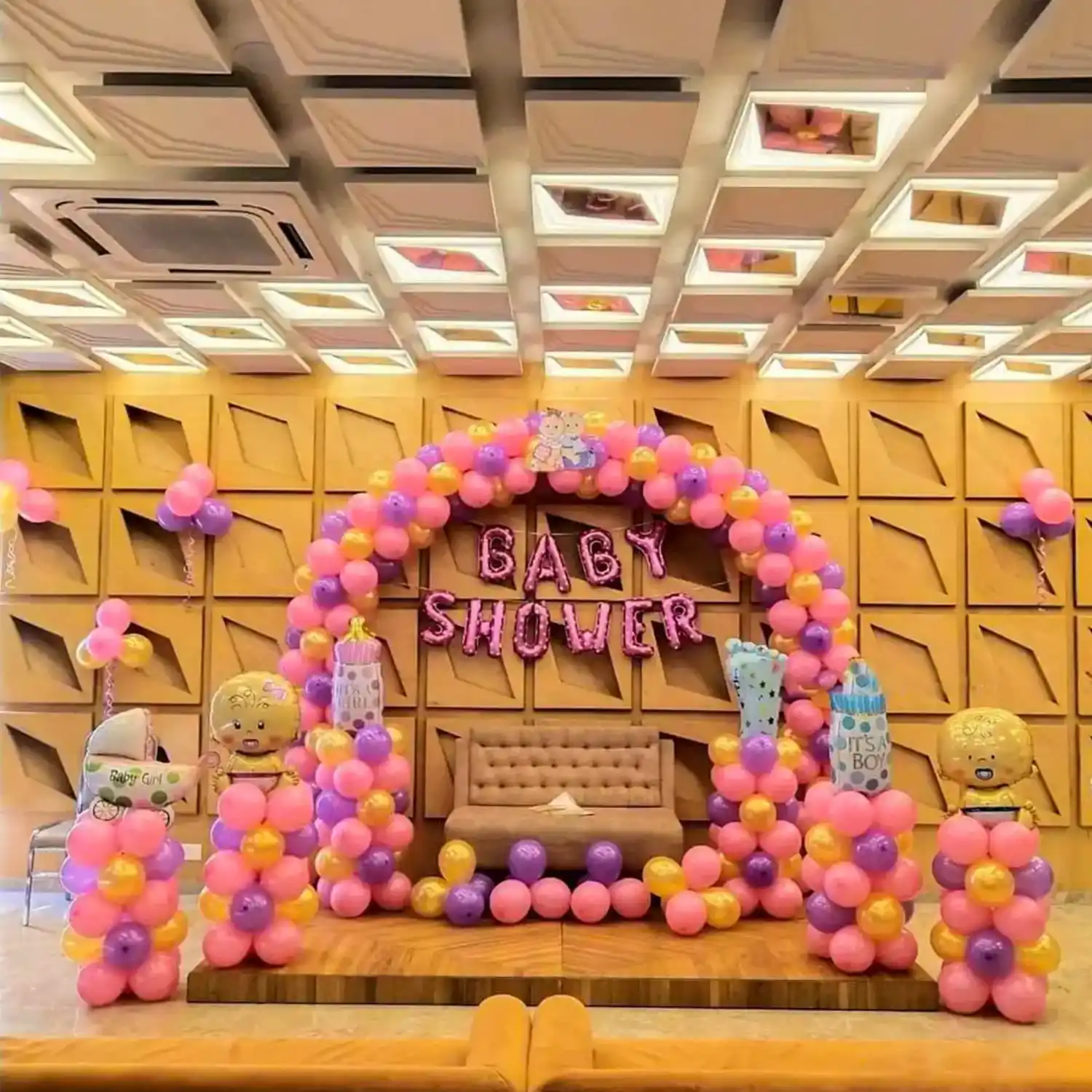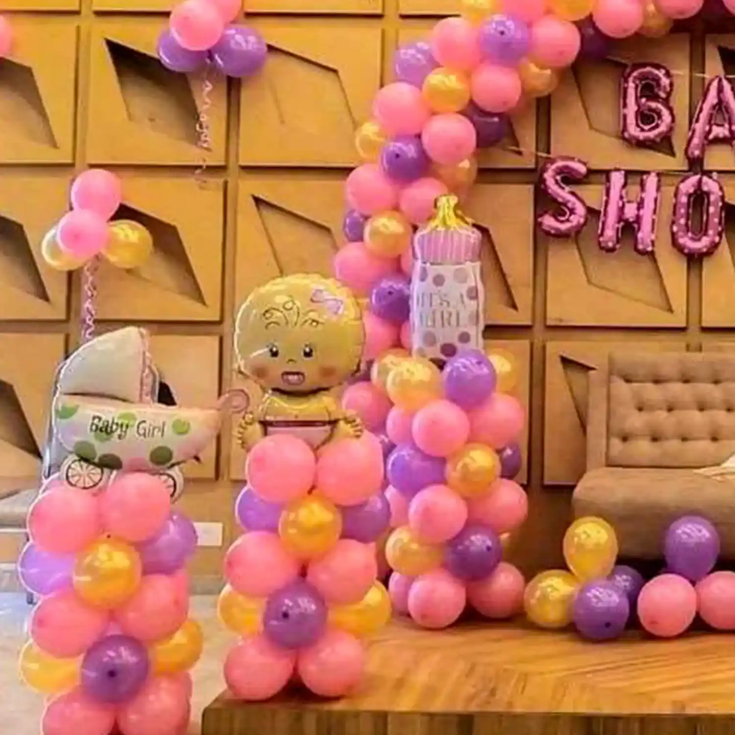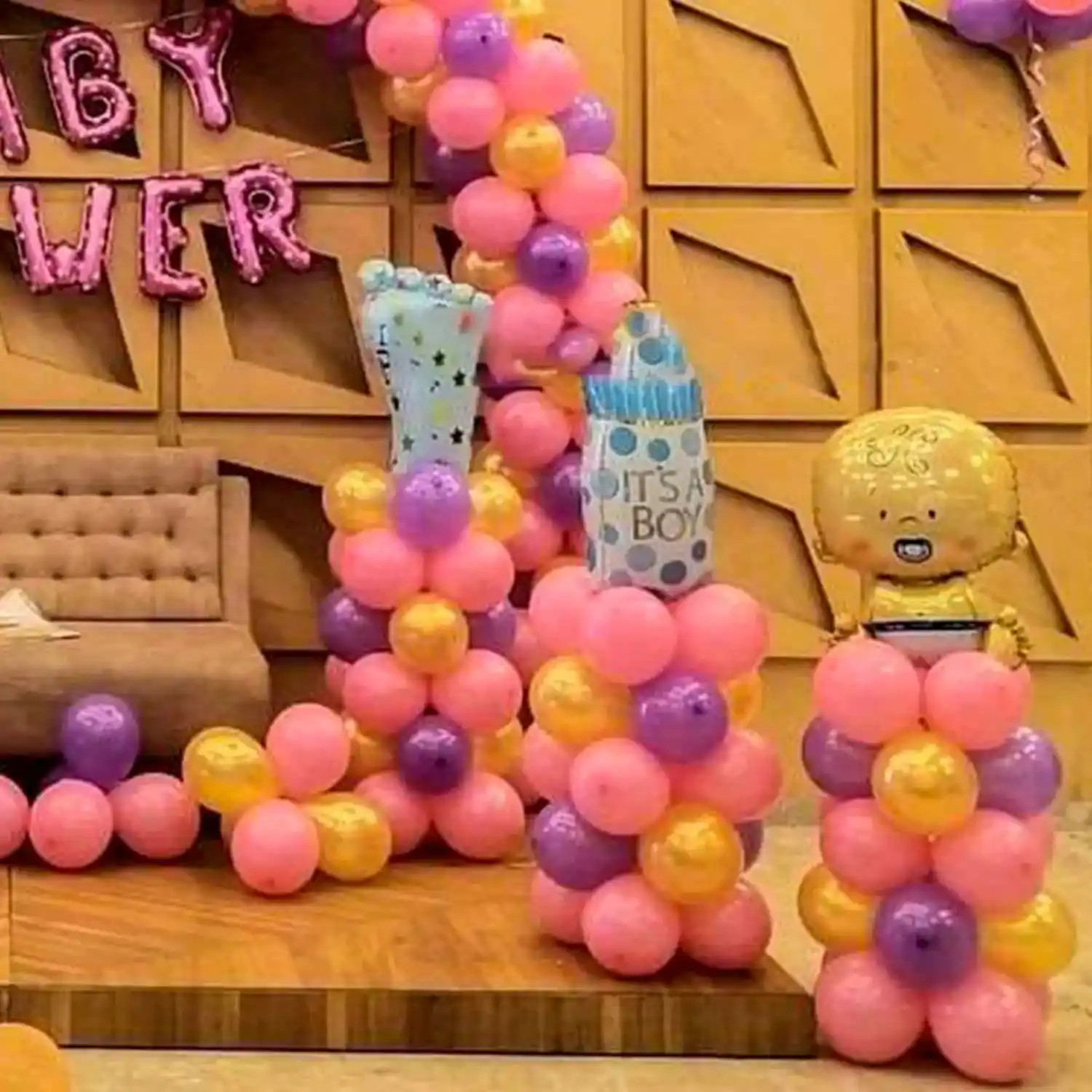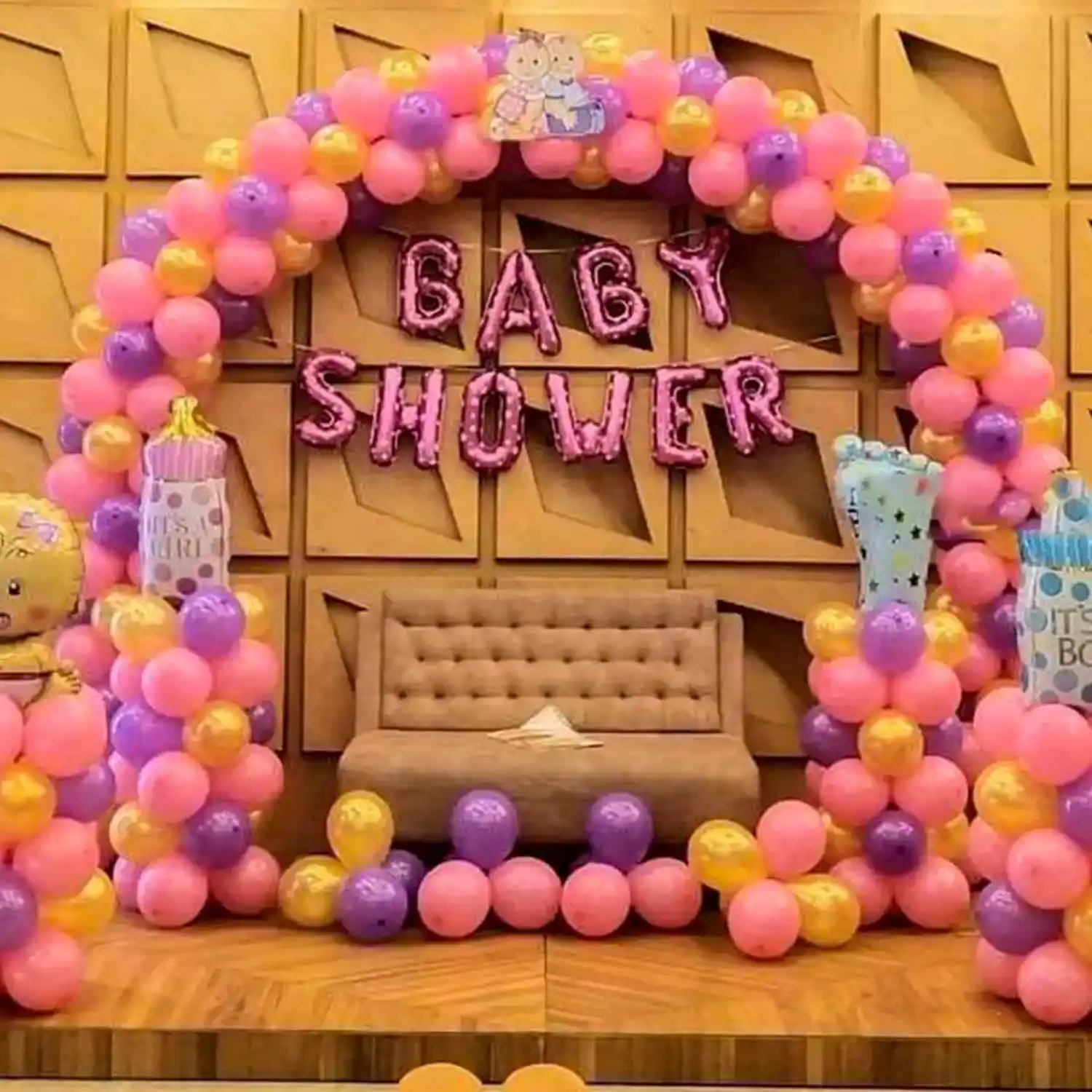 A beautiful arrangement of balloons and more for your kid's baby shower function.