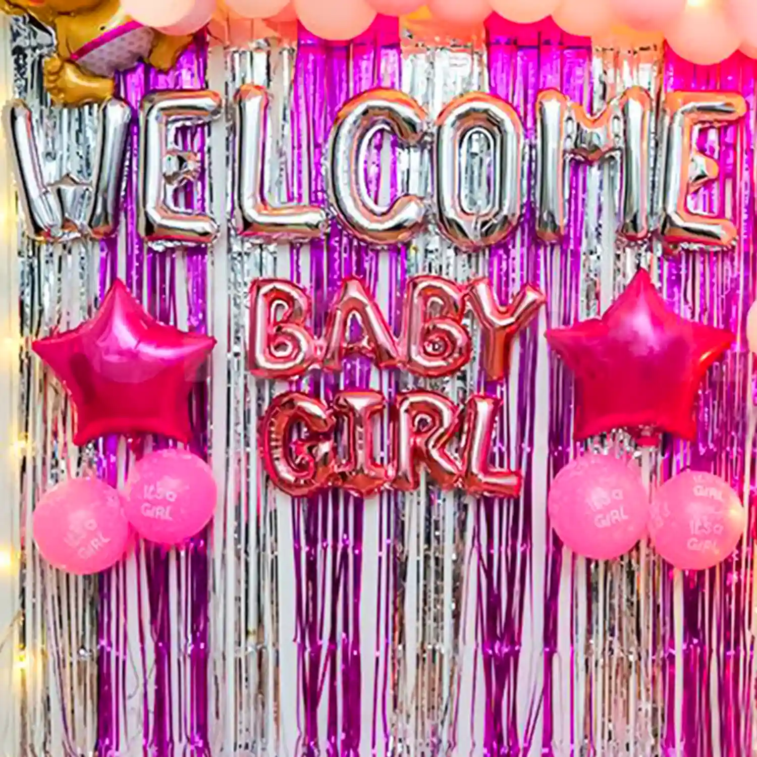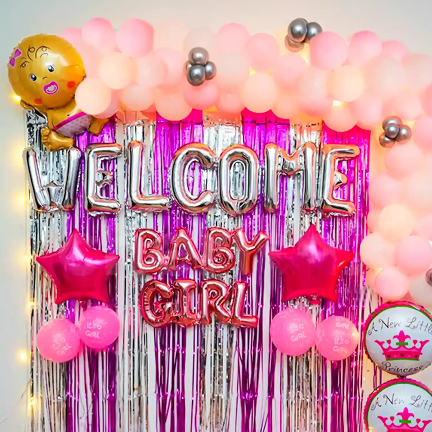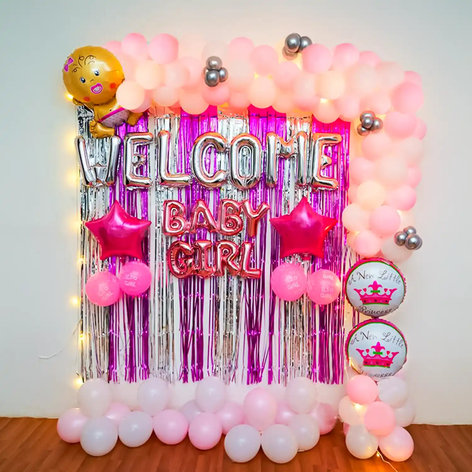 Step into a world of pink dreams and silver linings with this welcome baby girl decor!