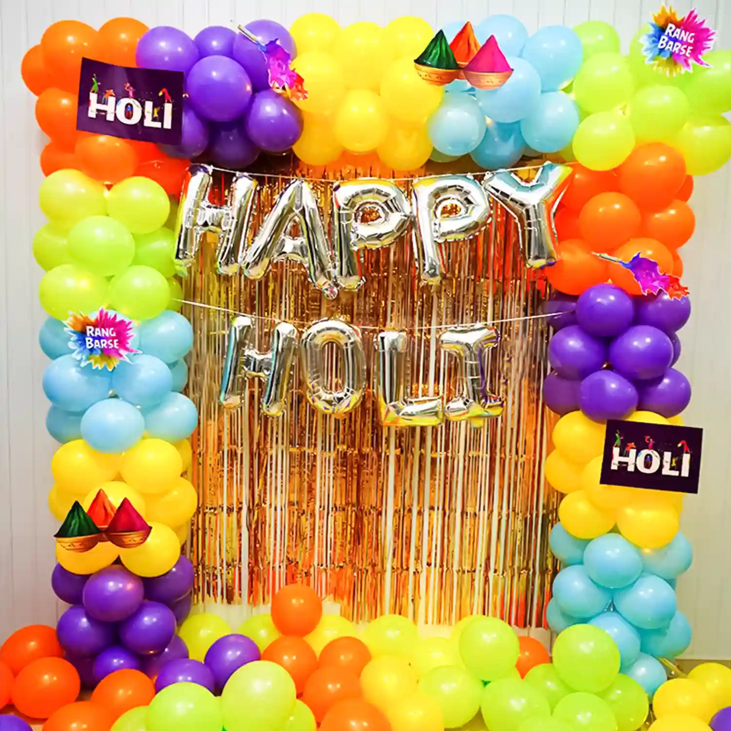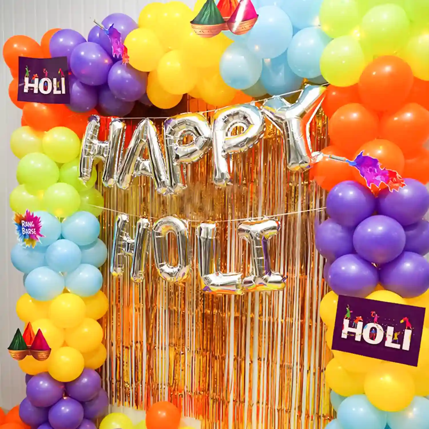 Add a pop of colour to your Holi celebrations with this vibrant balloon decoration.