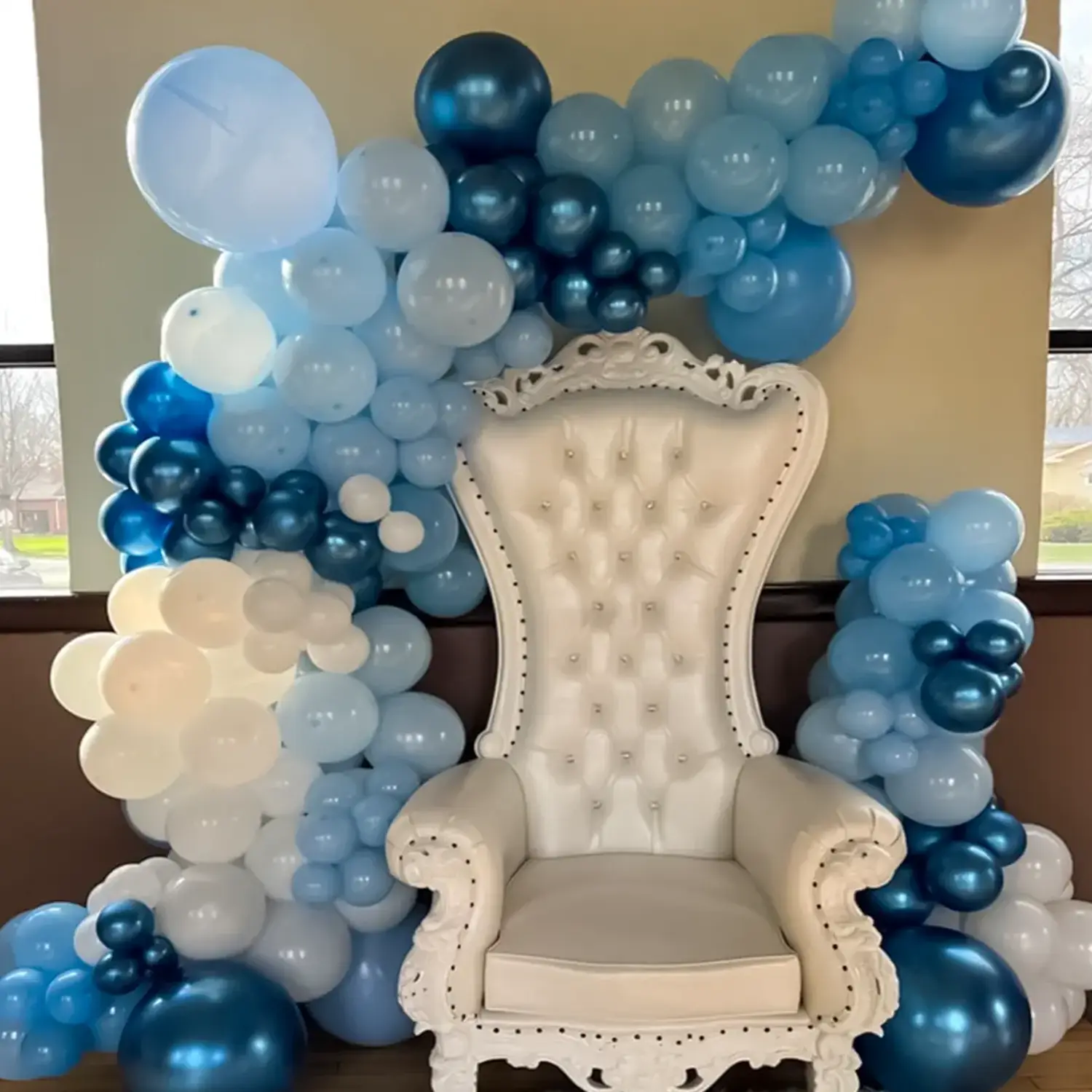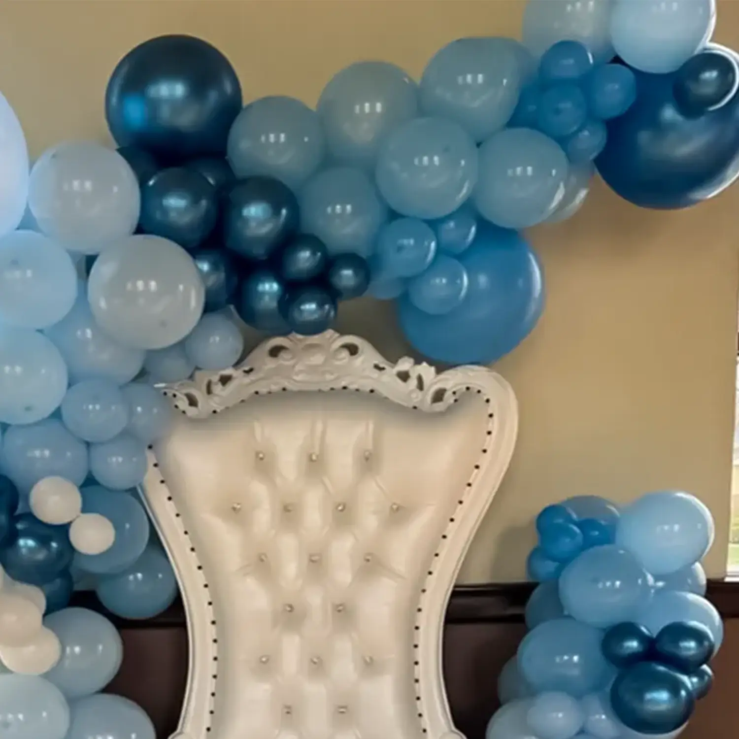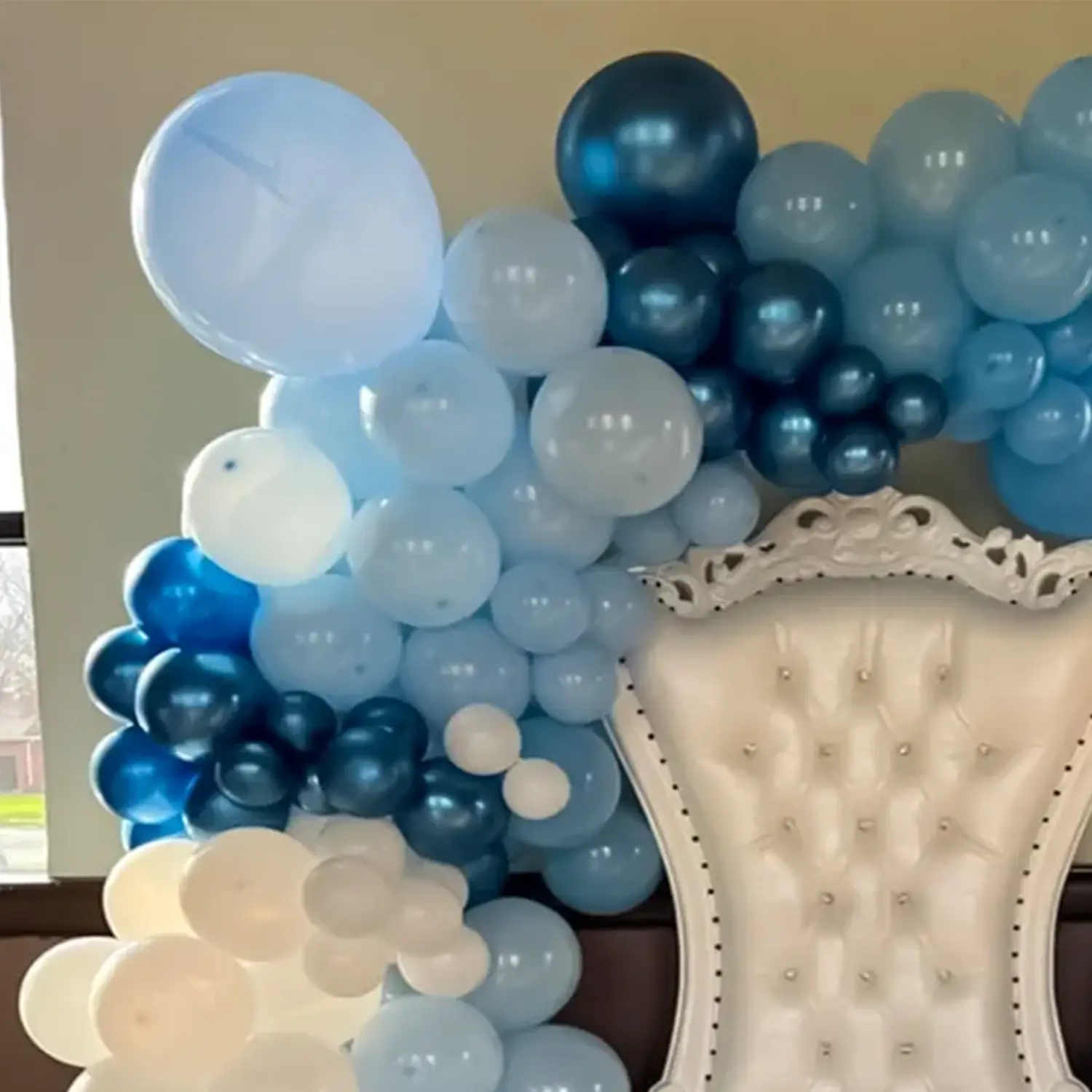 Make Mothers Day celebrations special with this blue balloon arch decoration.