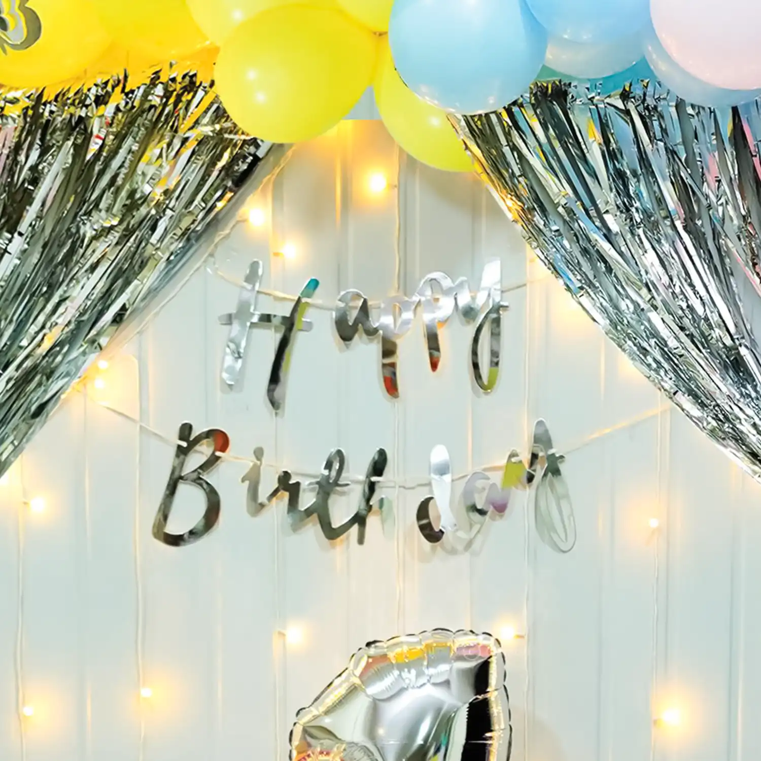 A beautiful balloon decoration idea for birthday celebrations at home.