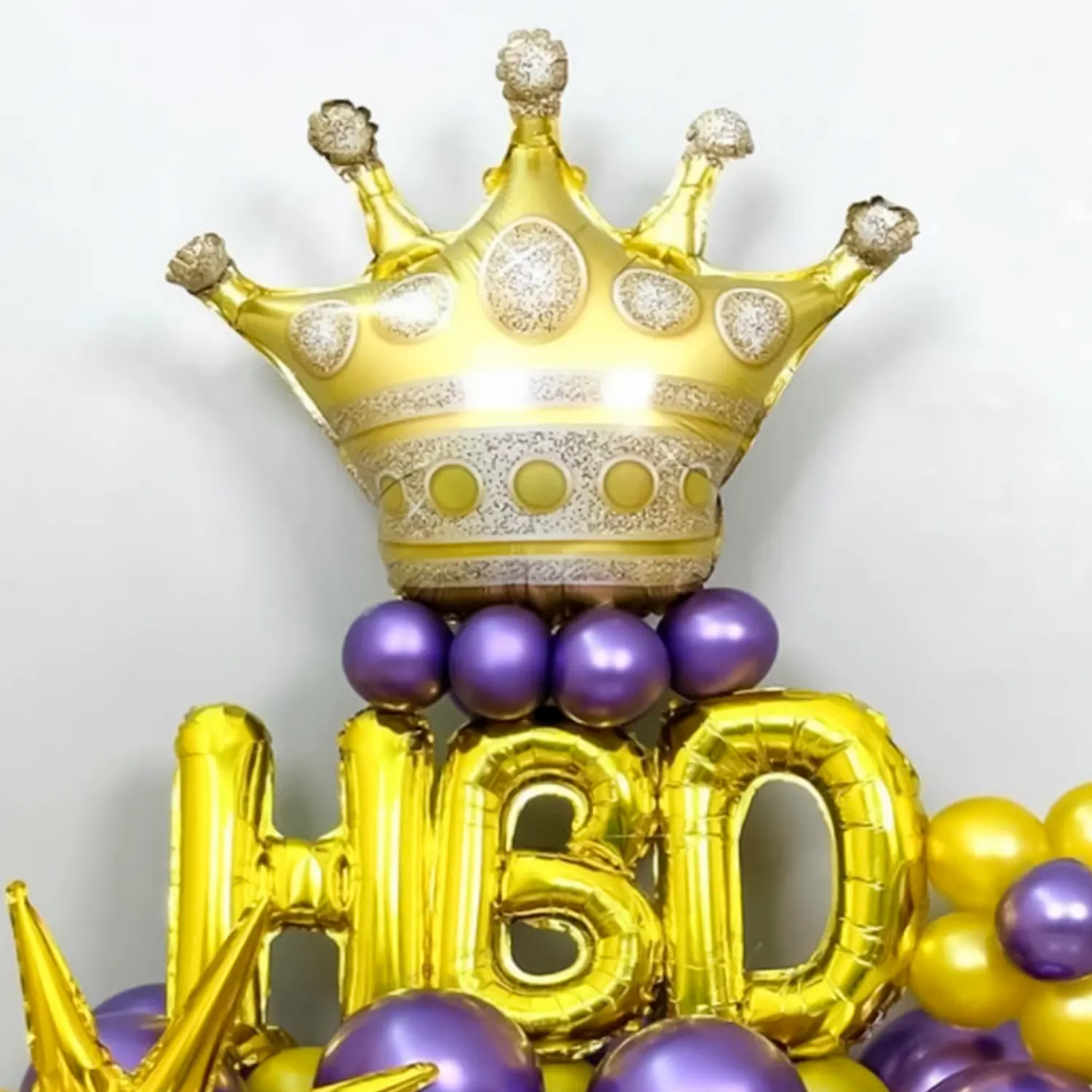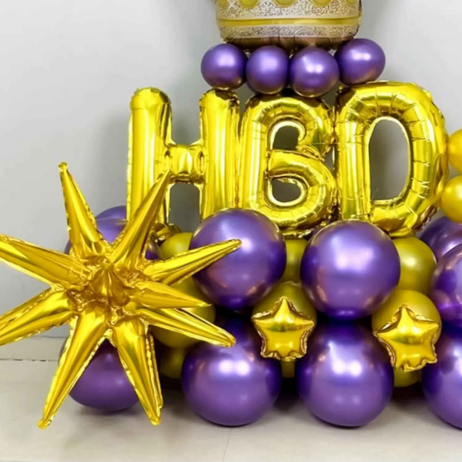 Make birthdays joyful with this purple and golden balloon bouquet.