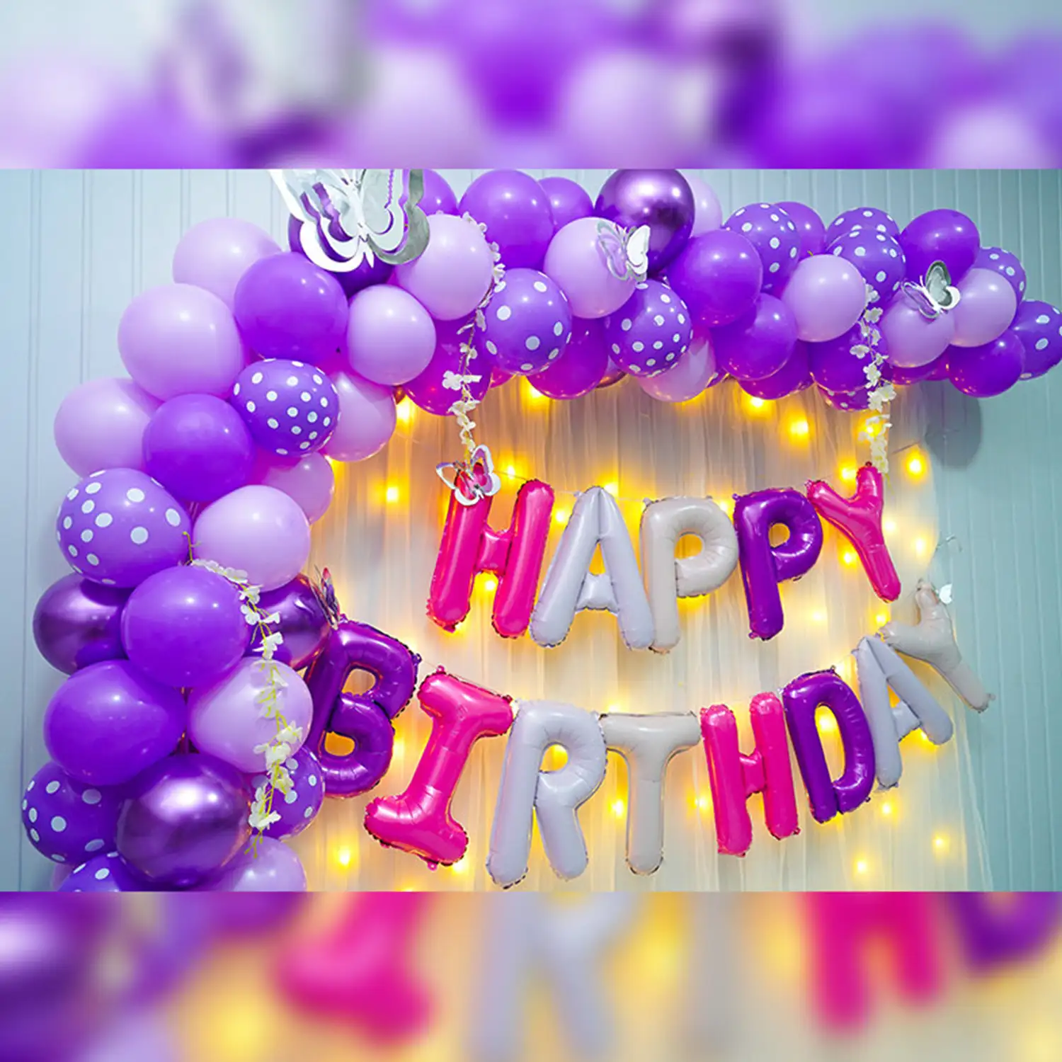 A beautiful balloon decoration idea for birthday celebrations at home.