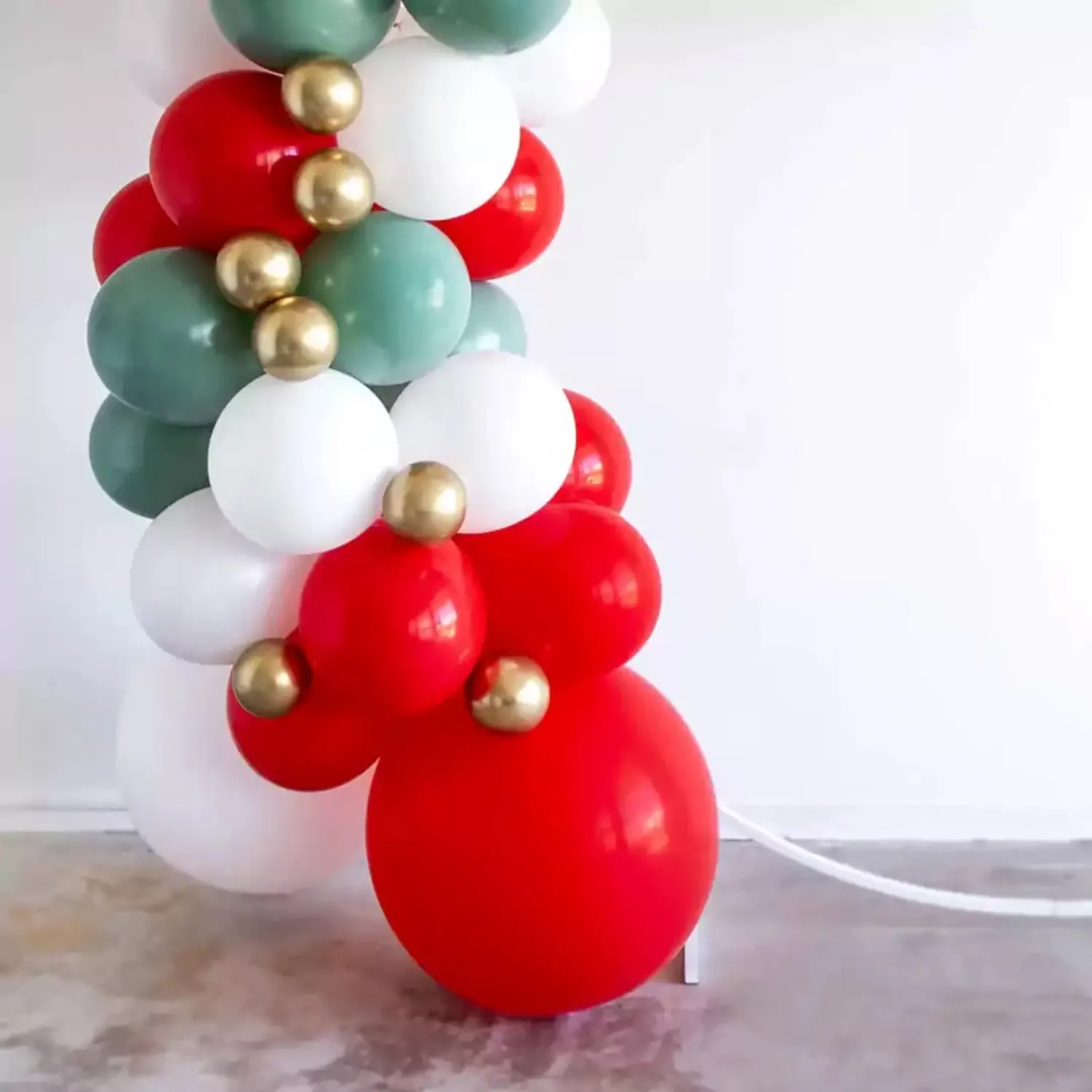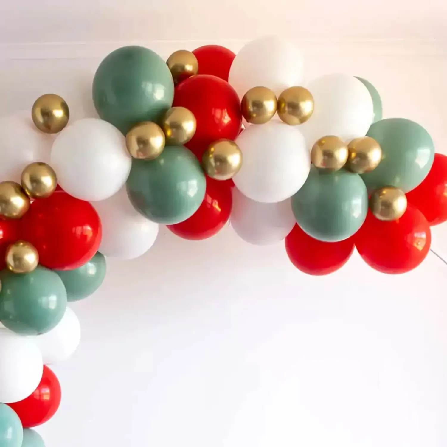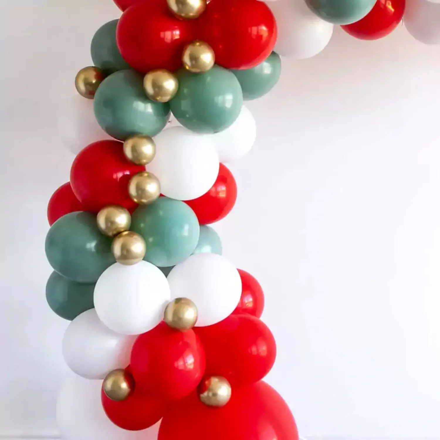 Bright red and green ring balloon arch decoration theme.