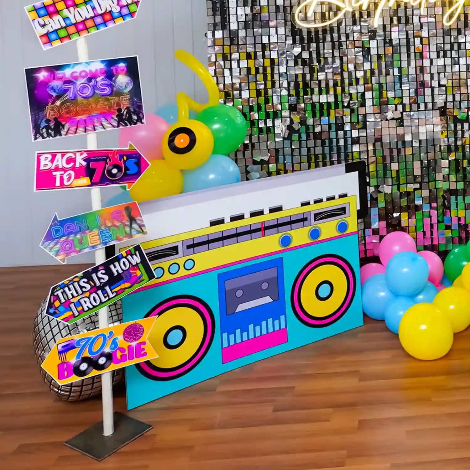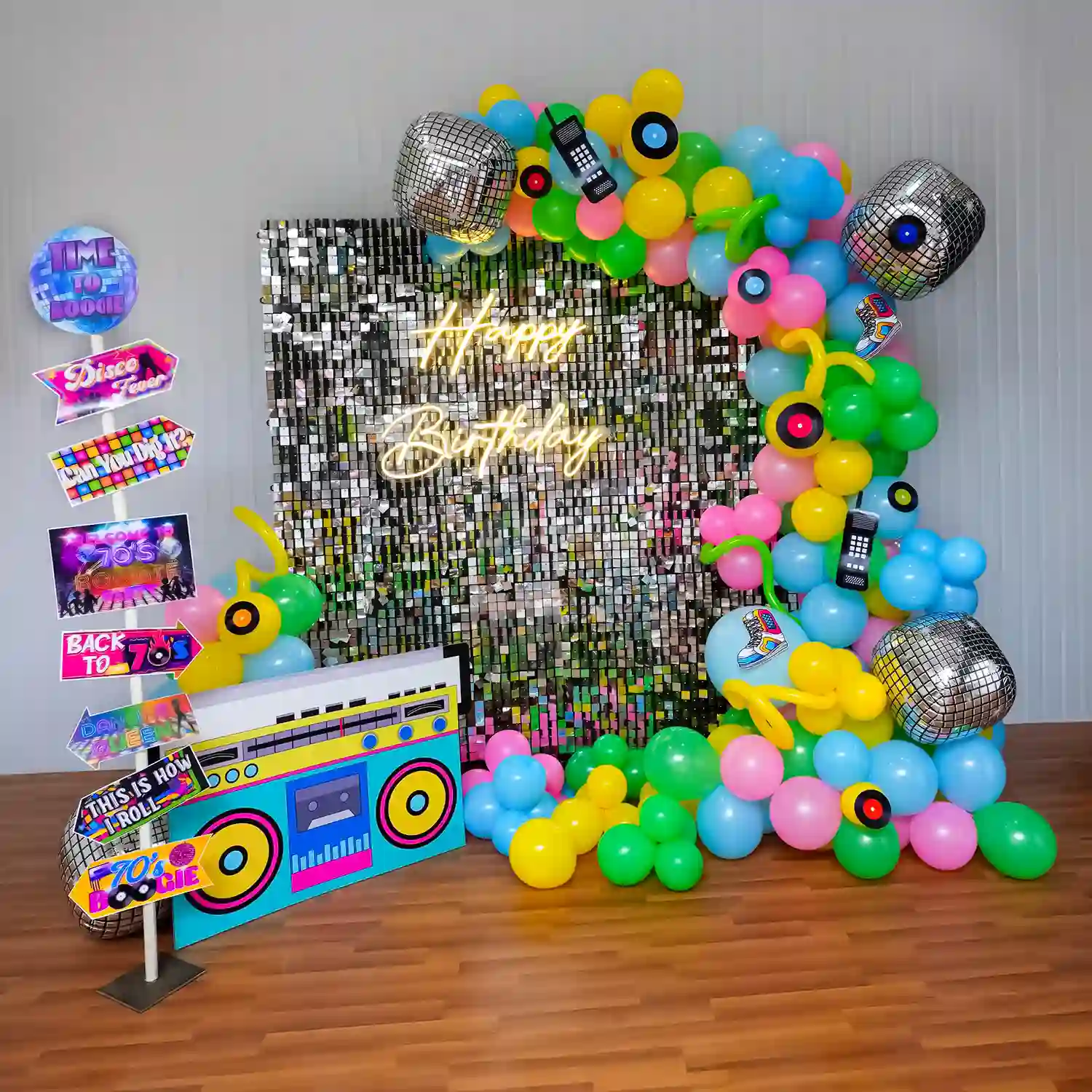 Decorate the place with 100 more balloons.