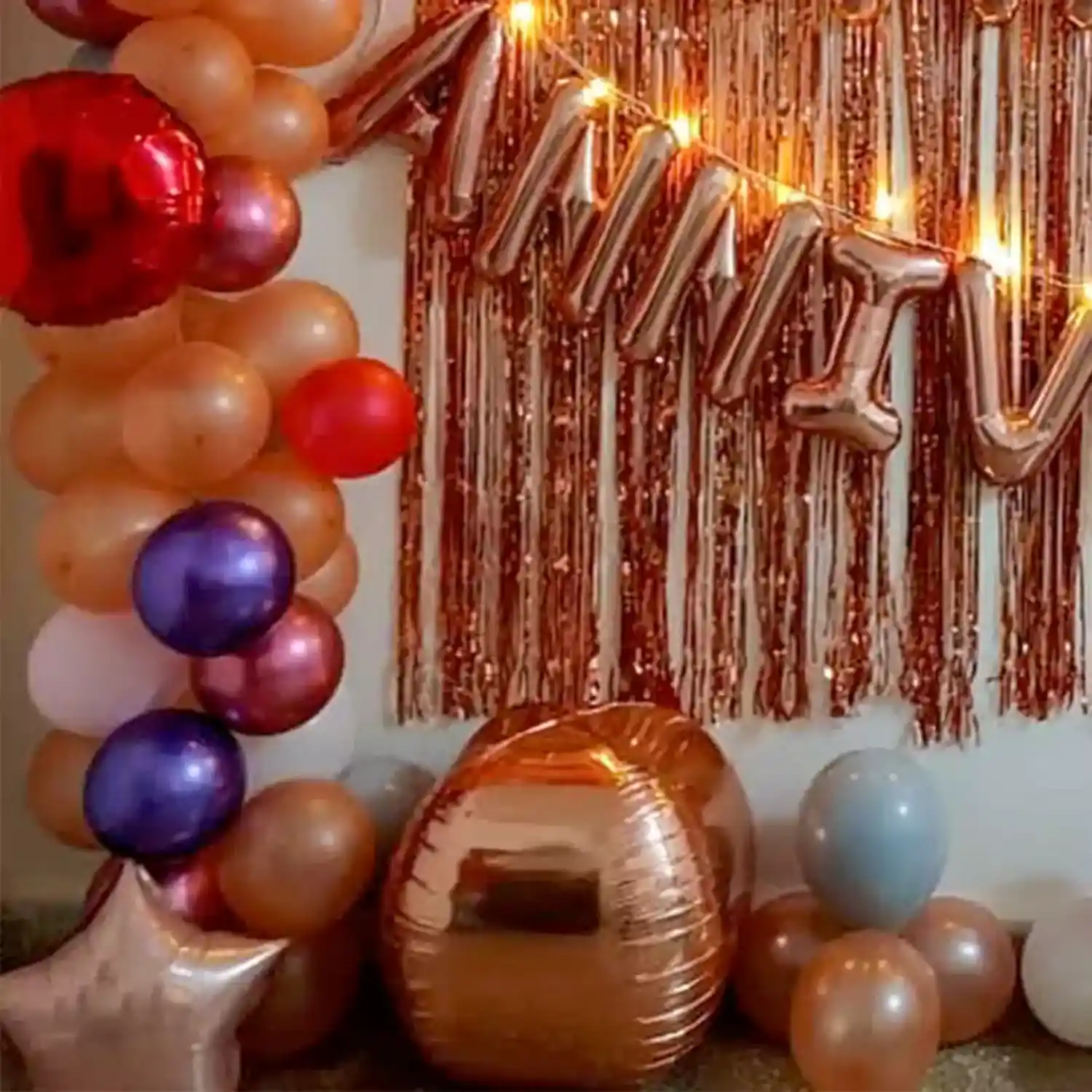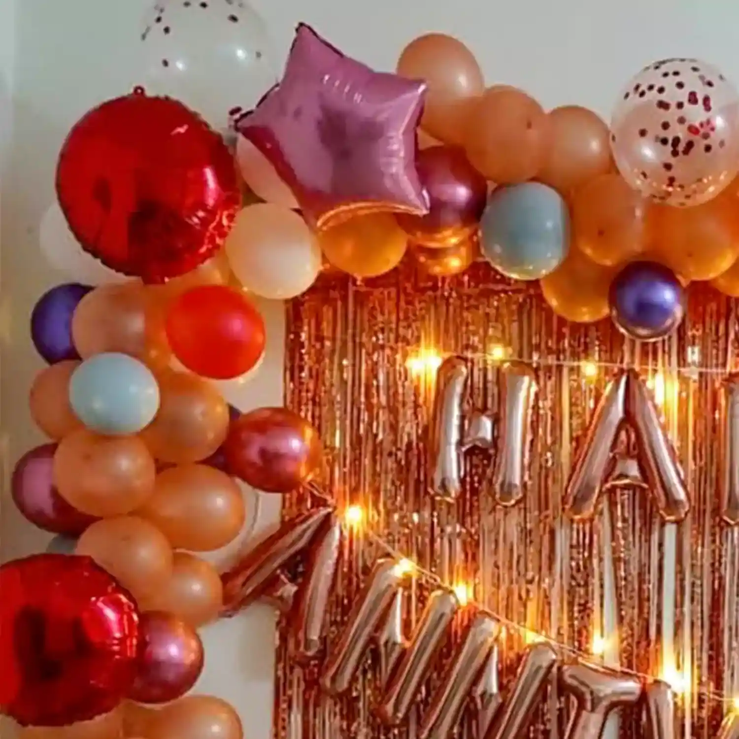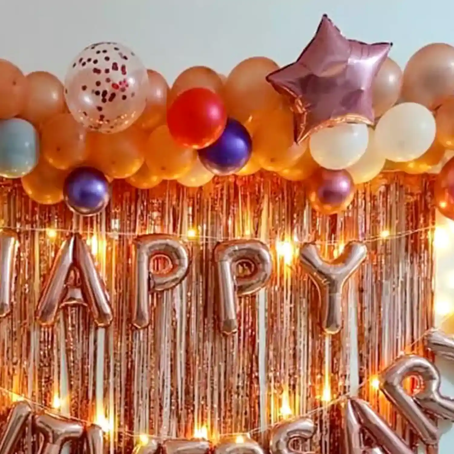 A beautiful balloon decoration idea for birthday celebrations at home.