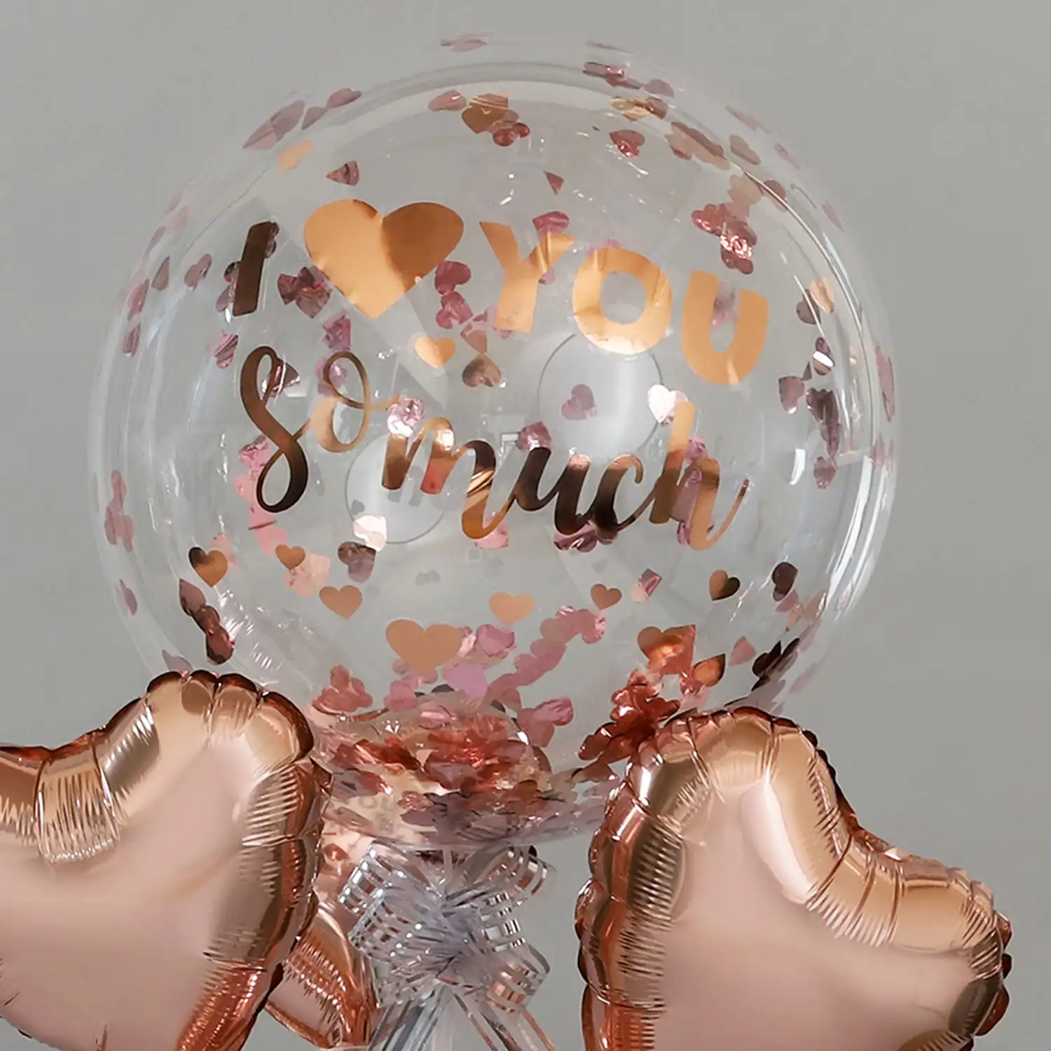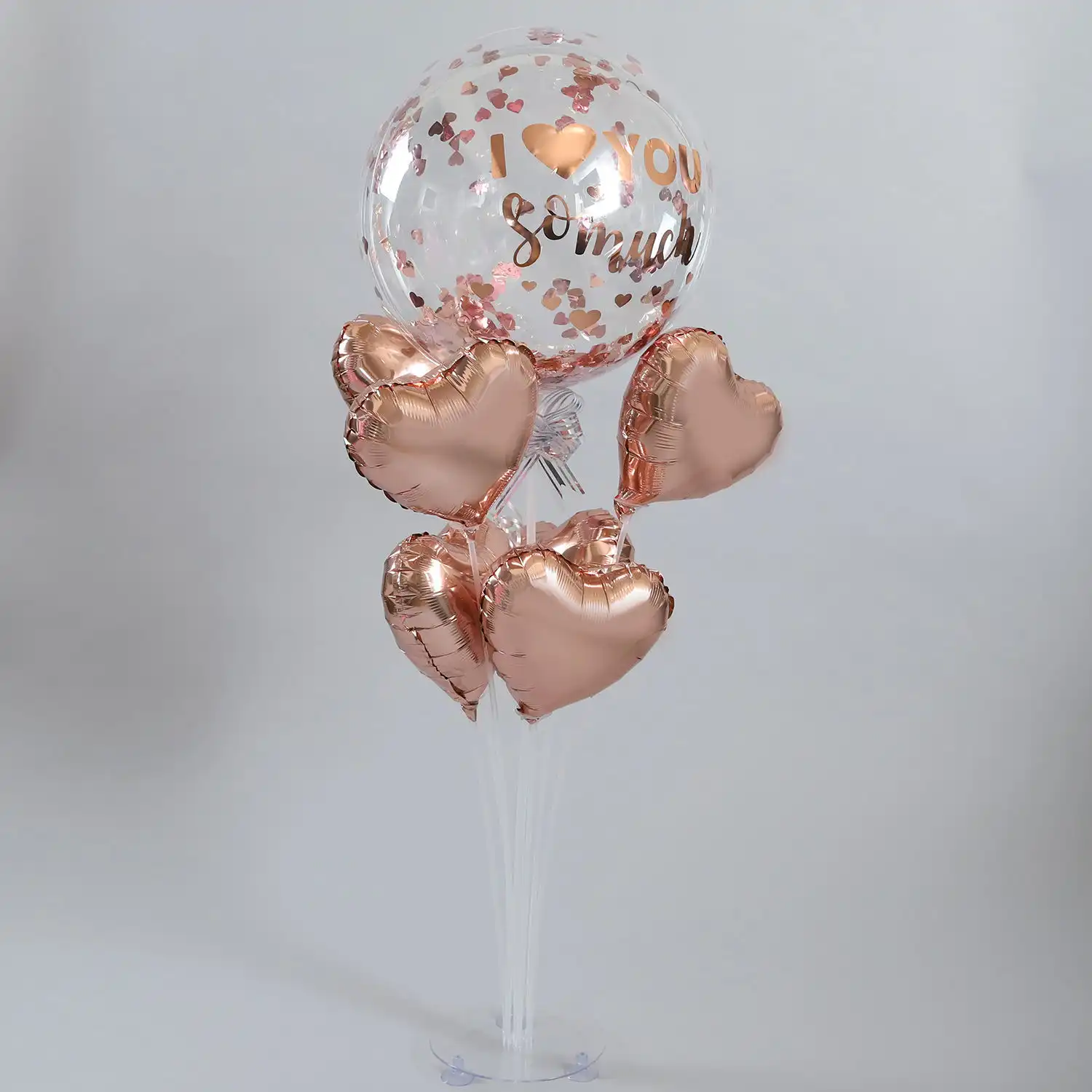 Pretty pink baby girl balloon bouquet with a customized name for decor.