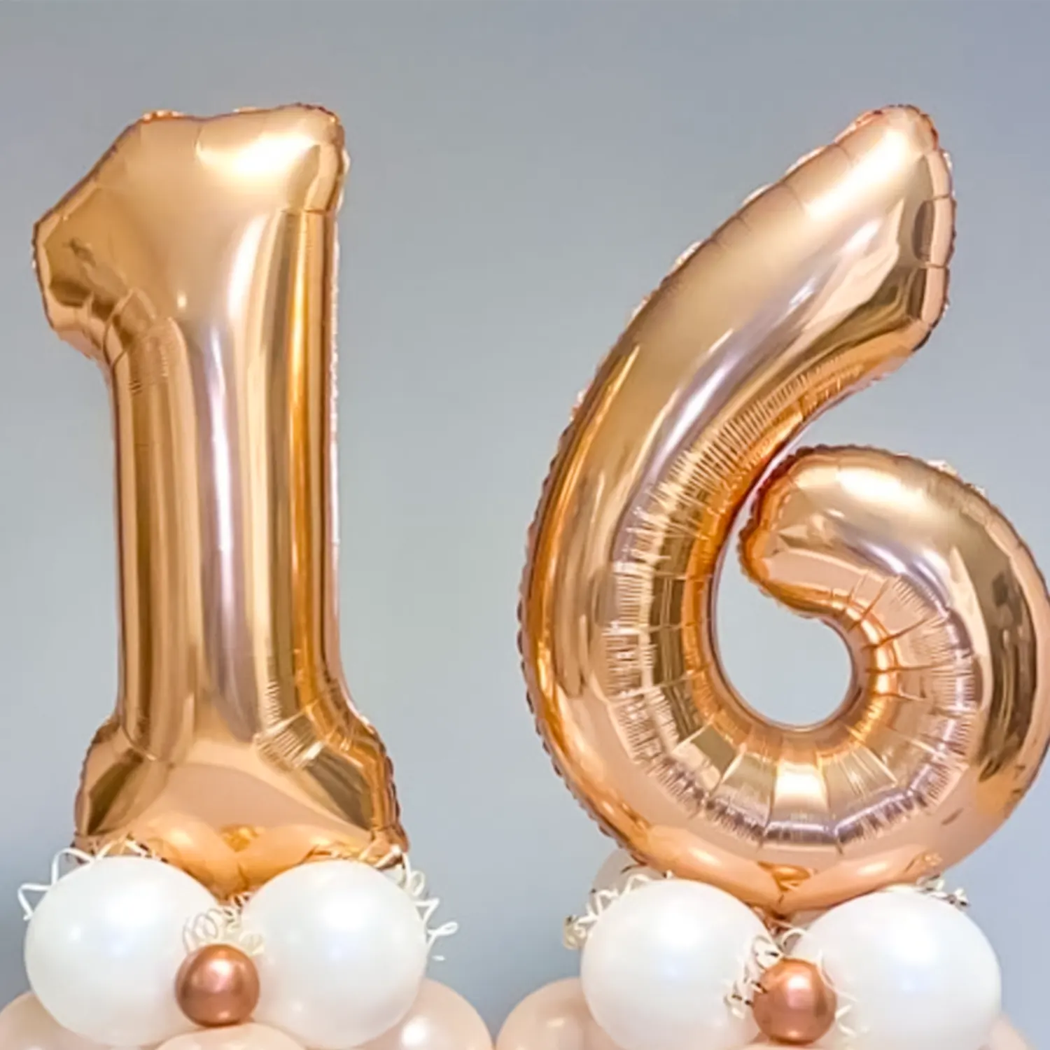 Surprise them with a rose gold countdown! This is a customized numeric balloon bouquet.