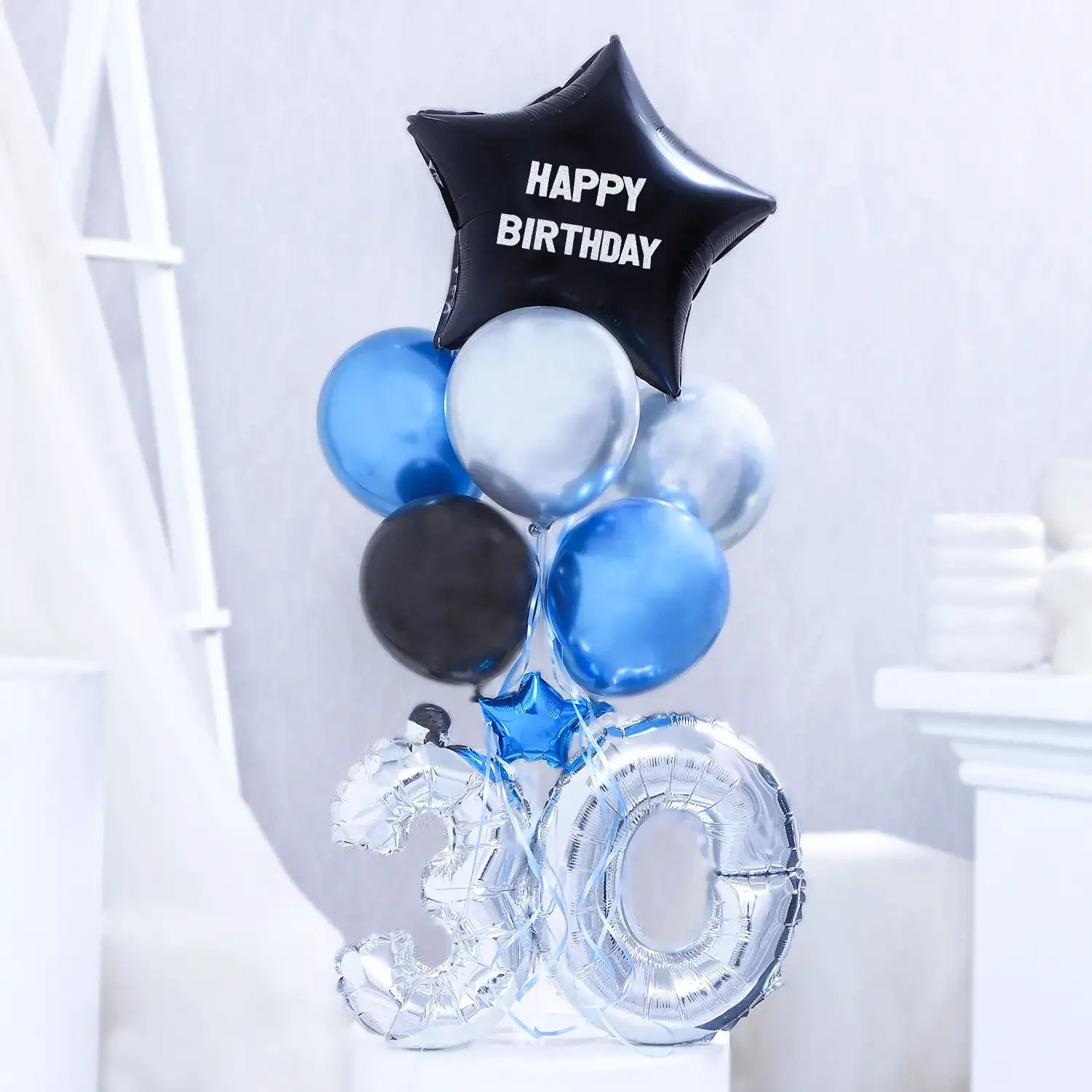 Wishing you a birthday as bright and cheerful as this blue balloon decor!