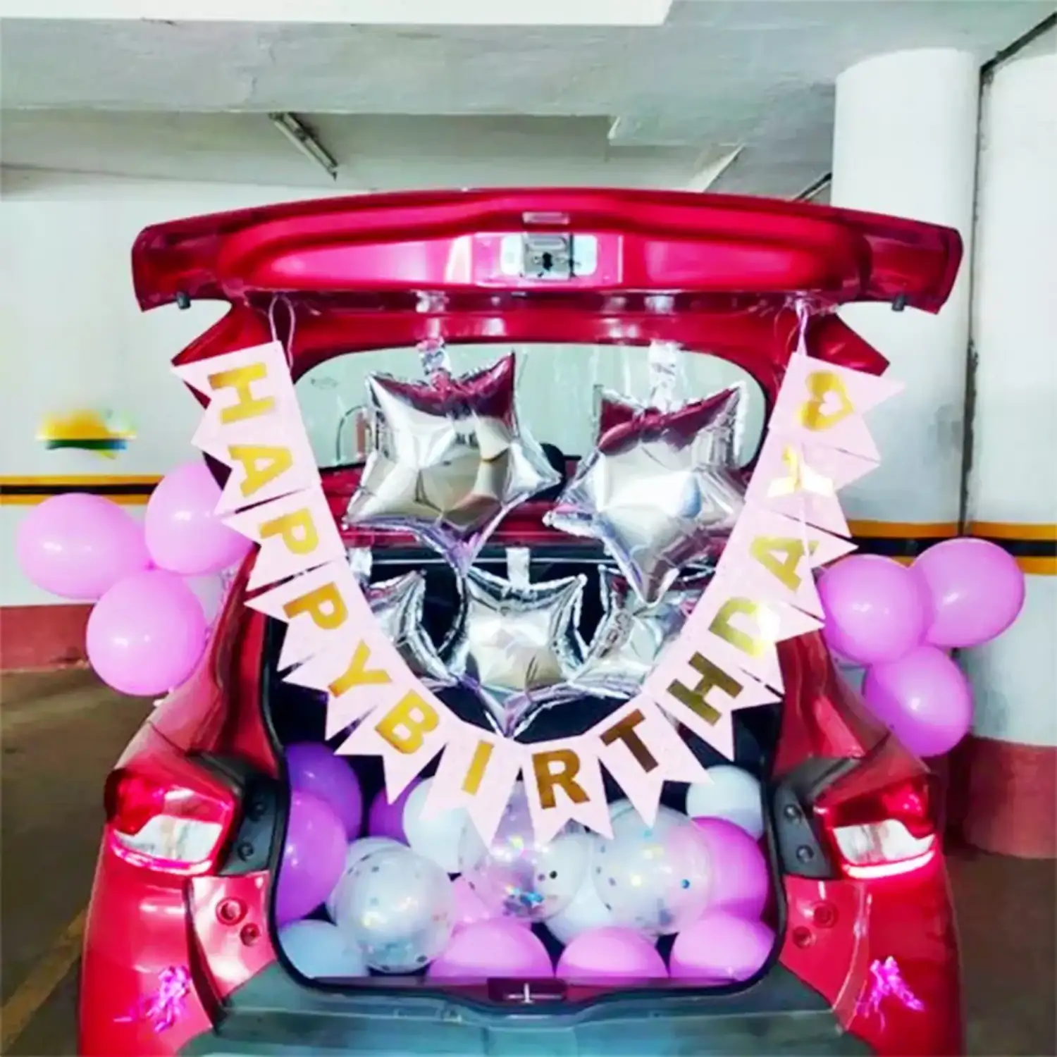 Have a look at this beautiful car deck decoration for birthday celebrations.