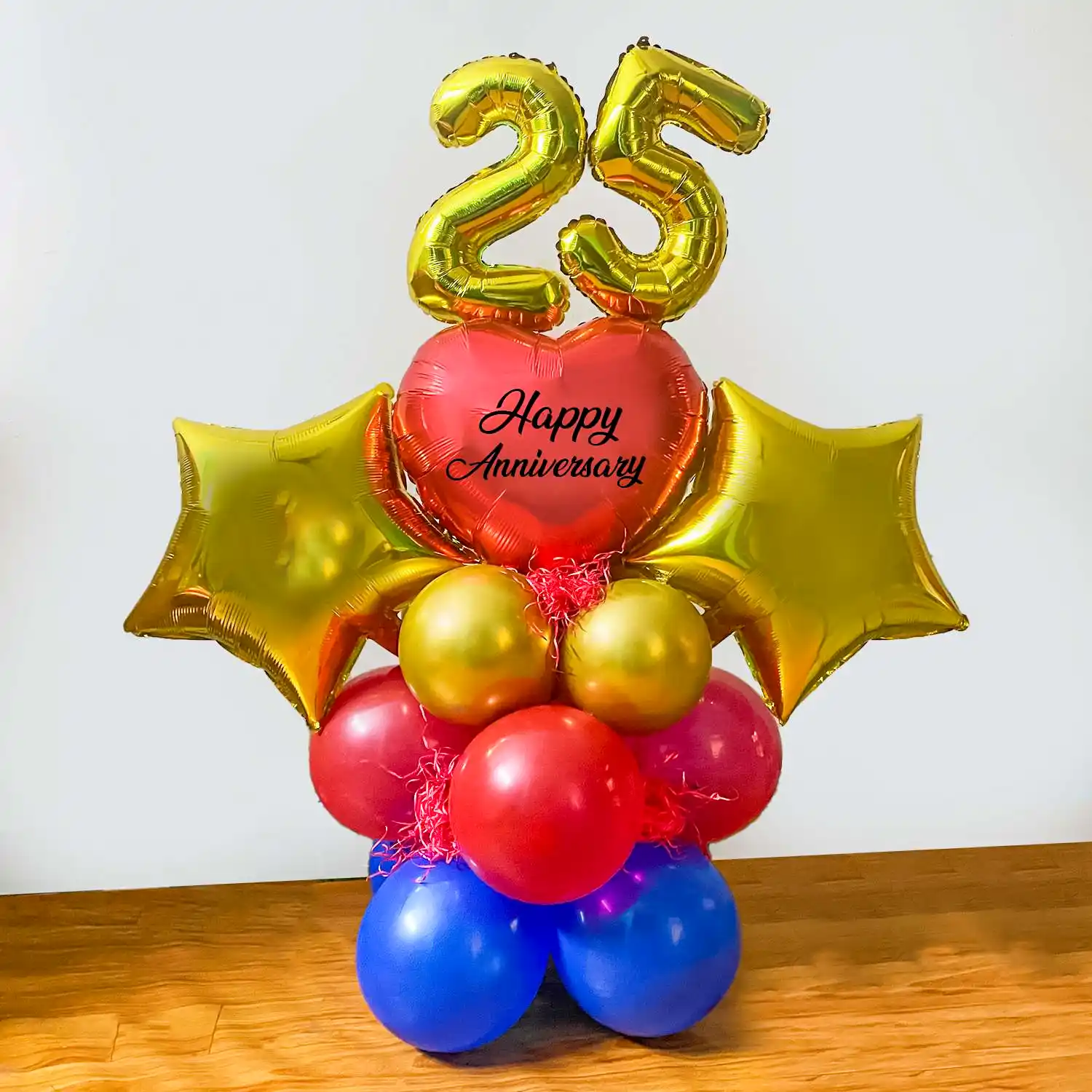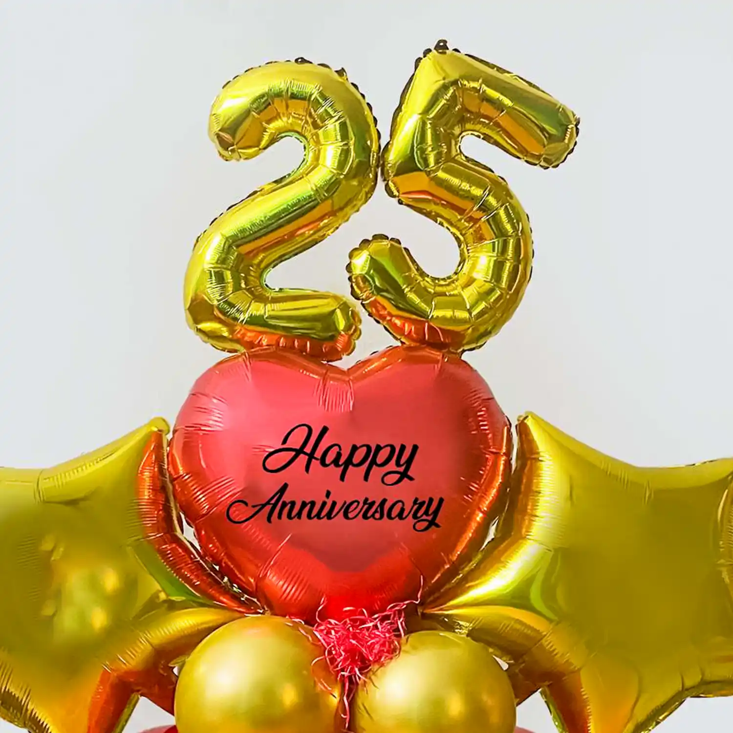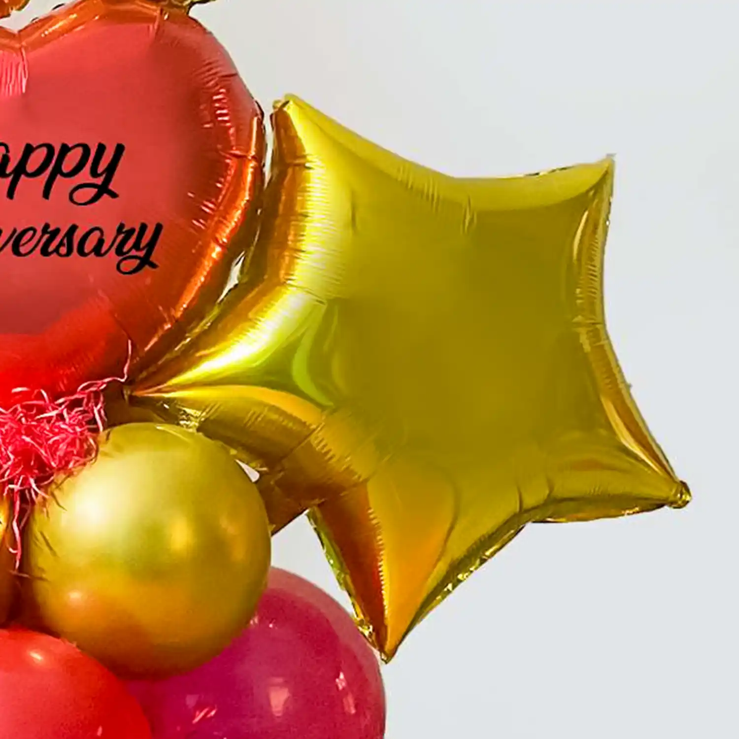 Wish a Happy Anniversary to your forever with this red heart balloon bouquet.