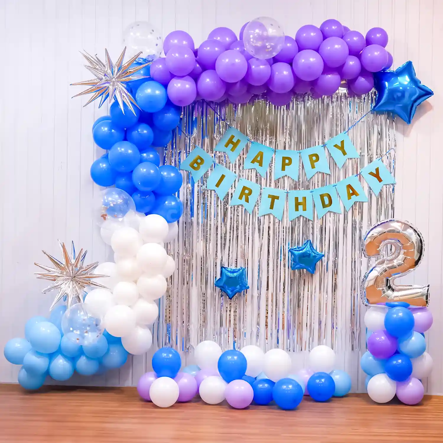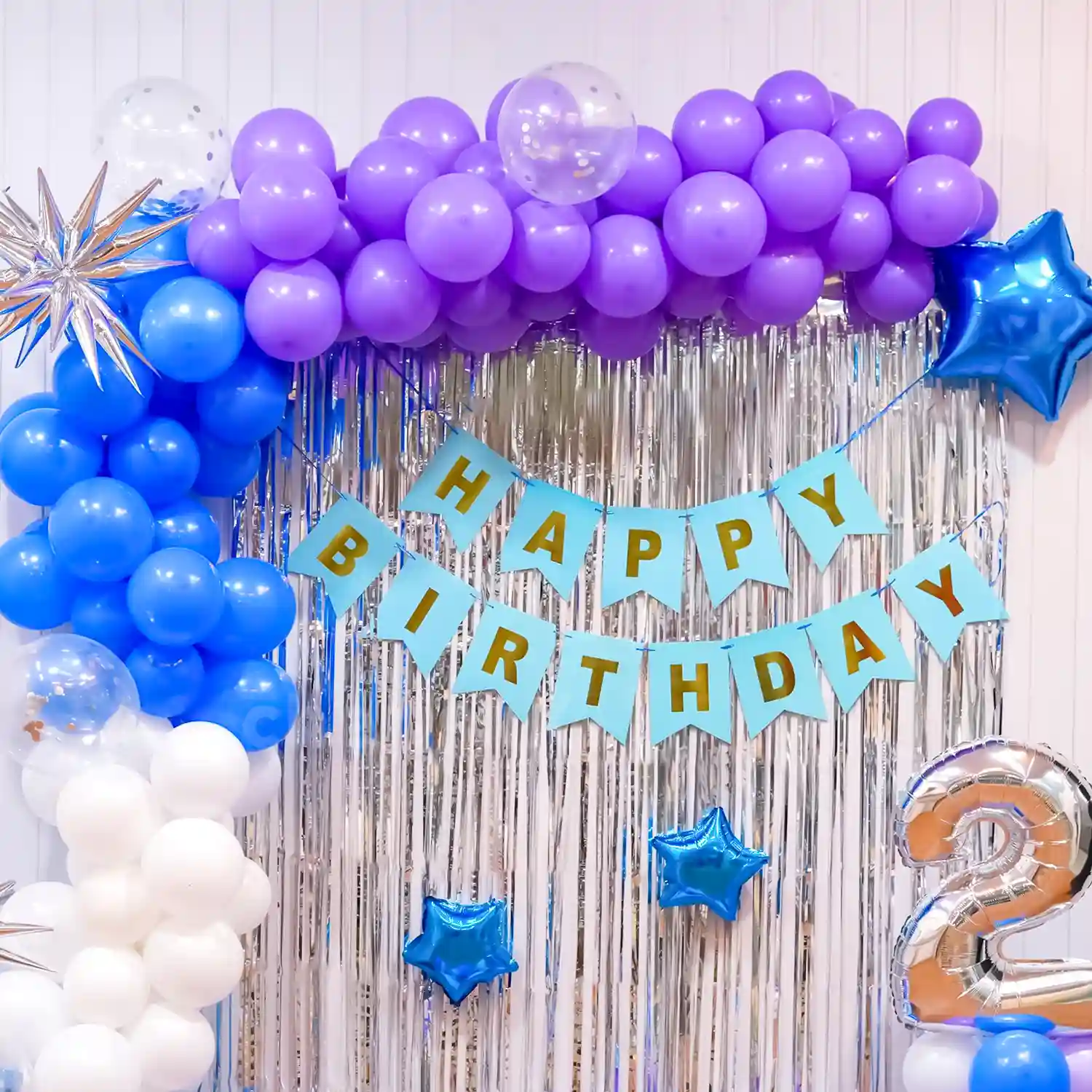 Surprise him with this sparkling blue and purple birthday decoration idea.