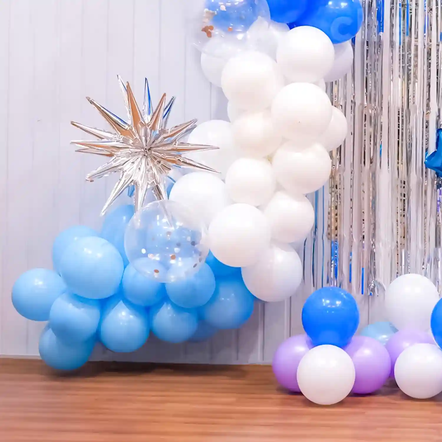 A beautiful balloon decoration idea for birthday celebrations at home.