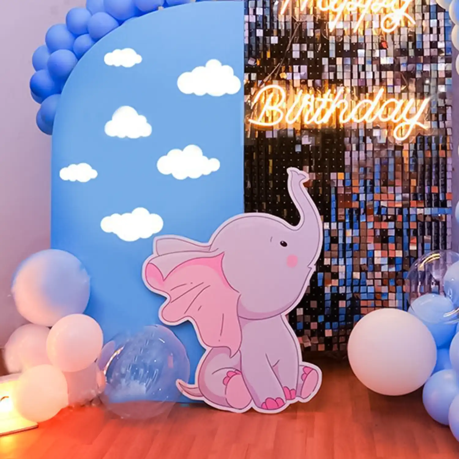 Plan a joyful elephant themed birthday party with this decor idea.