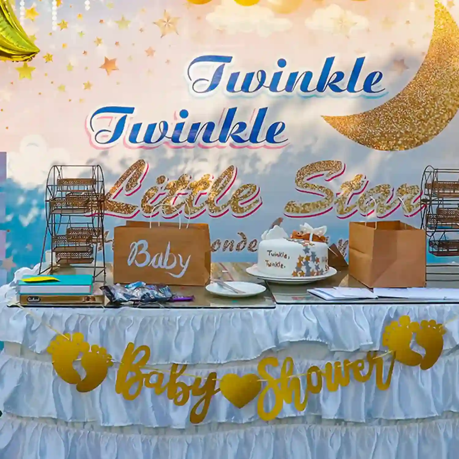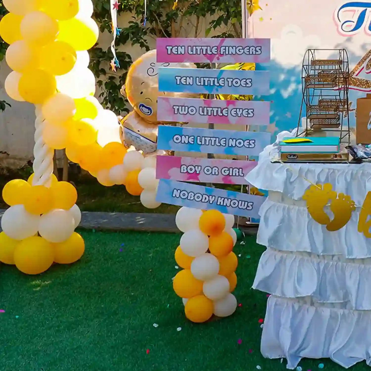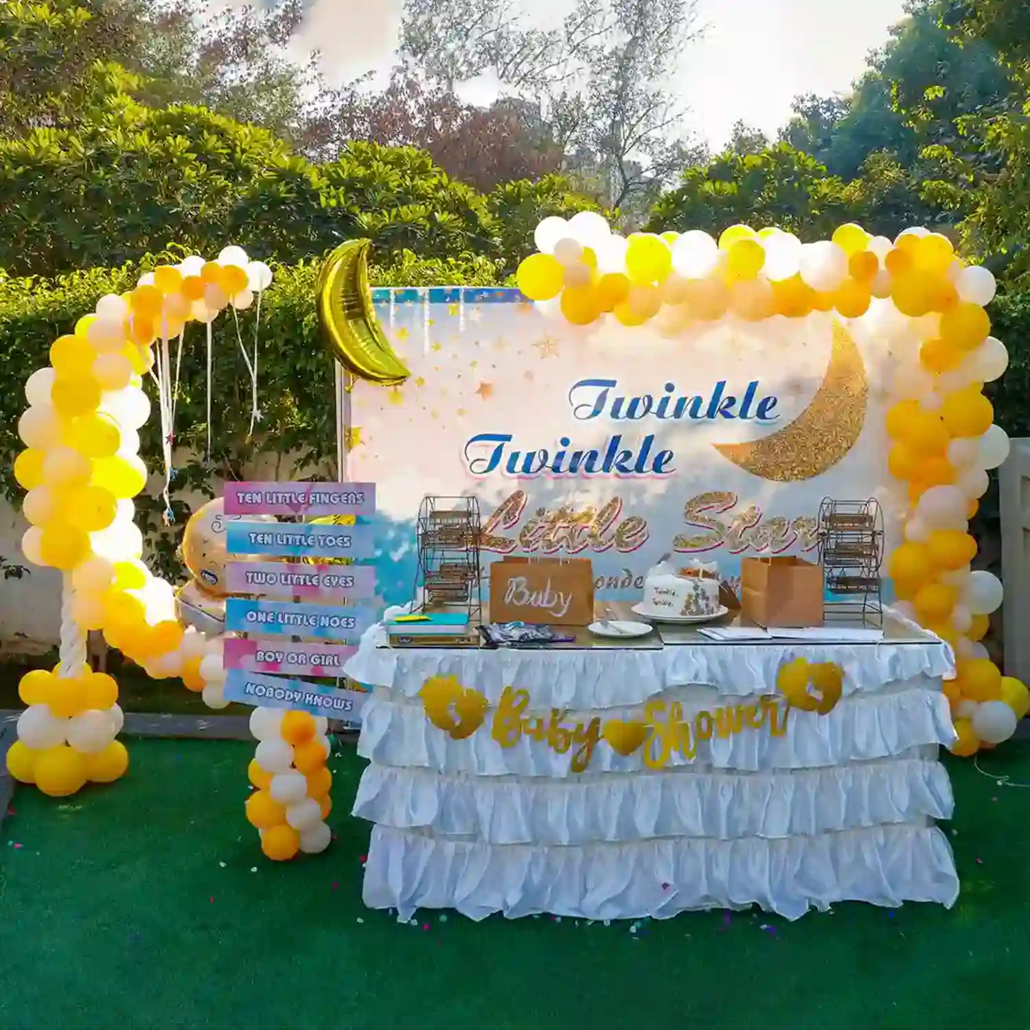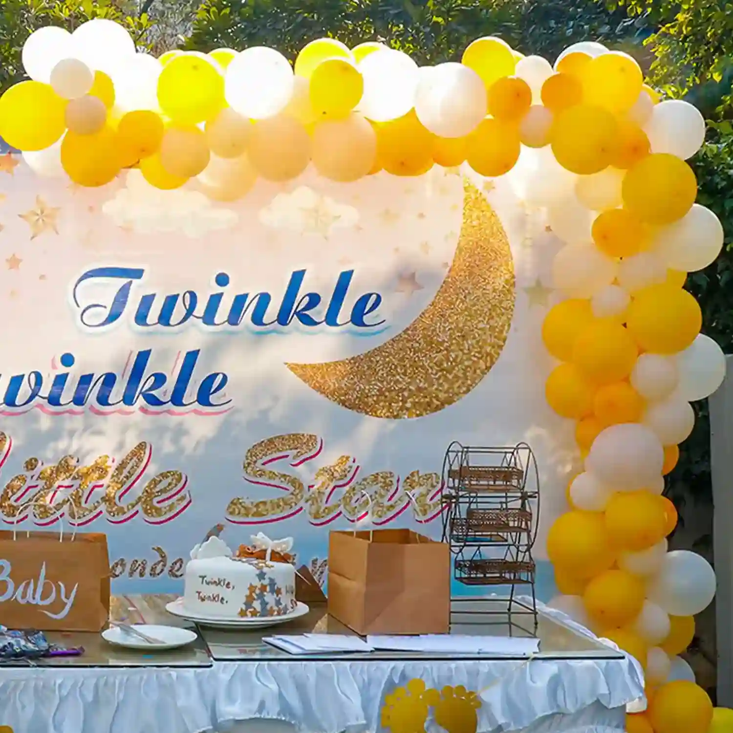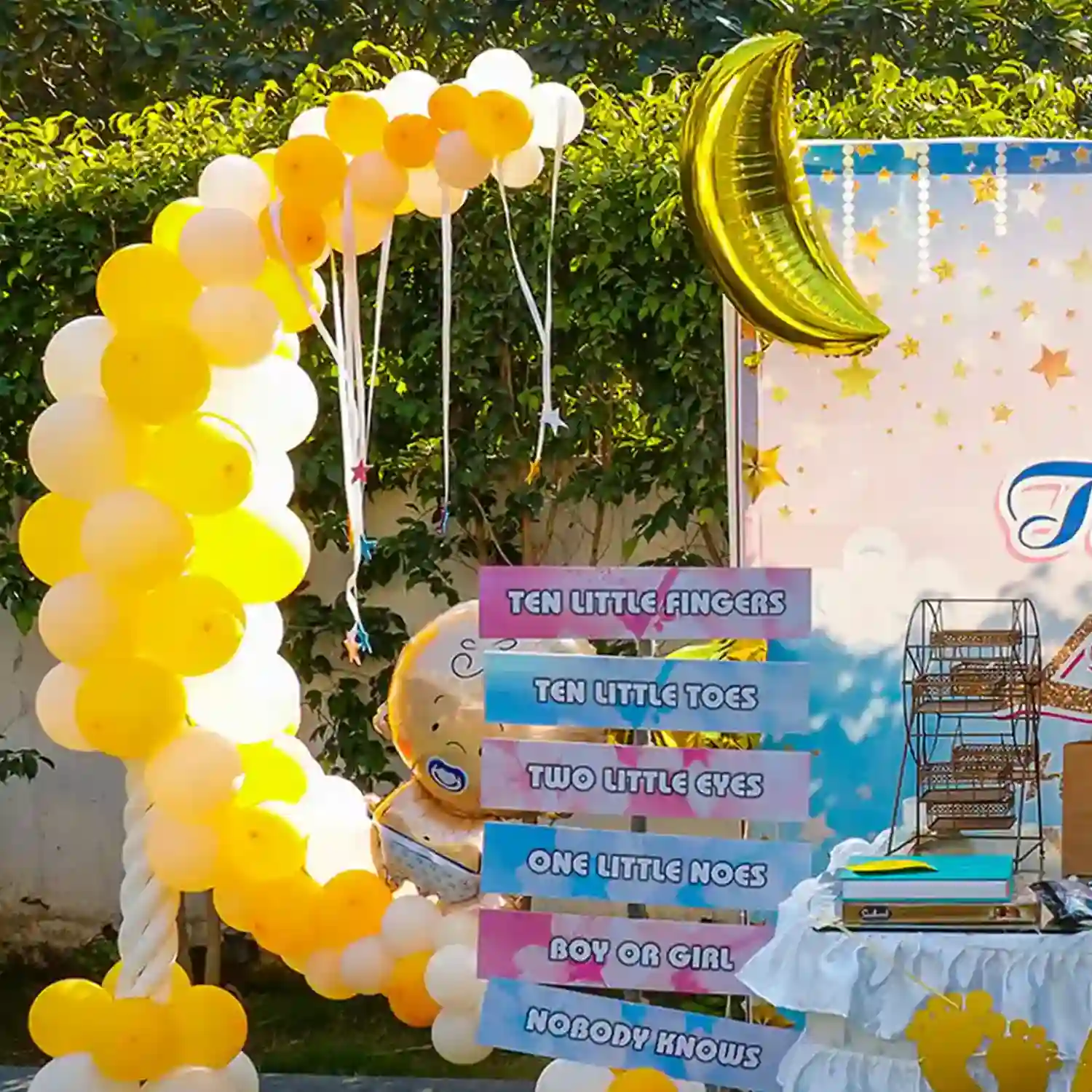 A colourful balloon decor highlighting a rainbow, stars & clouds for kids.