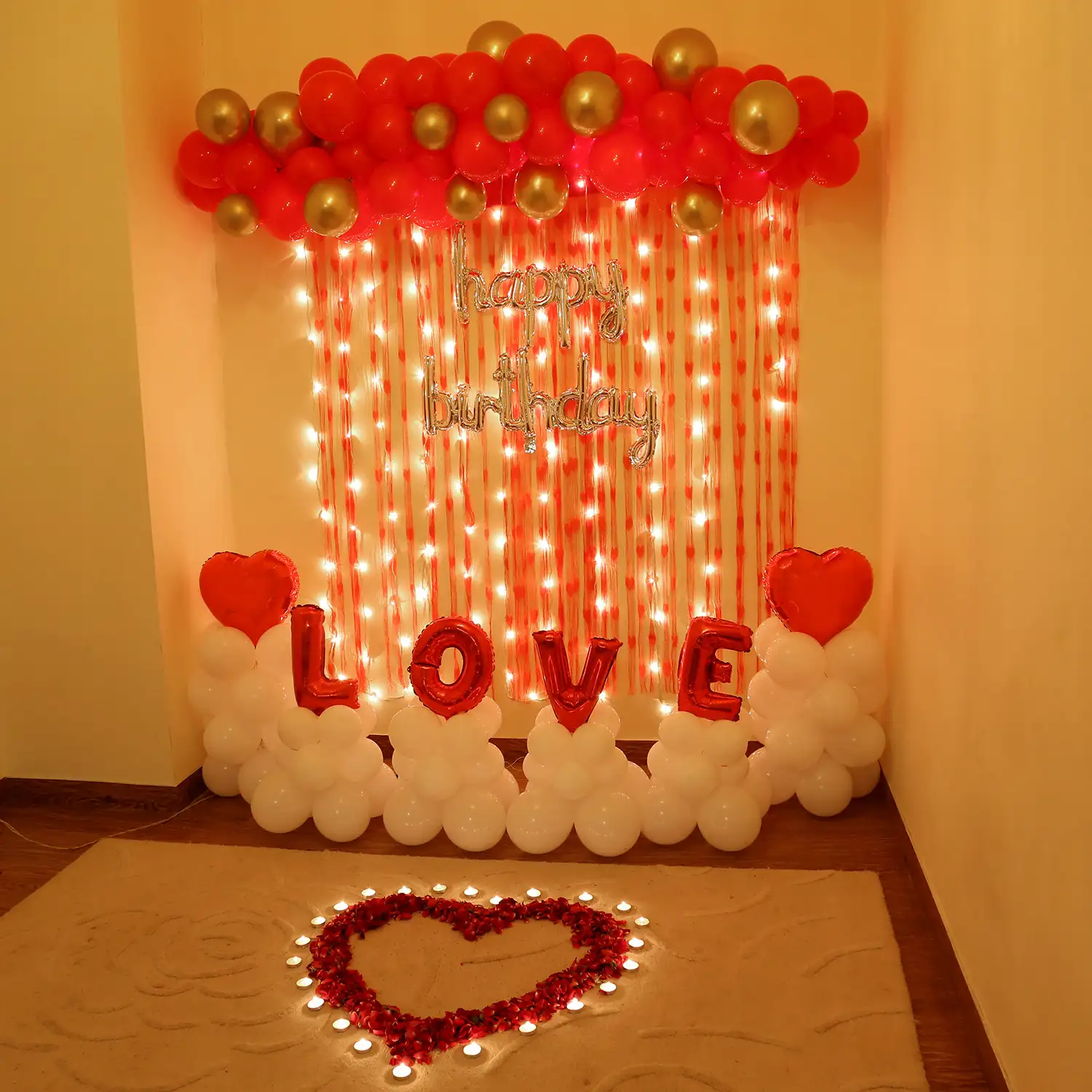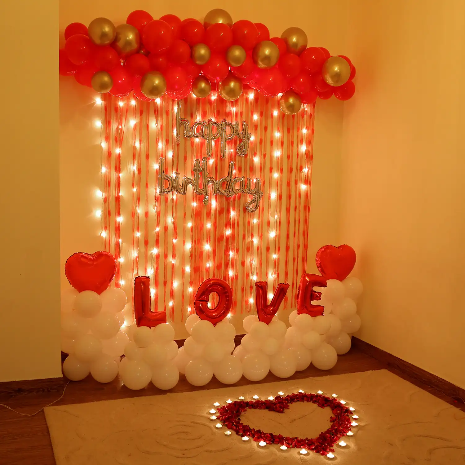 A beautiful balloon decoration idea for birthday celebrations at home.