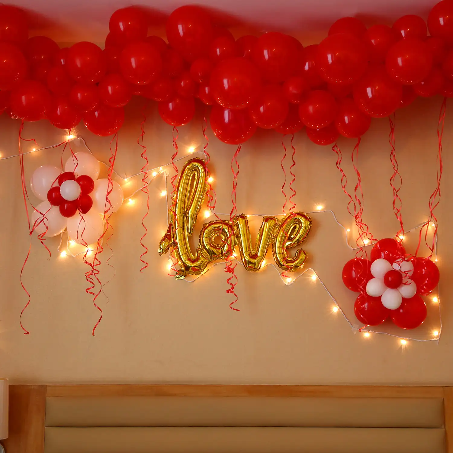 Let your room whisper love with this romantic balloon decoration.