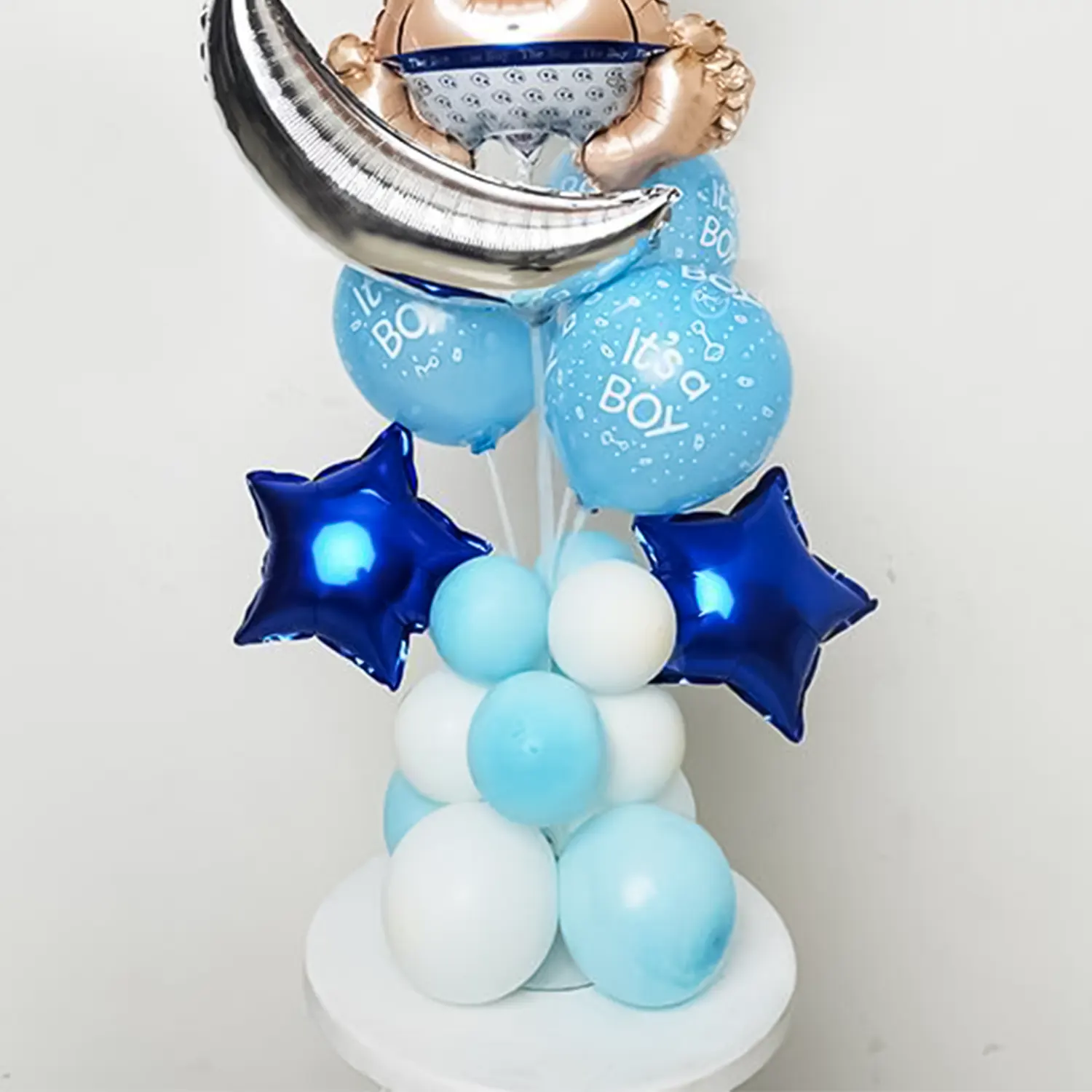 Welcome the little prince with this adorable baby boy balloon bouquet!