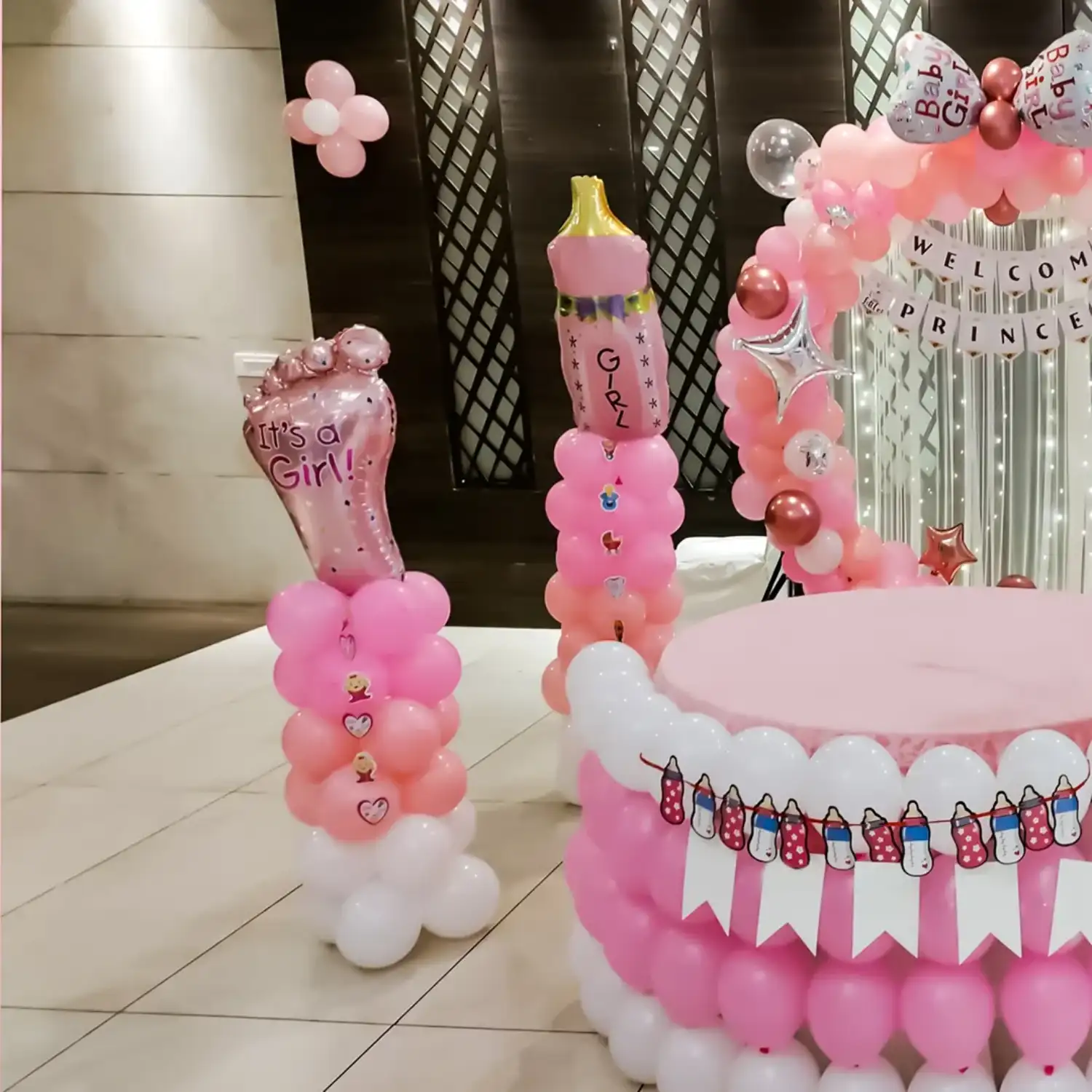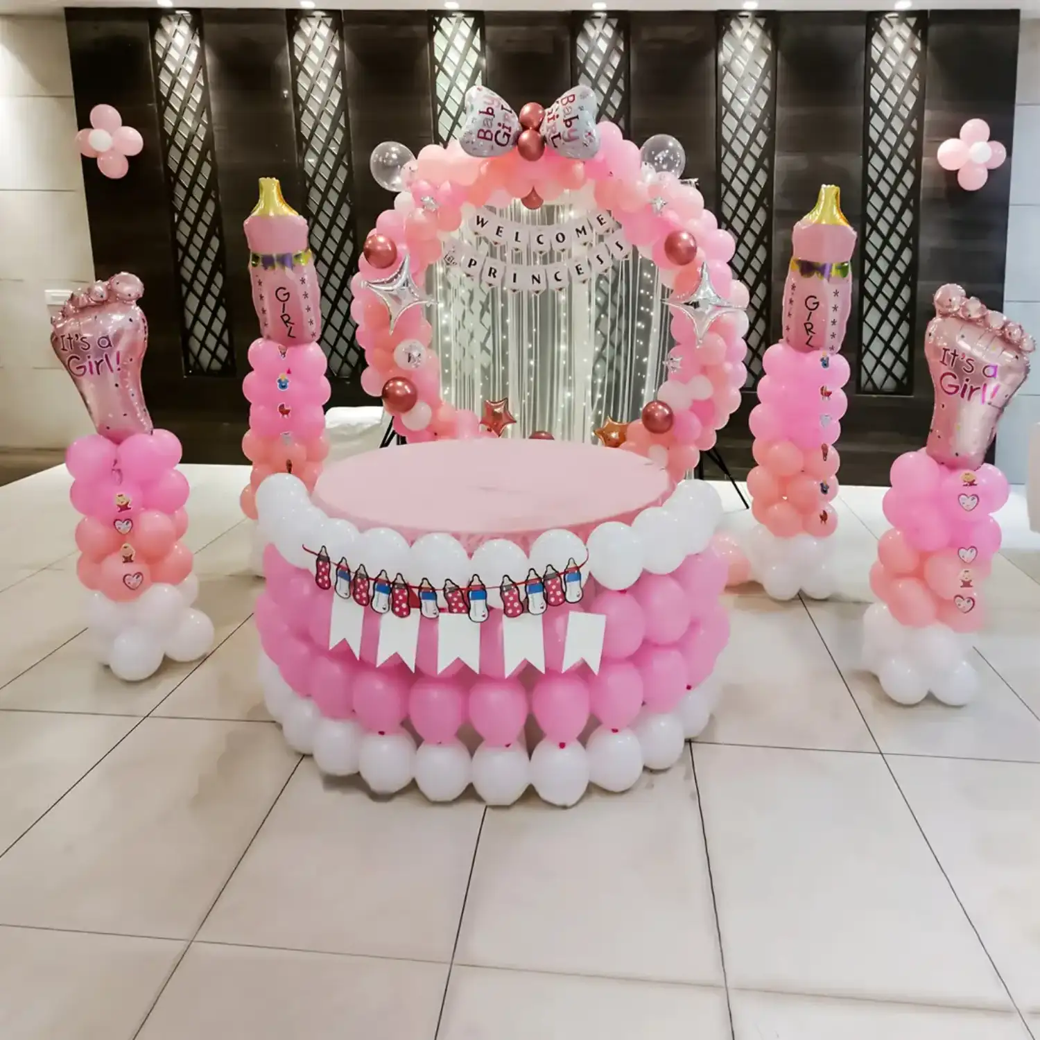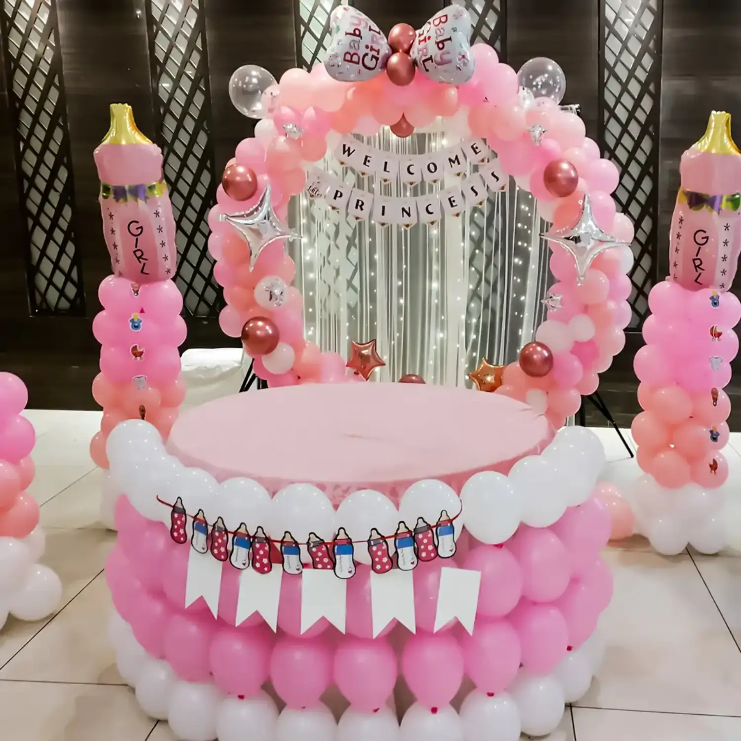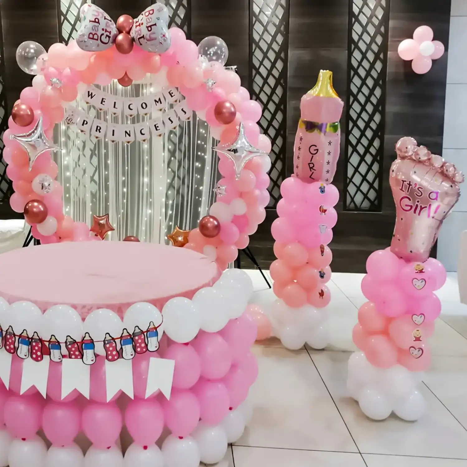 We have come up with a splendid balloon decoration set up to welcome your baby girl.