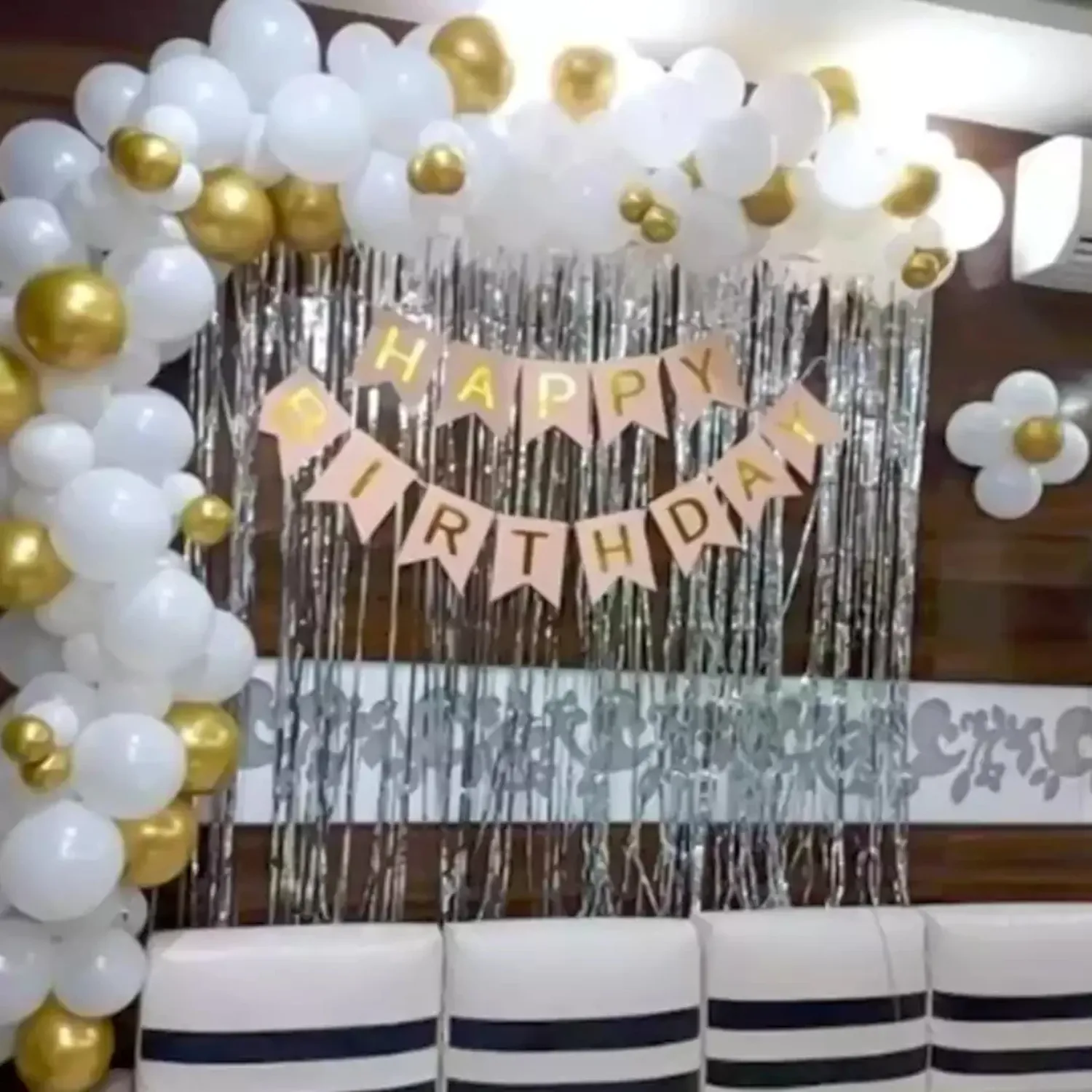 A beautiful balloon decoration idea for birthday celebrations at home.