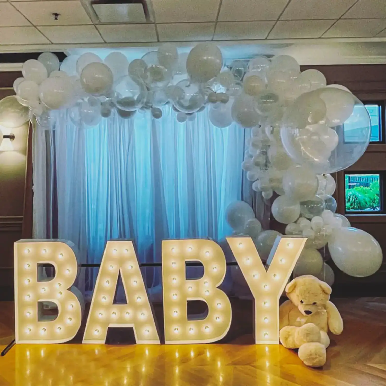 An ideal decoration with balloons to welcome a little one. Organize a baby shower function with our help.