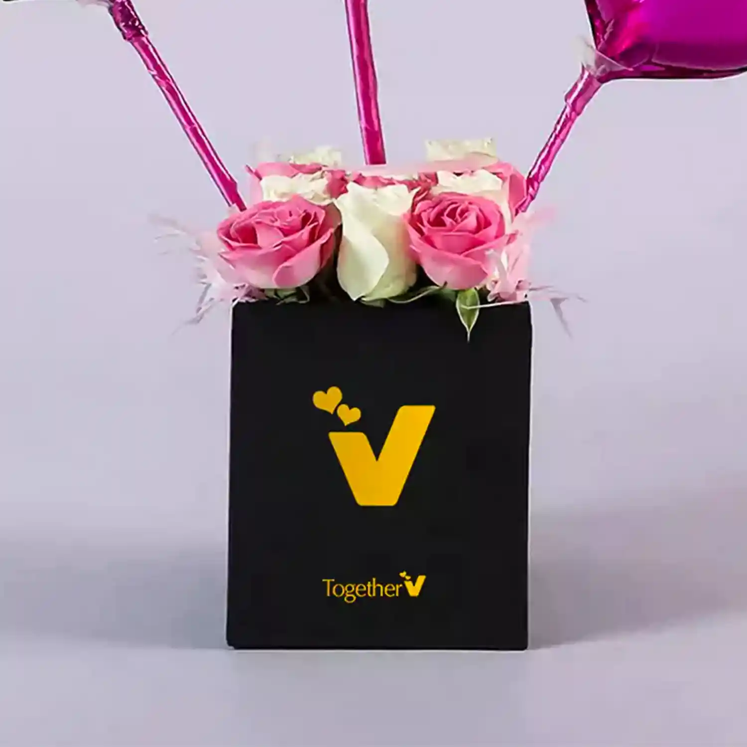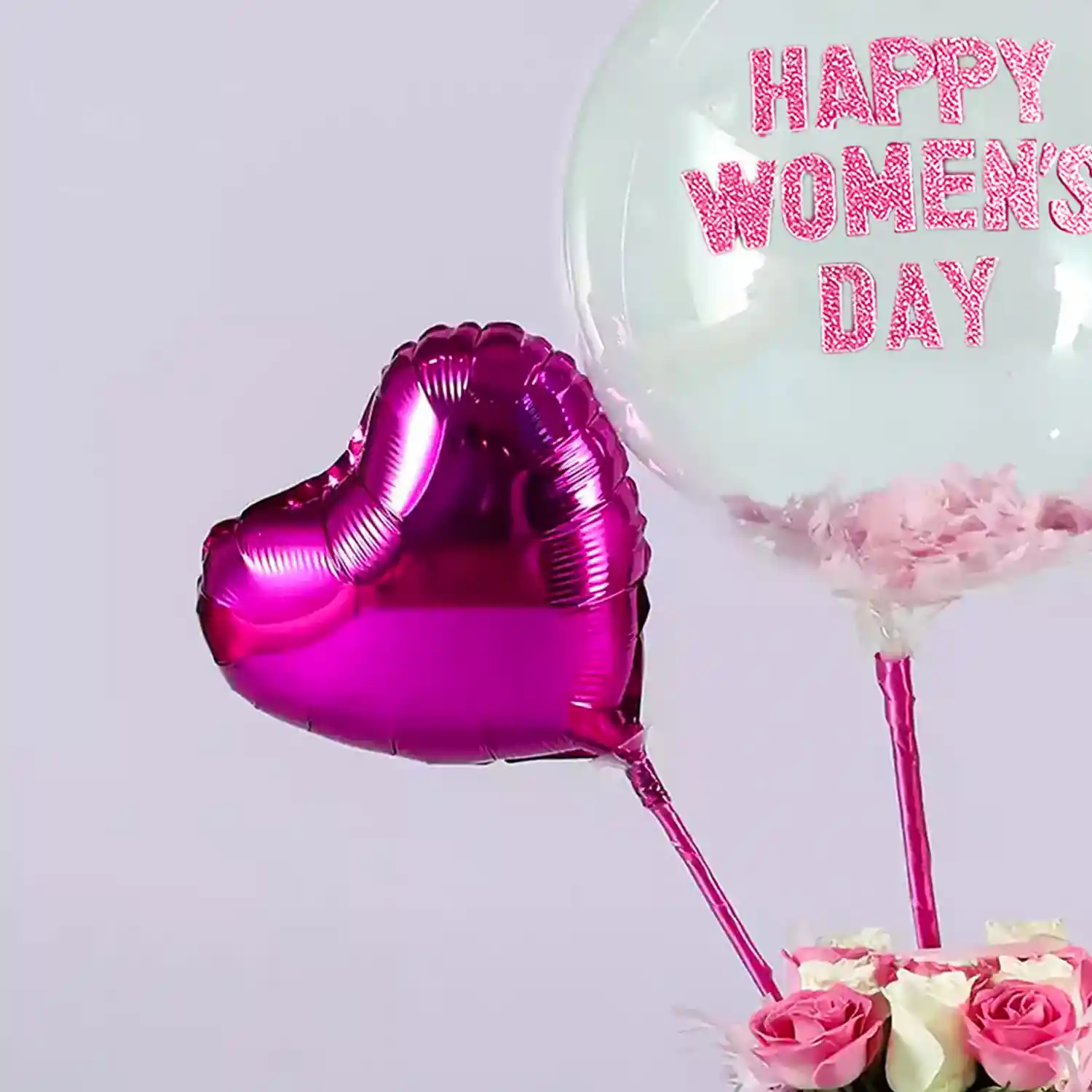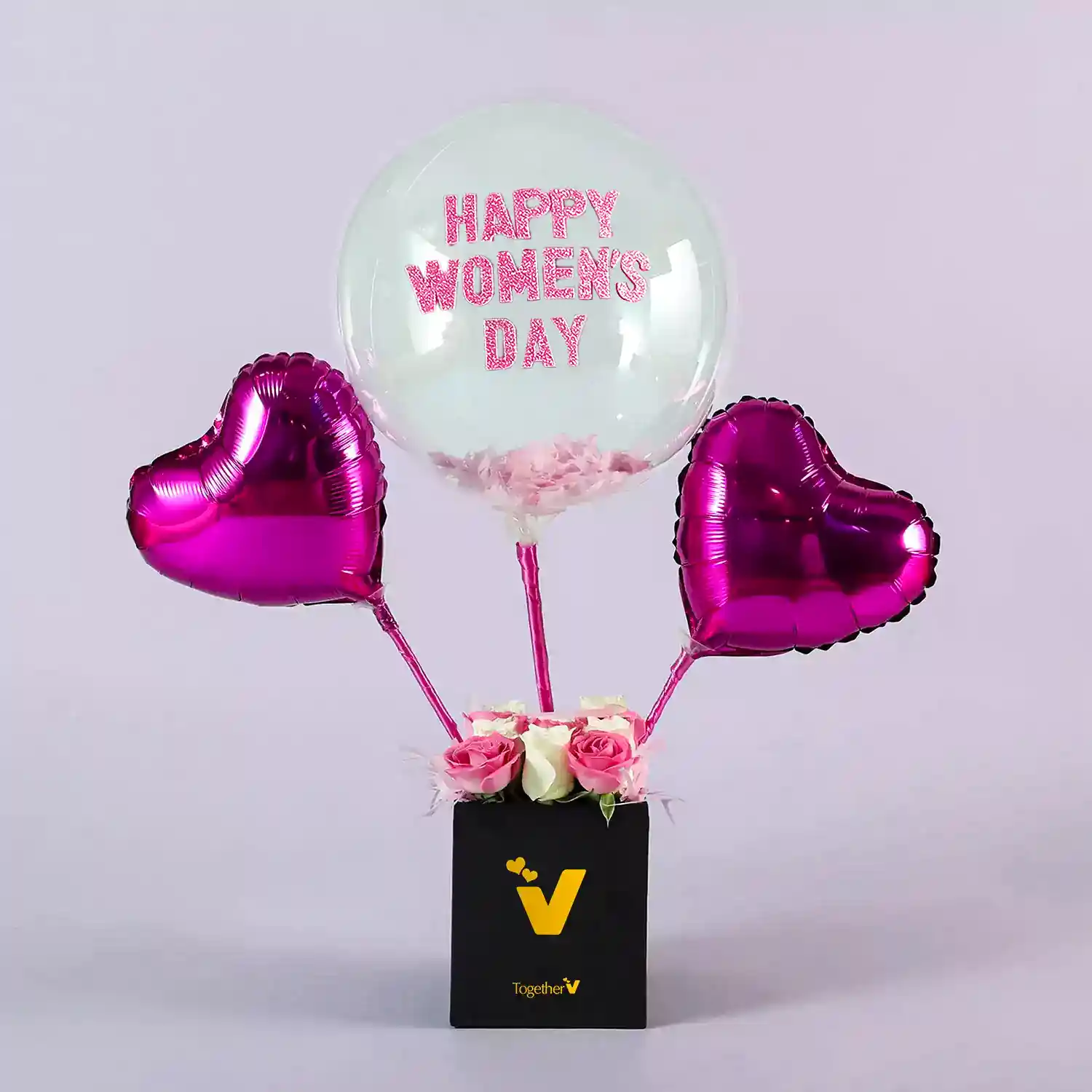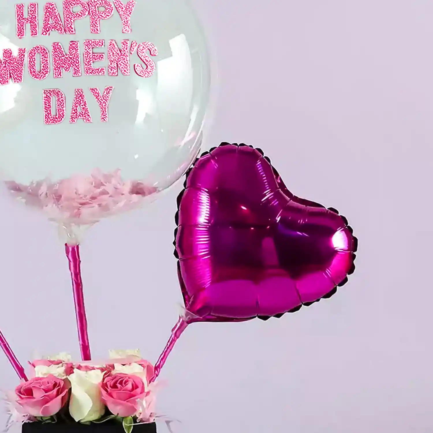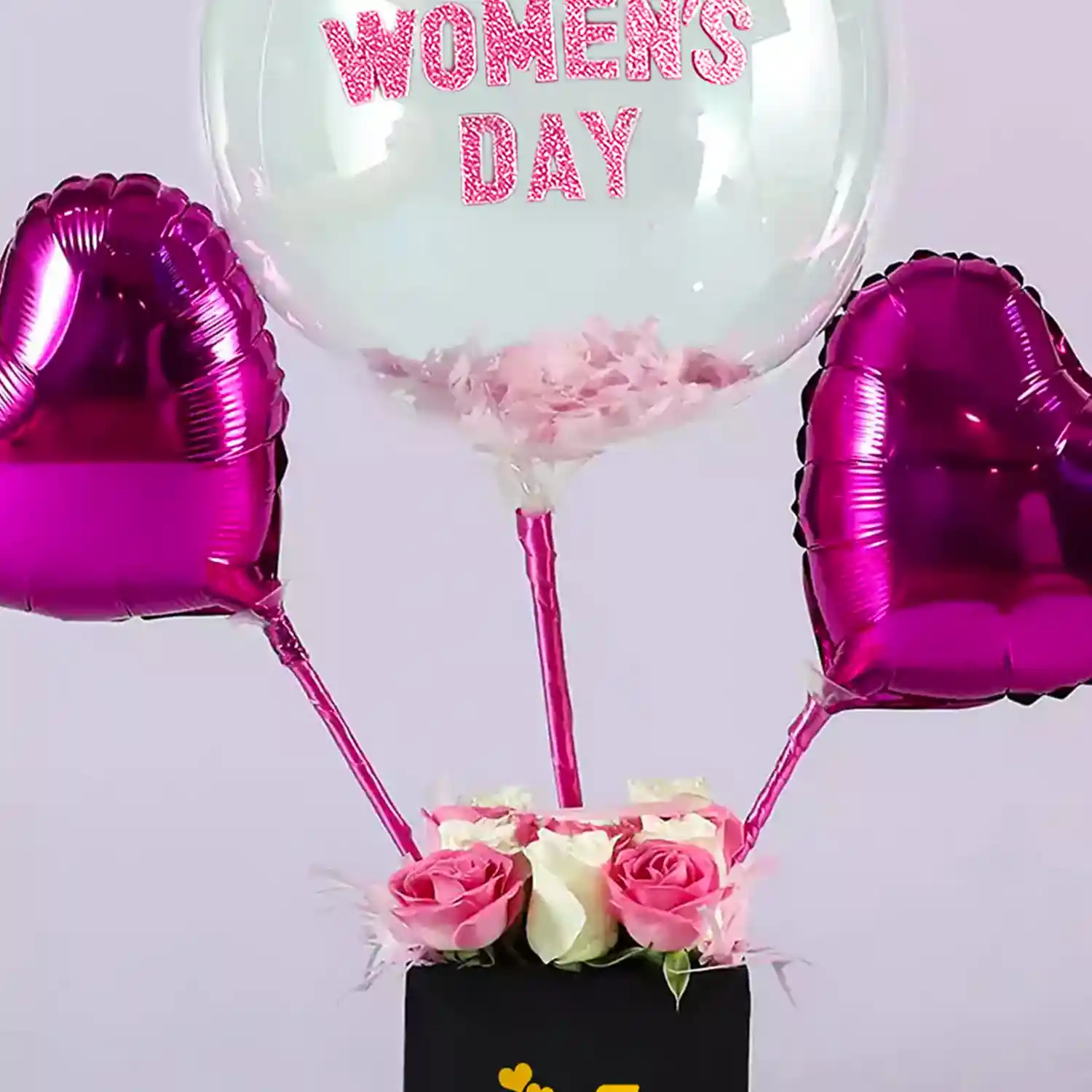 A Women's Day special floral balloon box with roses.