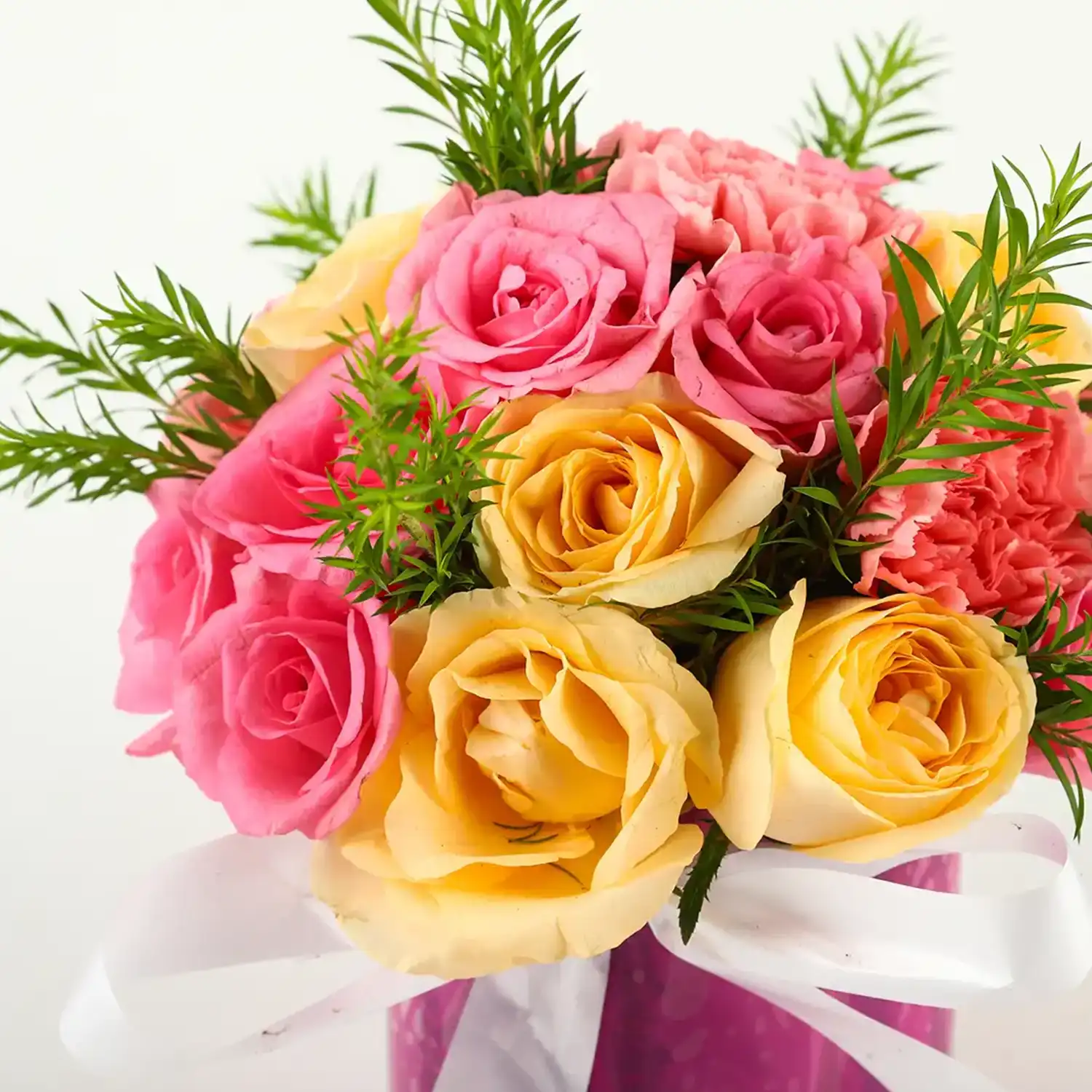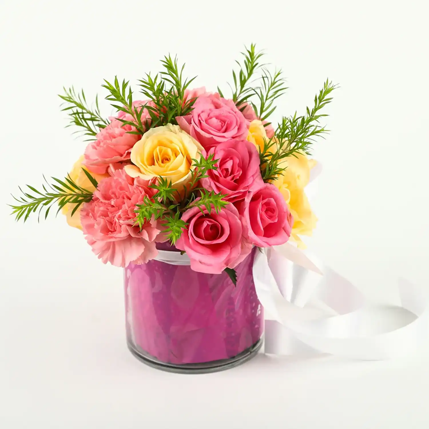 Start their day with these fresh flowers beautifully arranged in a basket.