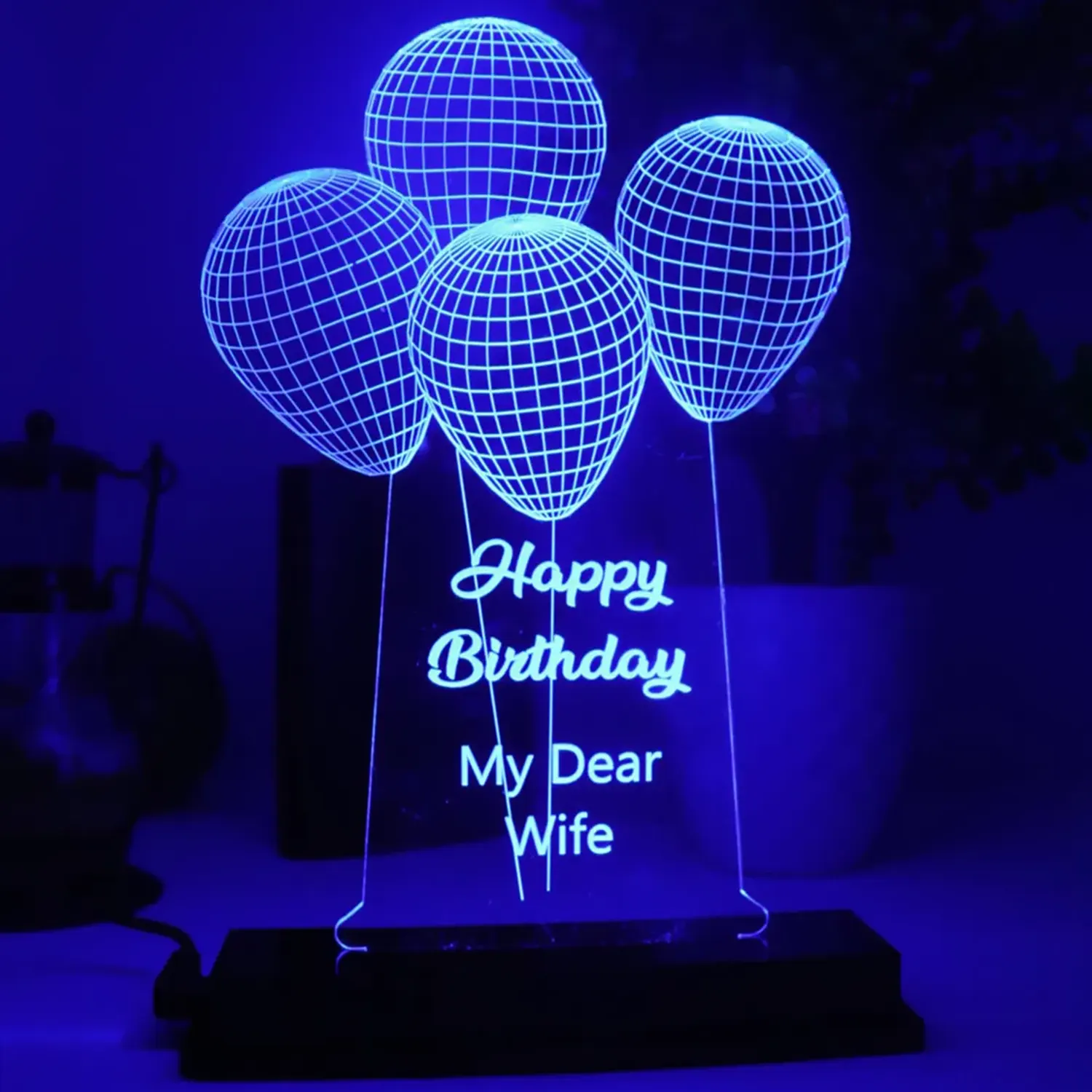 Make your loved ones' celebrations even brighter with a personalised blue balloons lamps.