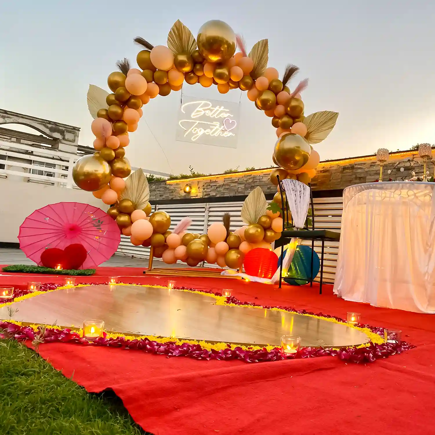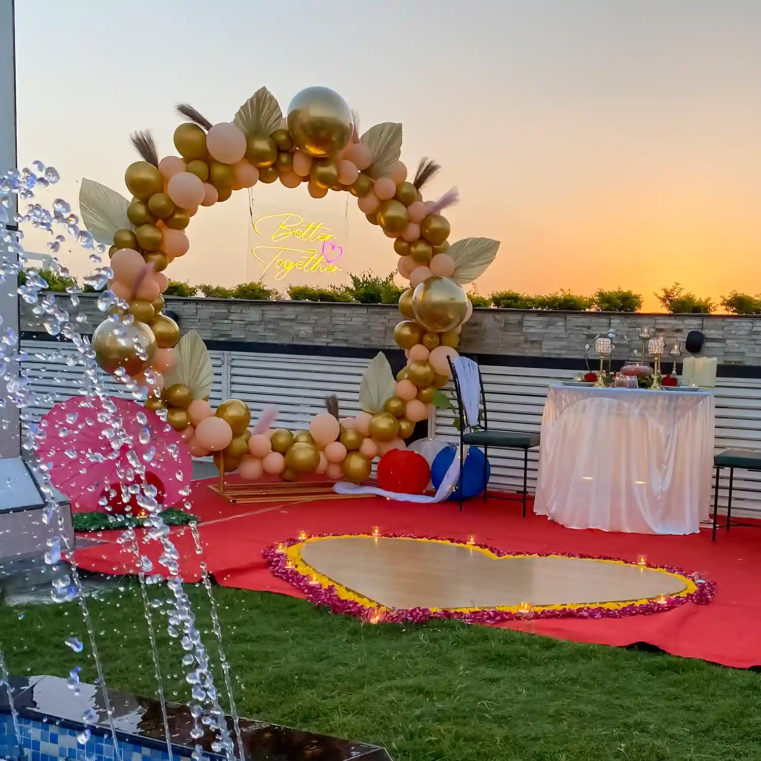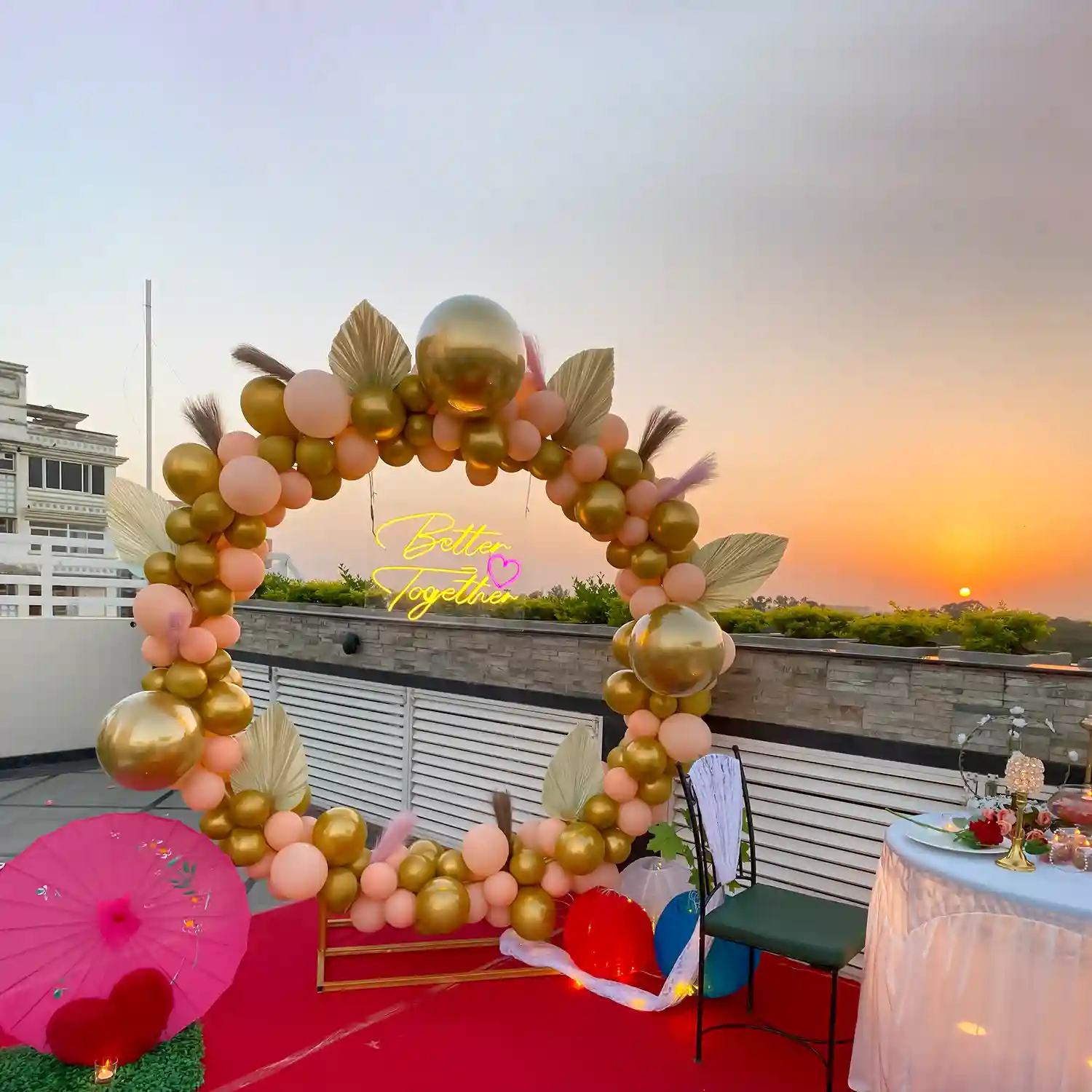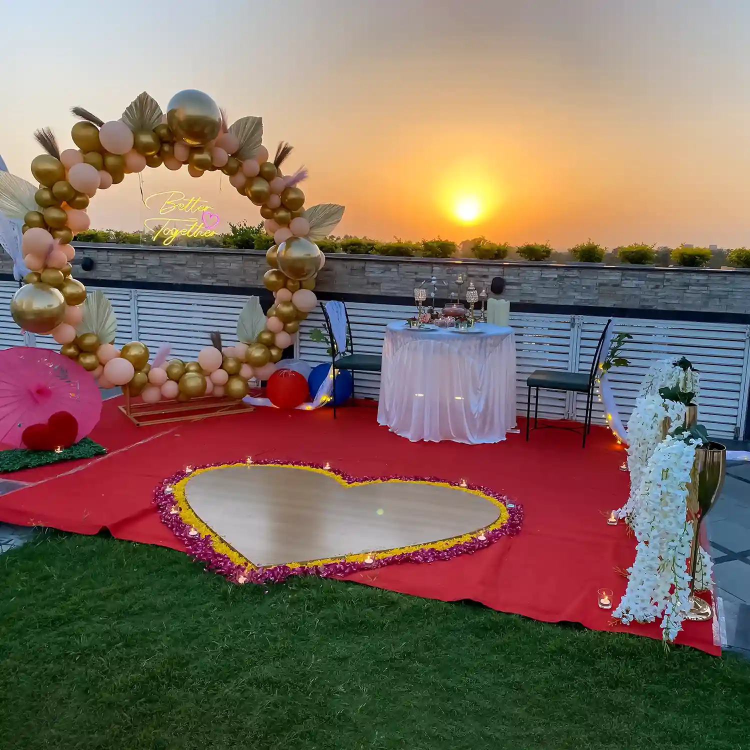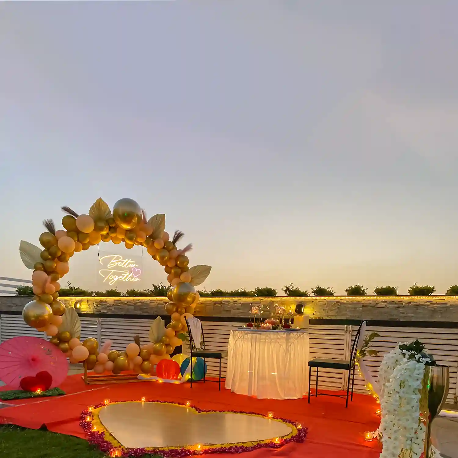Surprise your partner with this romantic candlelight dinner on terrace.