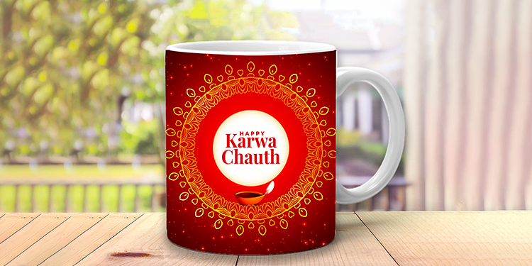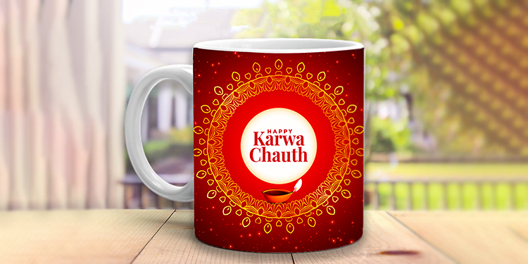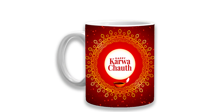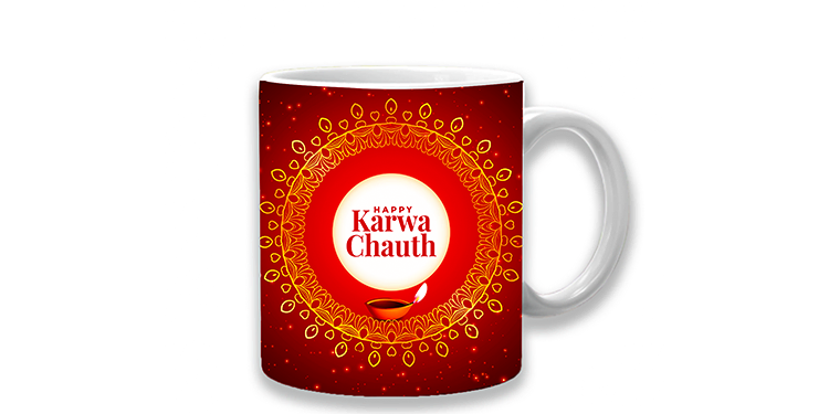 Happy Karwa Chauth Printed Diya Red Color Ceramic Mug