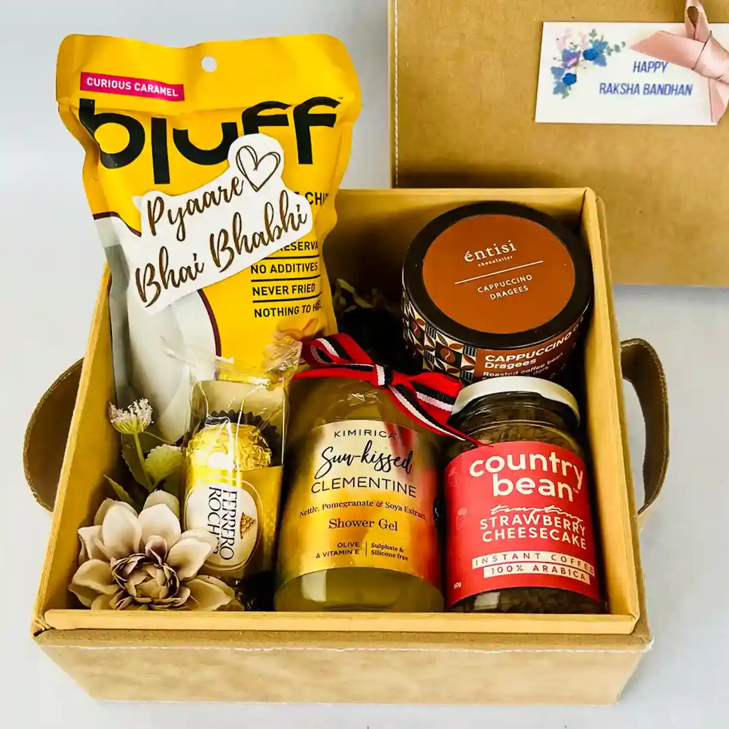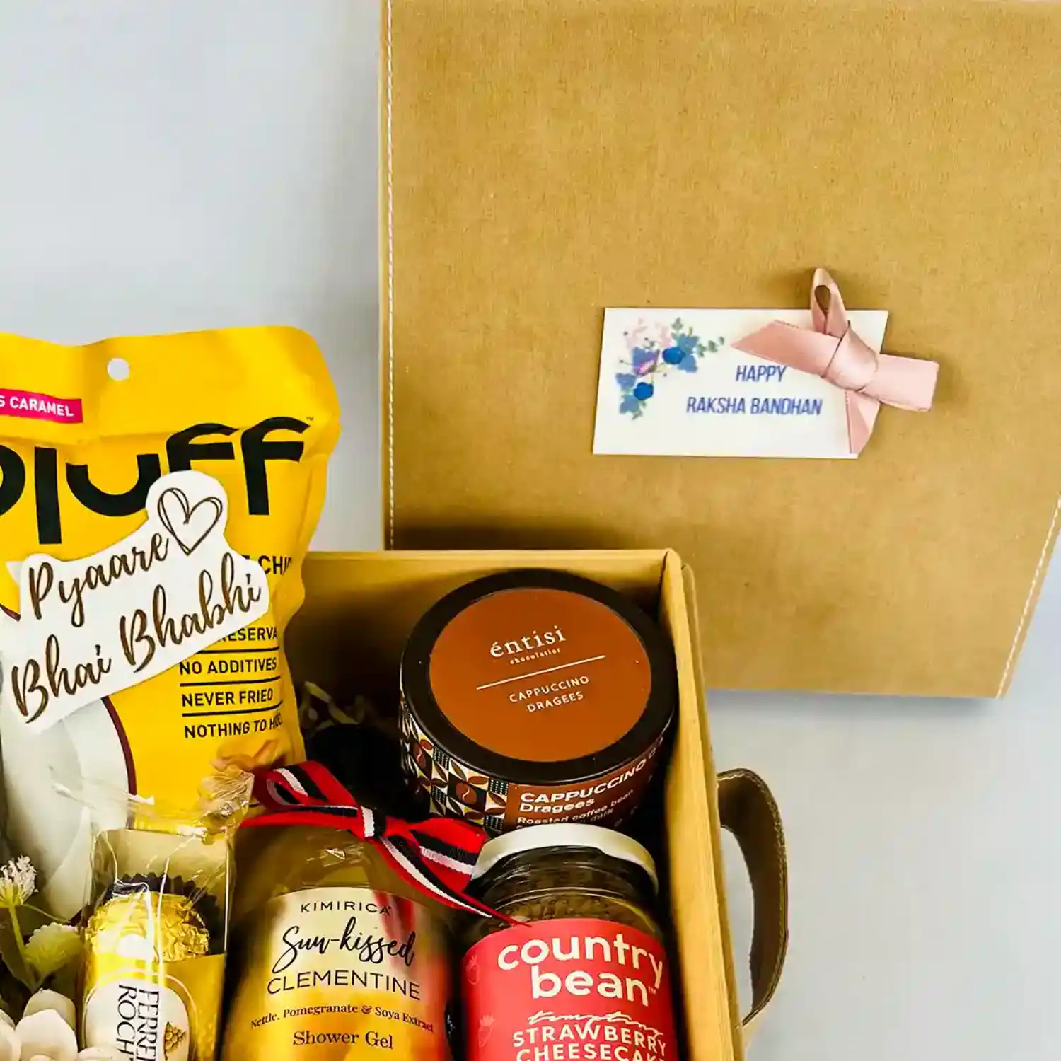 A Rakhi gift hamper curated for your loving bhaiya and bhabhi.