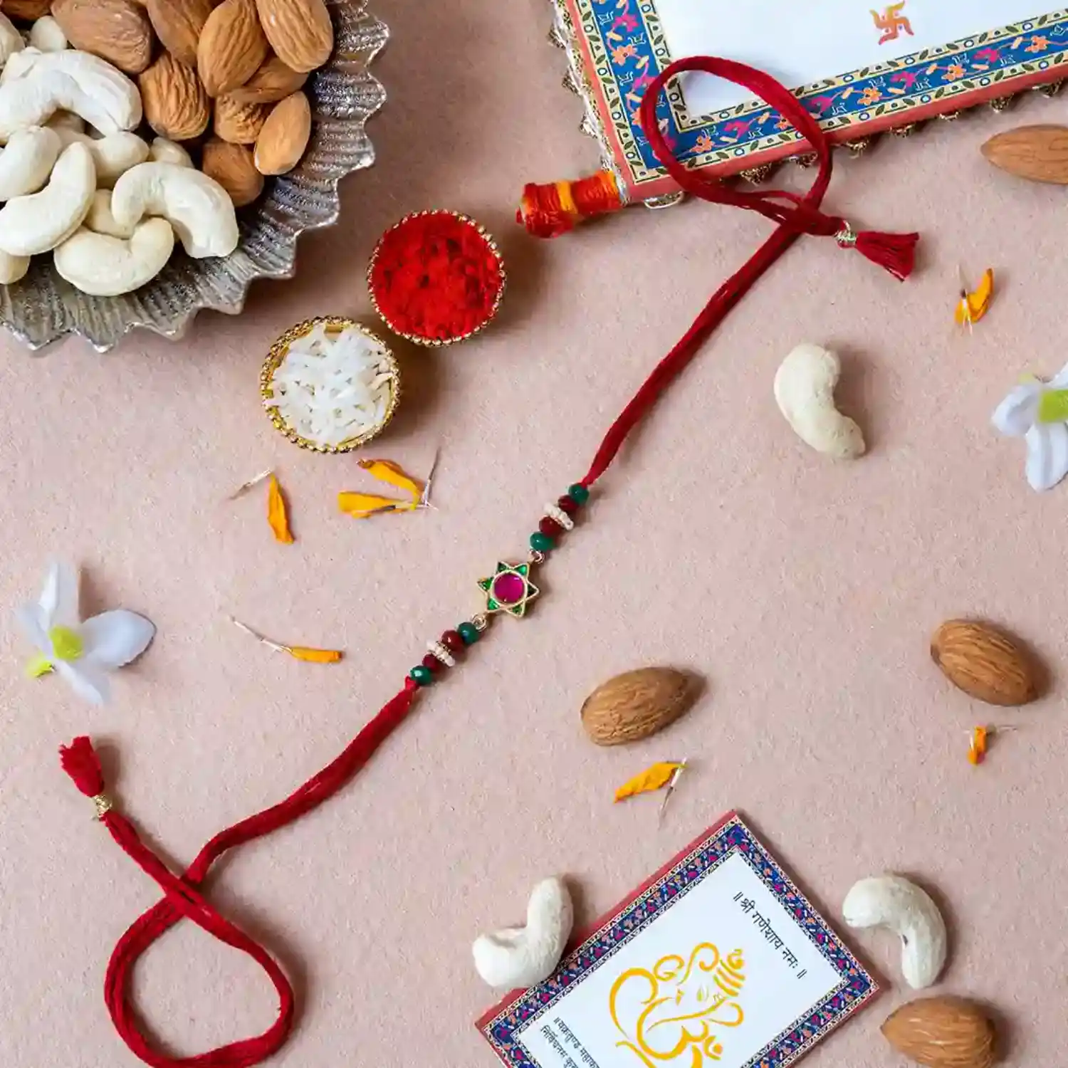 The Shreenath Ji pooja thali is specially designed for the Rakhi celebration.
