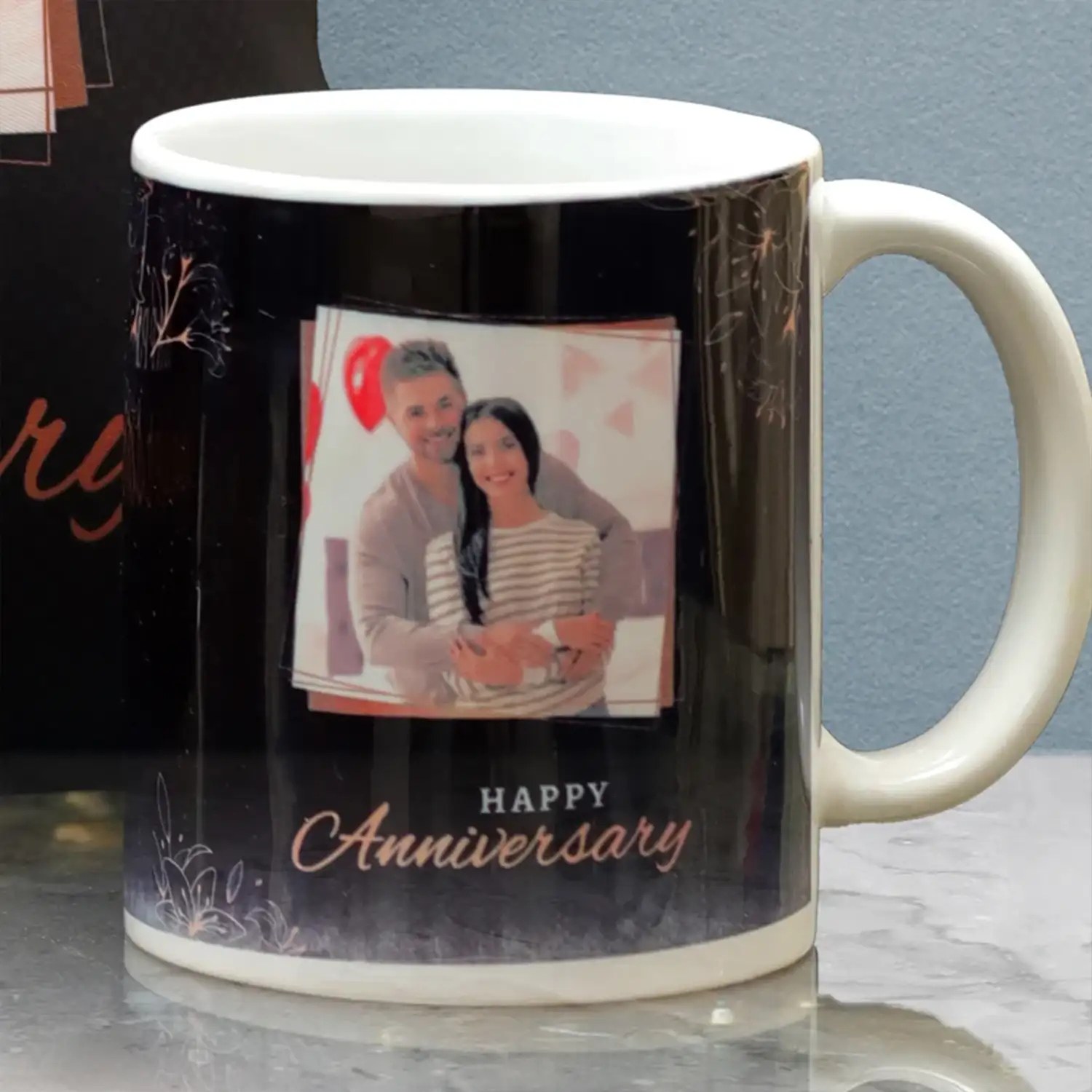 On this anniversary, gift your partner this combo of a personalized cushion and a mug that has a printed photo of you 2.
