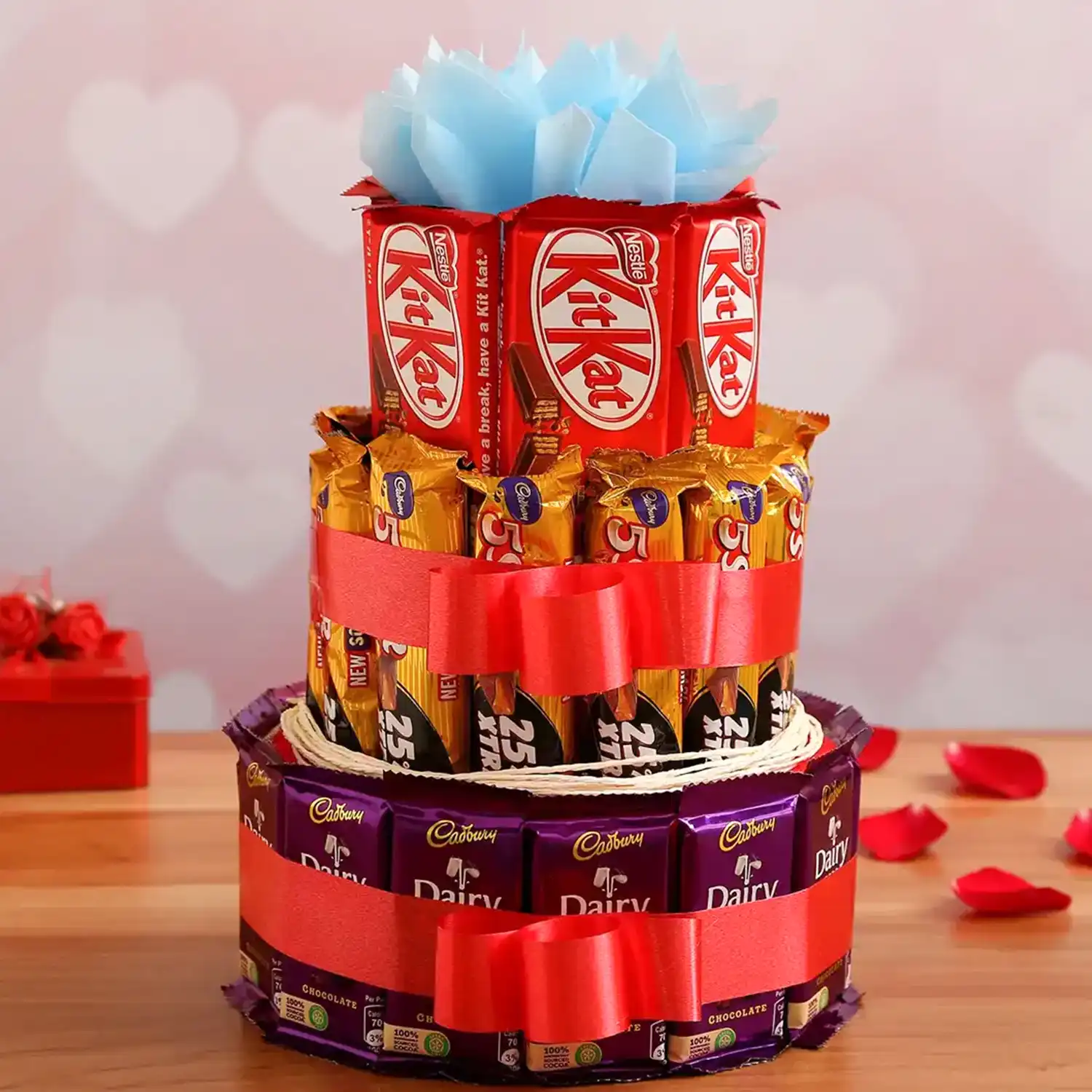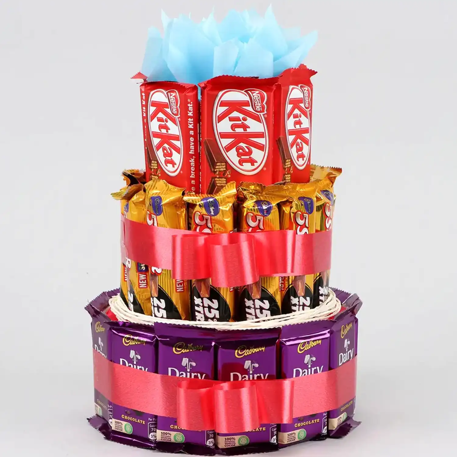 A 3 tier arrangement full of chocolate looks spectacular.