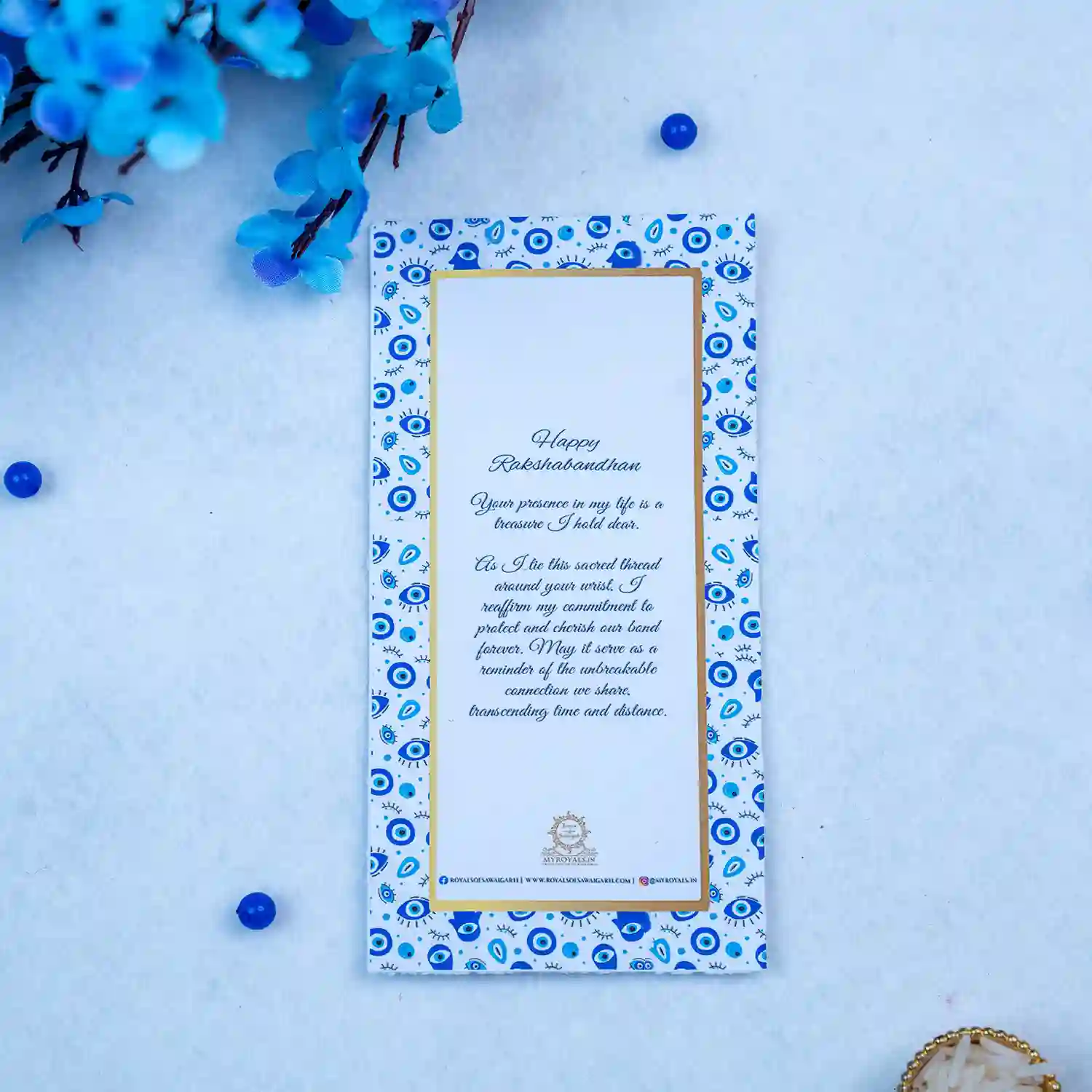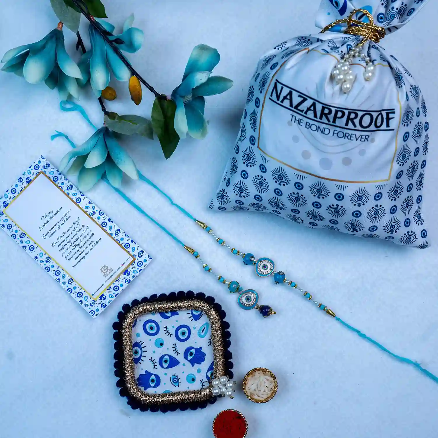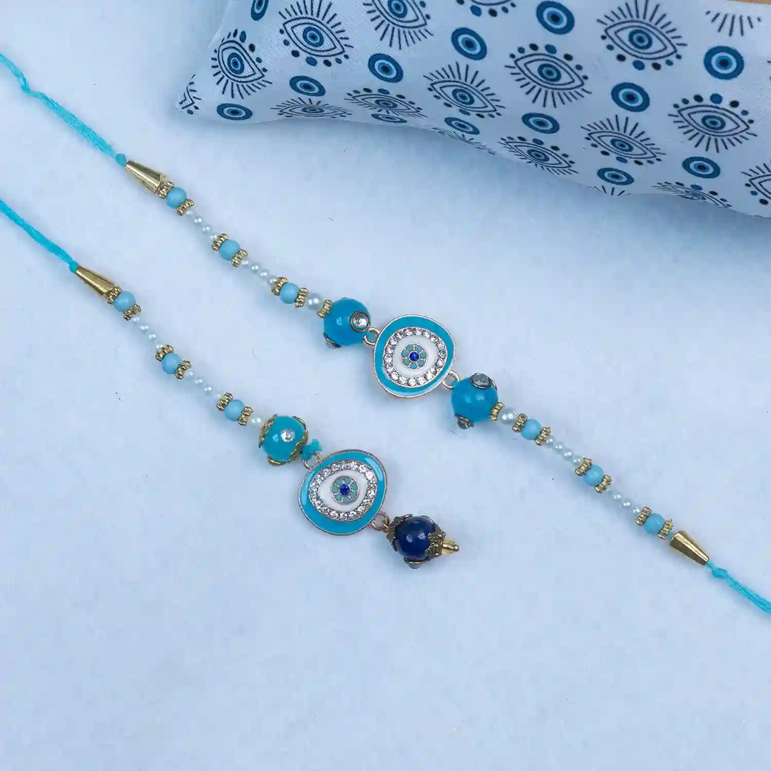 Celebrate Rakhi with this Bespoke Evil Eye Rakhi Set for Bhaiiya and Bhabhi.